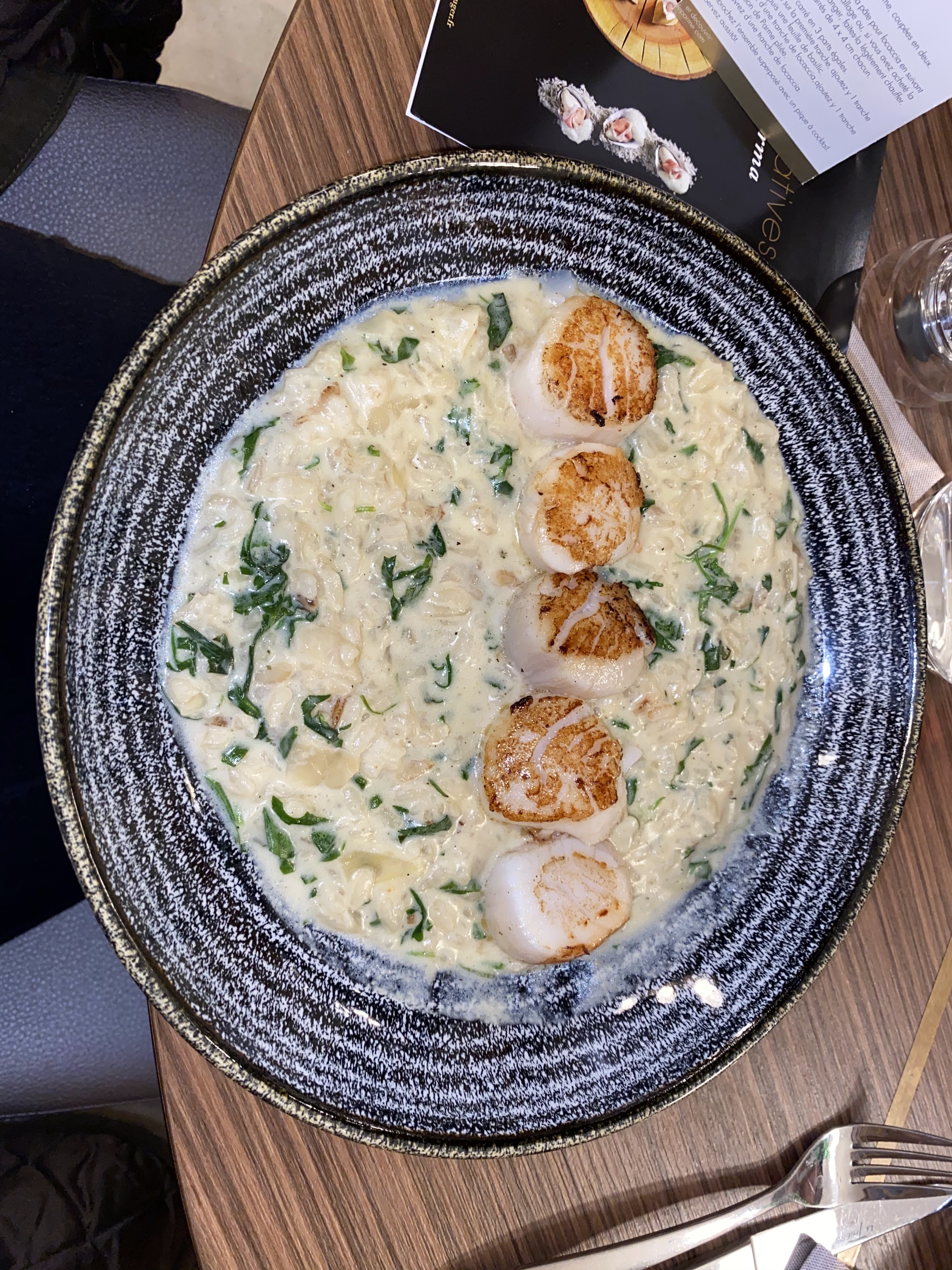 Venus sans réservation, nous avons été agréablement accueillis, tout le personnel est très agréable, mention particulière à Mélanie qui est en formation et qui a été de très bons conseils (surtout pour le craquelin 😉), les plats sont délicieux, risotto crémeux aux st Jacques excellent. Nous reviendrons avce grand plaisir. A bientôt, ne changez rien