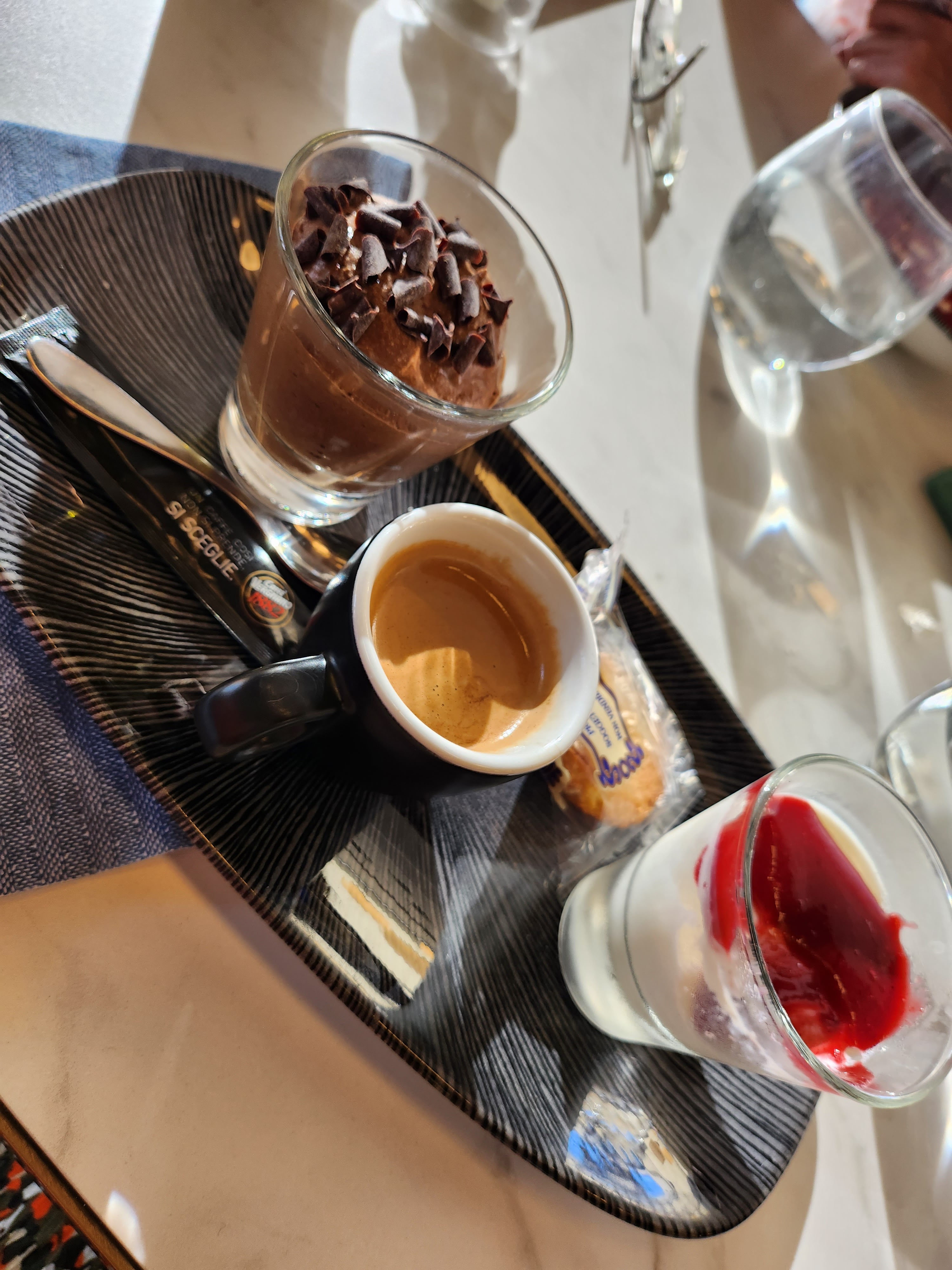 Première visite et très belle surprise, très bien reçu et conseillé par Céline.A, de bonnes saveurs variés avec truffes ou foie gras poêlé, et des desserts généreux avec la surprise du tiramisu proposé en quantité de notre choix 😋, pour finir un excellent limoncello 🥂.
