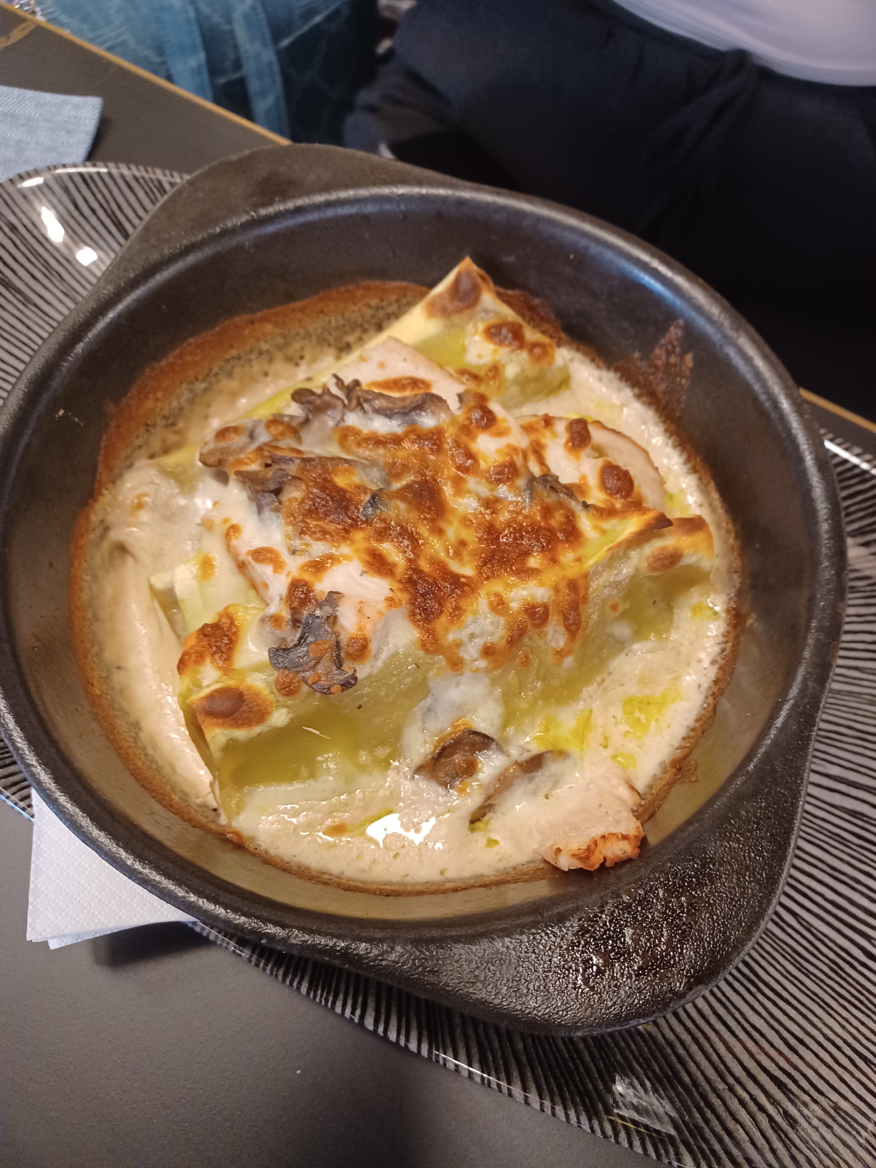 Le serveur était sympa mais un peu mou L’entrée était bonne mais je n’ai pas ressenti la truffe le plat était très bon mais la sauce était froide se qui rendait tout le plat froid dommage car le goût était excellent