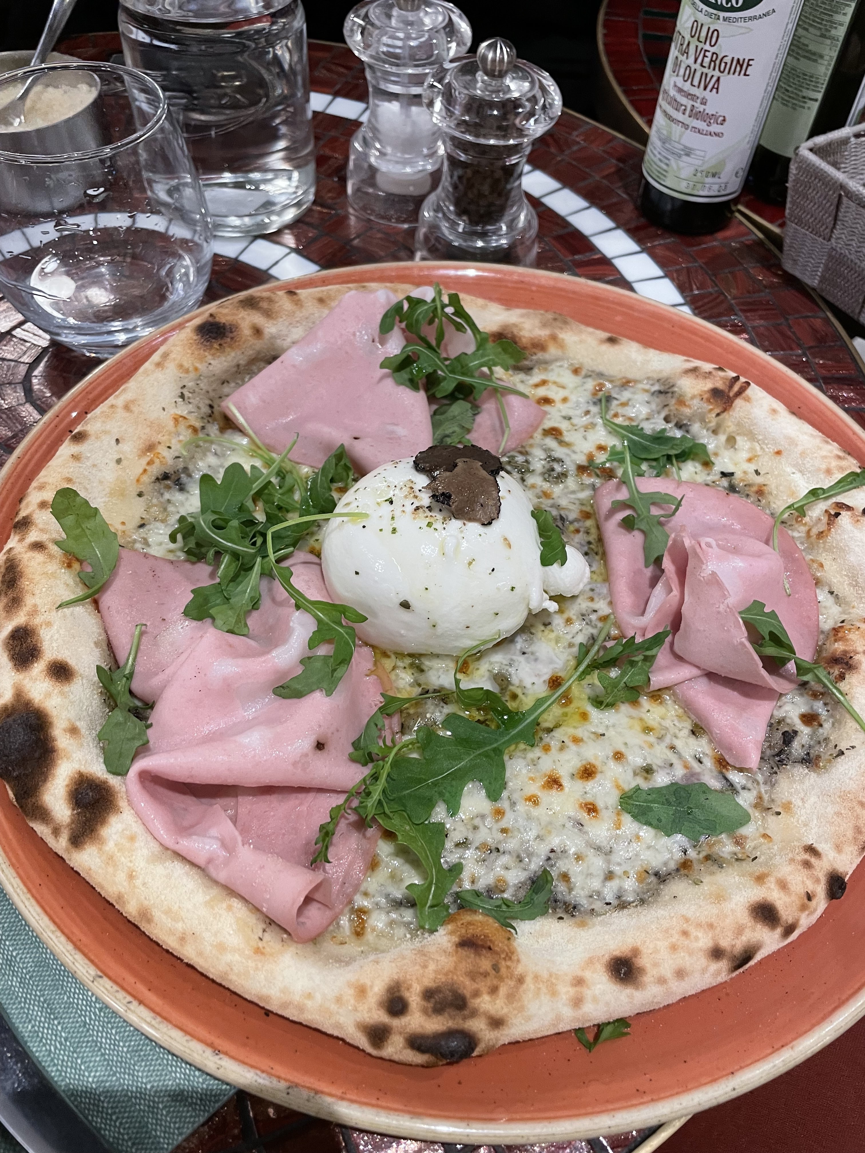 Mon expérience dans ce restaurant a été très bonne. Notre commande a été prise rapidement, le plat est vite arrivé et la nourriture était très bonne (j’ai pris la pizza à la truffe). Le serveur était très sympas et à l’écoute lorsque nous avions des besoins. Les prix étaient également peu élevé par rapport à ce qui peut se trouver dans la région.