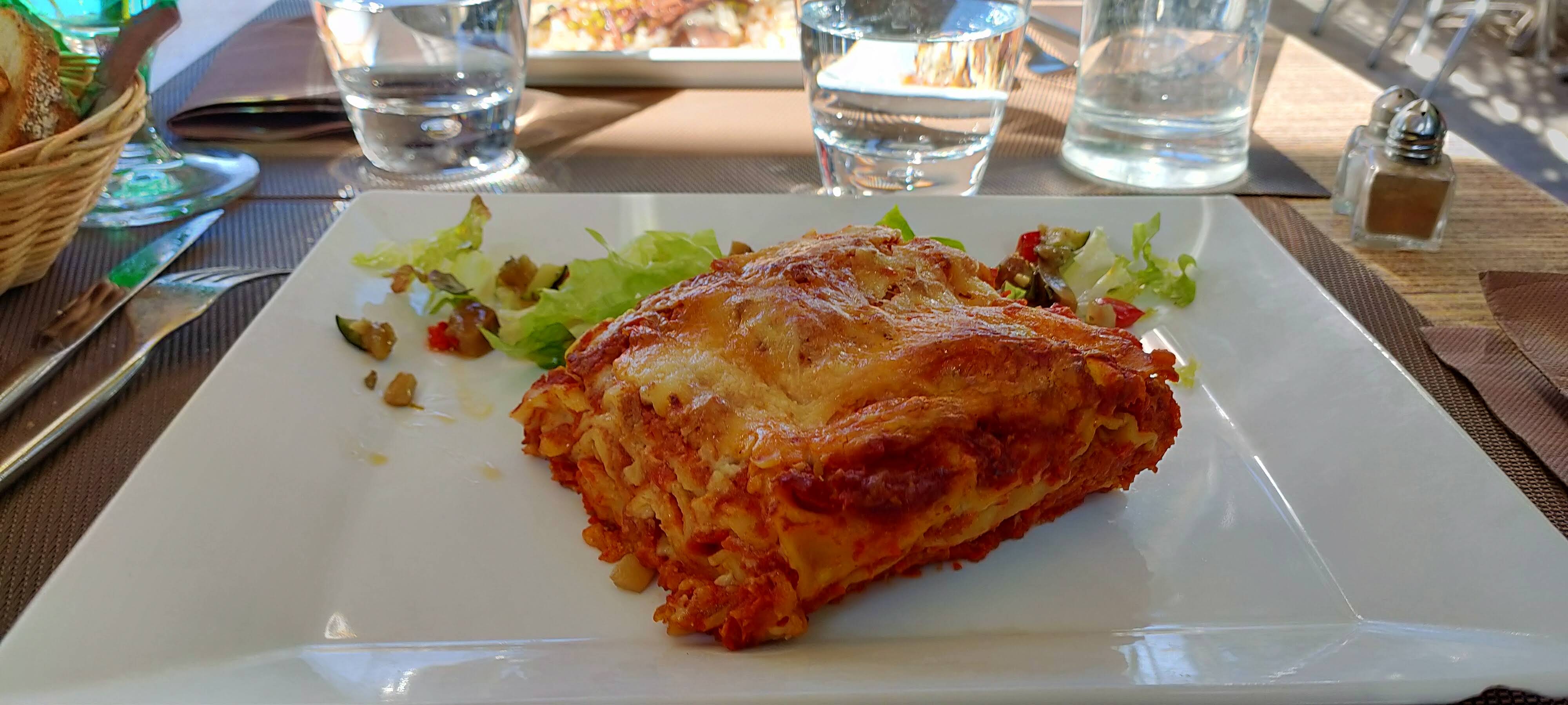 Déjeuner vendredi 11.08 avec des amis castriotes. Ce restaurant est toujours un pur régal. Nous revenions sur nos anciennes terres. La part de lasagnes du menu enfant était vraiment copieuse.