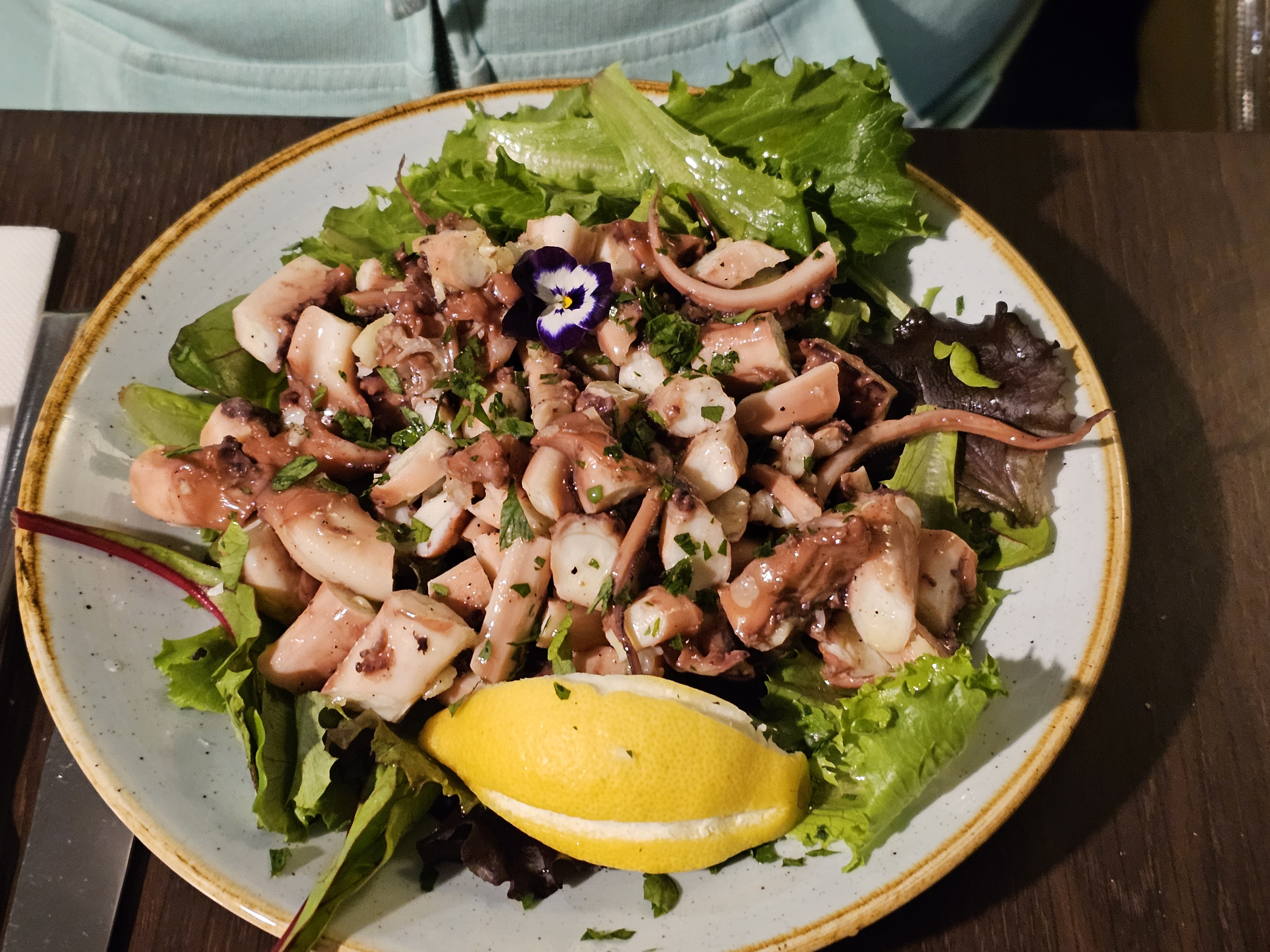 Un peu déçus par le manque d'accompagnement dans la salade de poulpe et trop d'huile d'olive a mon gout