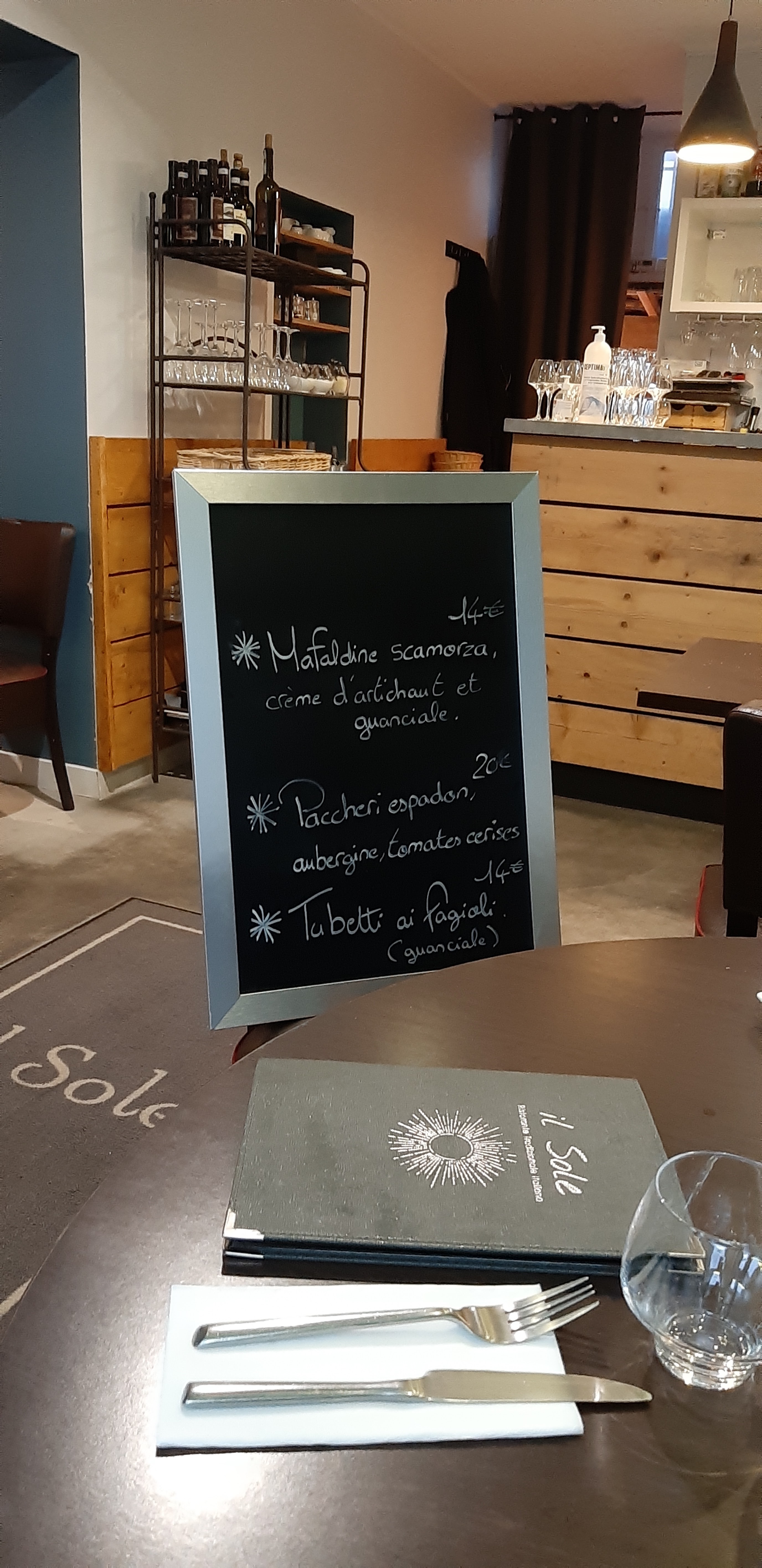 Nous avons mangé ce jour chez Il Sole. Rien à dire ! c'est très bon. Rapport qualité/ prix parfait. Les pâtes sont cuites parfaitement, ni trop.. ni trop peu. Je recommande ce restaurant, et j'y retourne dés que possible.