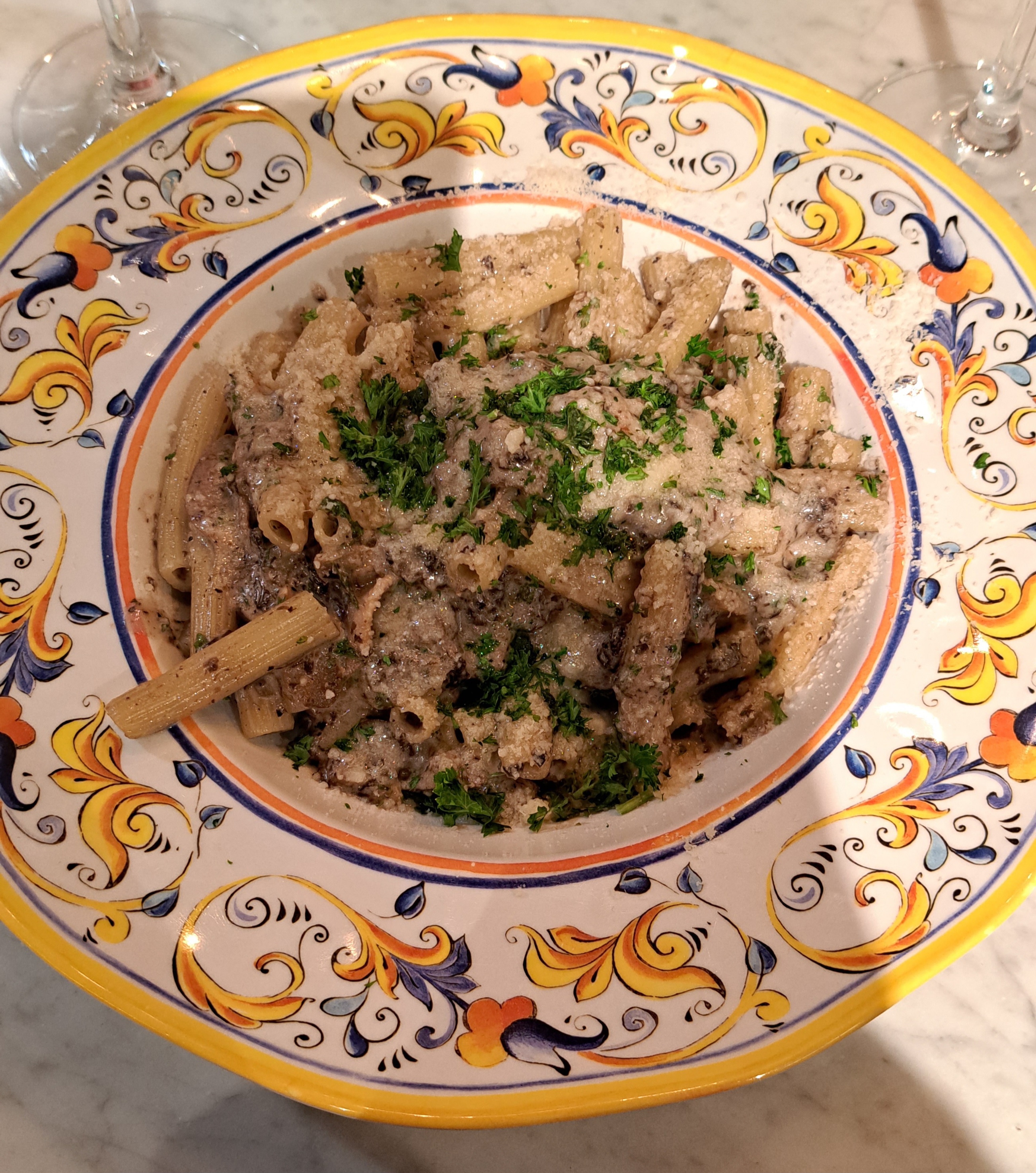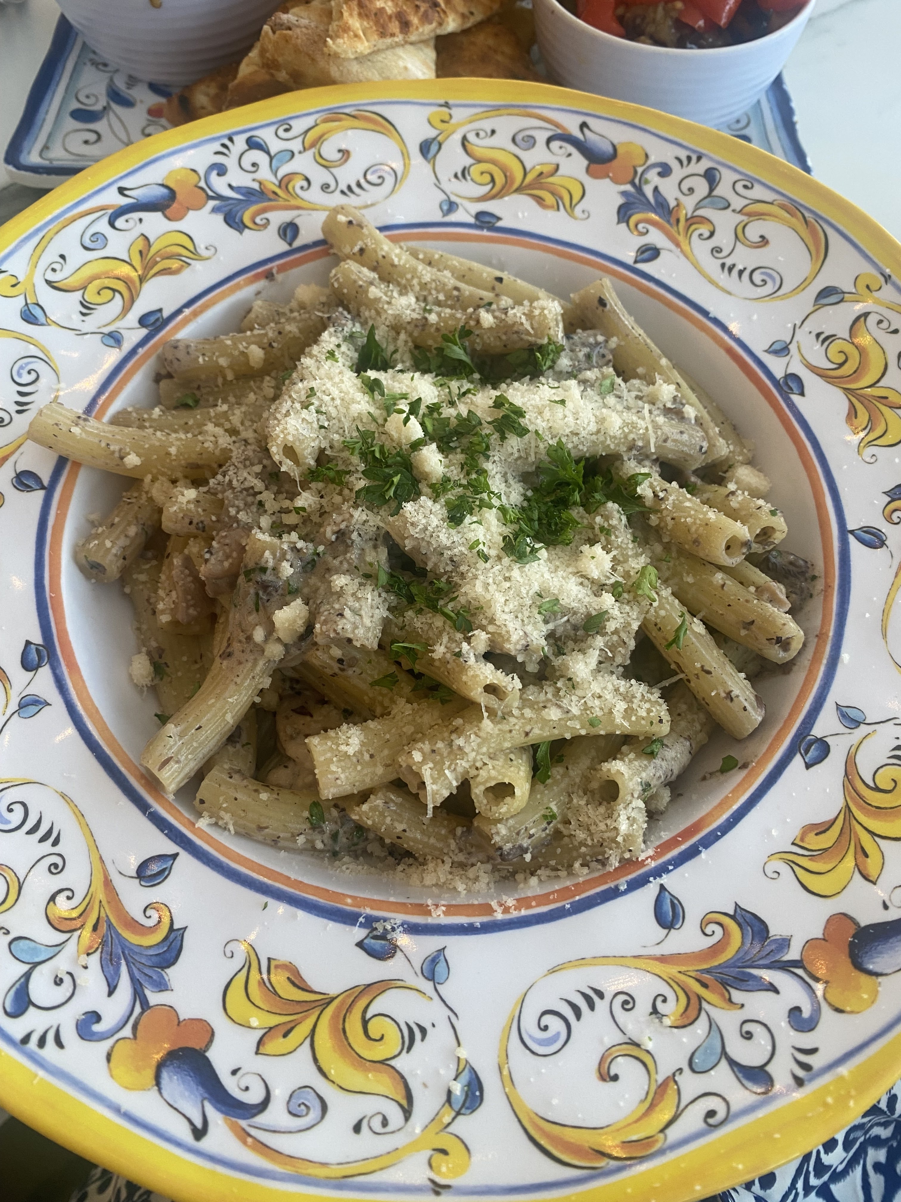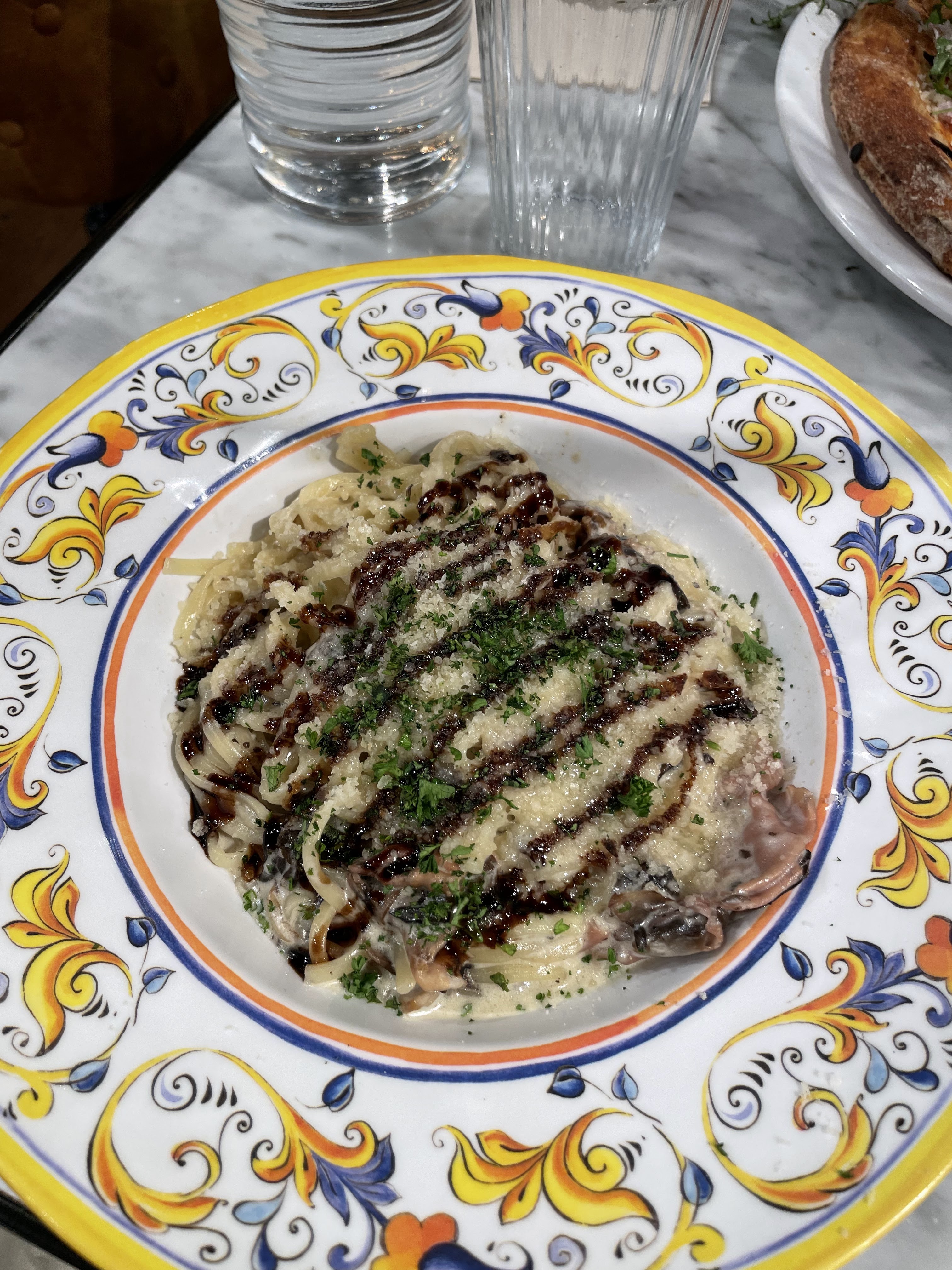 Service rapide et chaleureux Tapenade d’olives délicieuses et des pâtes à la truffe bien parfumées Merci pour ce moment