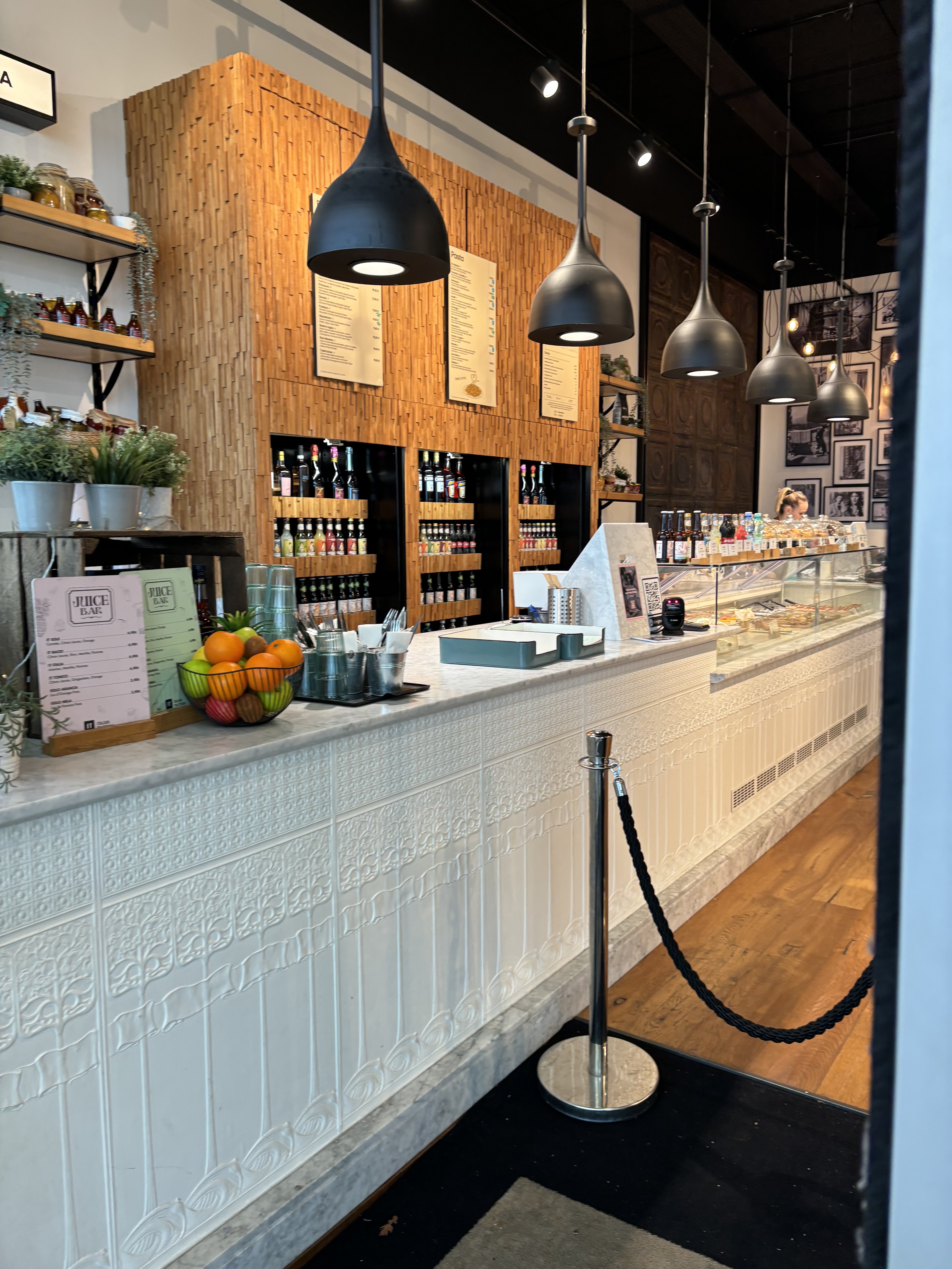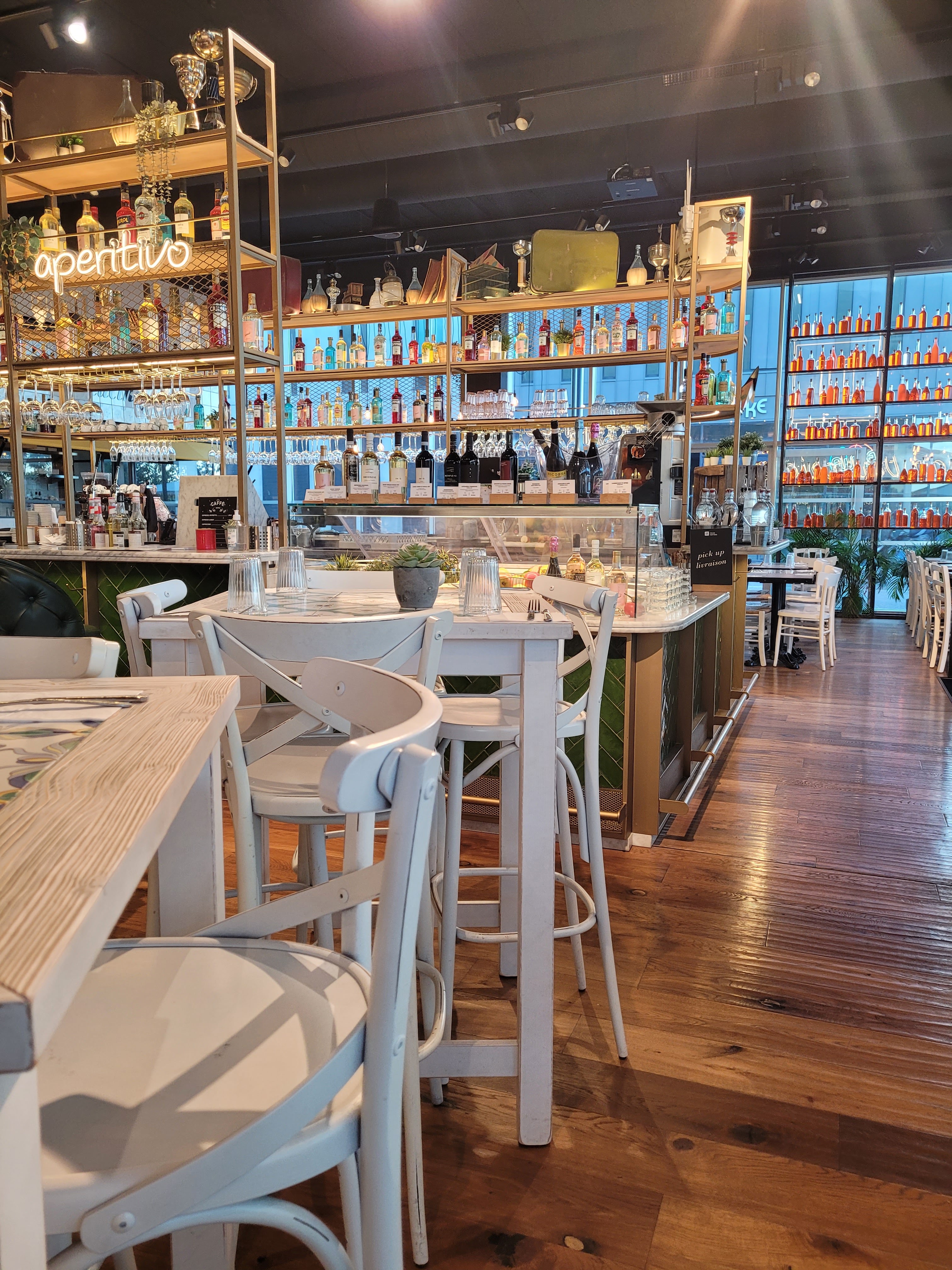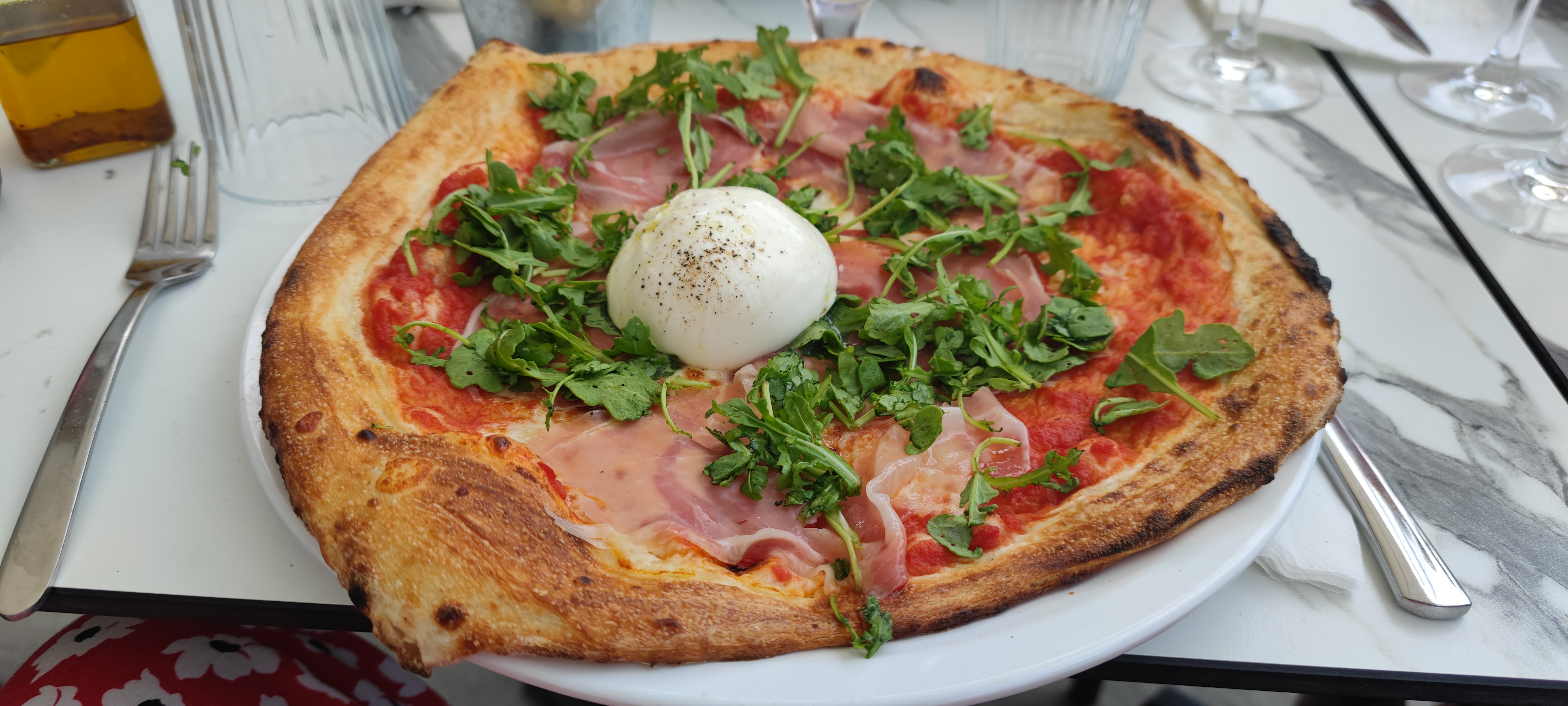 Déception pour ce lieu si joli et plein de promesses.... Un super bar à spritz et qui vraiment sont originaux et bons, par contre pour le coup le mojito est à éviter. La planche de charcuterie pour le prix n'est pas vraiment copieuse, les burratas sont très petites pour le prix également. C'est dommage parce que le pain maison est vraiment excellent et les assiettes à partager sont le moyen de commencer de bon pied un repas avec l'apéritif. La pâte à pizza est excellente mais encore une fois les pizzas manquent de générosité dans la garniture et de couleur. Les pâtes commandés par contre étaient très bonnes mais sont arrivées sans les suppléments demandés....bon ....cela peut arriver....mais nous recommandons deux bouteilles de vin pour accompagner les plats qui n'arriveront qu'une fois nos plats finis (bien que nous ayons attendu avant d'attaquer les plats dans l'espoir d'avoir le vin pour manger). Nous avons dû refuser les bouteilles. Le personnel est très gentil, très avenant mais on les sent complètement débordés par le restaurant et la terrasse. Se serait peut être mieux de prendre un peu moins de monde si le personnel sur place c'est pas suffisant (pas évident de recruter en restauration en ce moment) pour avoir le temps de s'occuper comme il faut des clients déjà assis.... Nous sommes partis sans prendre de dessert voyant le monde devant la vitrine, ils avaient pourtant l'air bons, nous avions fait nos repérages au début du repas. Bilan de la soirée, 2 bouteilles minimum en moins sur l'addition, pas desserts de prit....Nous ne reviendrons pas et ne recommanderons malheureusement pas cet établissement....
