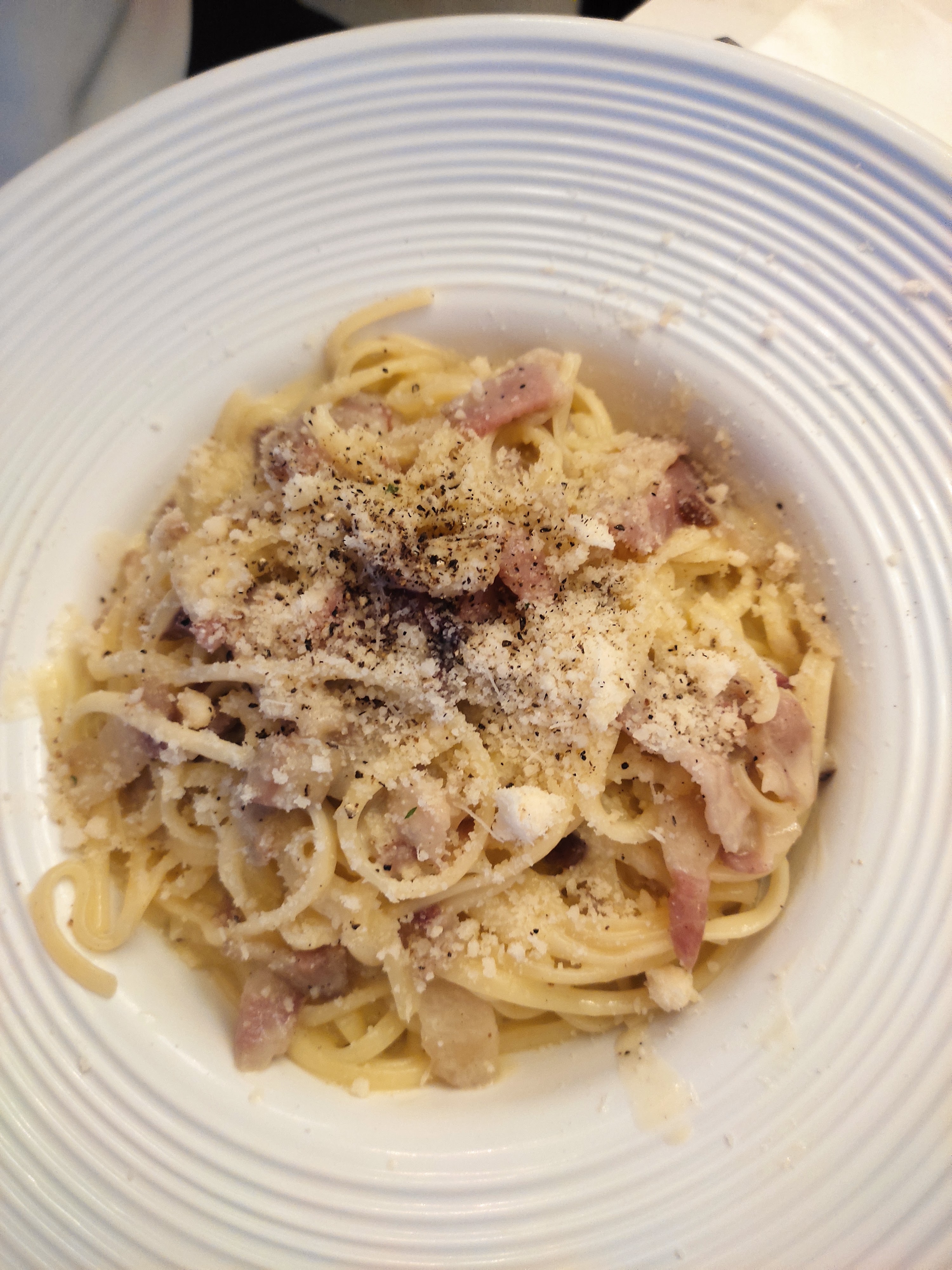Que dire ? Tout était bon, il n'y a pas de fausses notes. Ah si ! Il n'y avait pas la bière que je voulais ^^ L'entrée Stracciatella coeur de burrata avec le pain était parfaite, les pâtes carbonara vraiment très bonnes même si bien poivrées (on aime ou pas) et le dessert Tiramisu caramel délicieux ! Déco vraiment sympa, ambiance calme un lundi soir et service top avec des employés agréables. Si je reviens à Bordeaux, je n'hésiterai pas à le faire découvrir !
