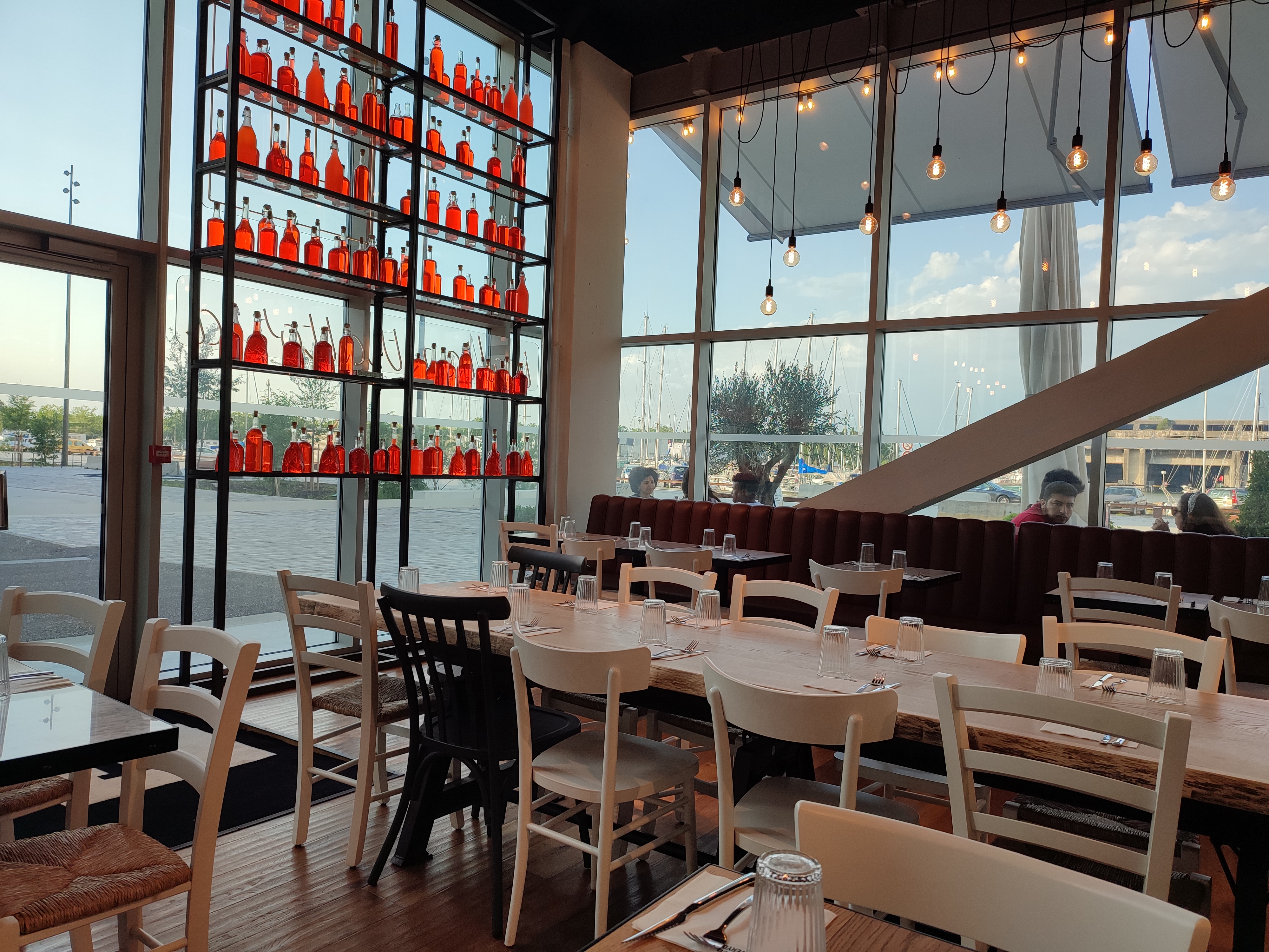 Super restaurant italien avec vue sur le port de Bordeaux. Nous avons mangé de meilleures pizzas ailleurs mais pas de meilleurs tiramisus. Possibilité de choisir ses desserts directement la vitrine : ils étaient excellents ! Le staff est très sympa :)