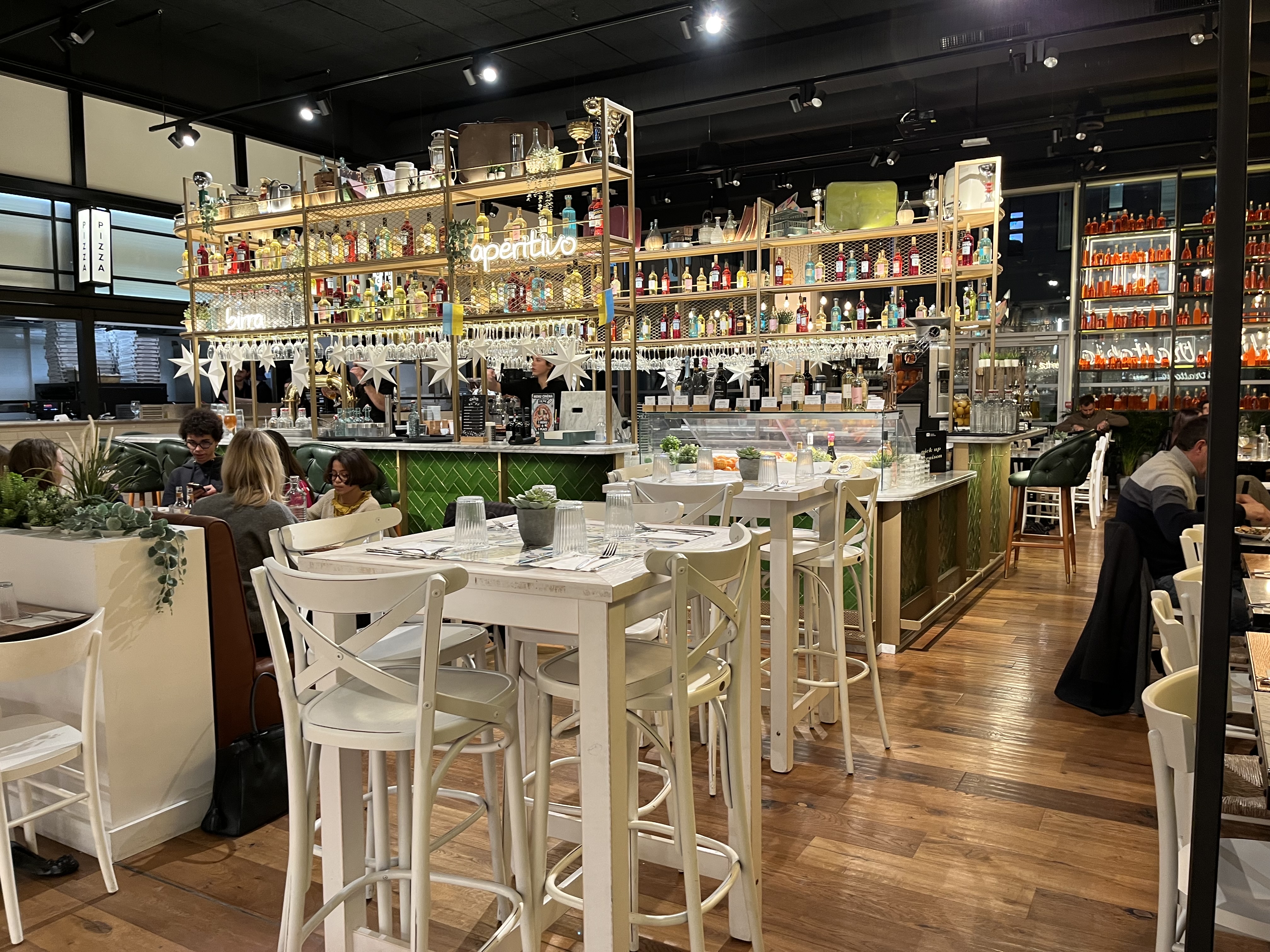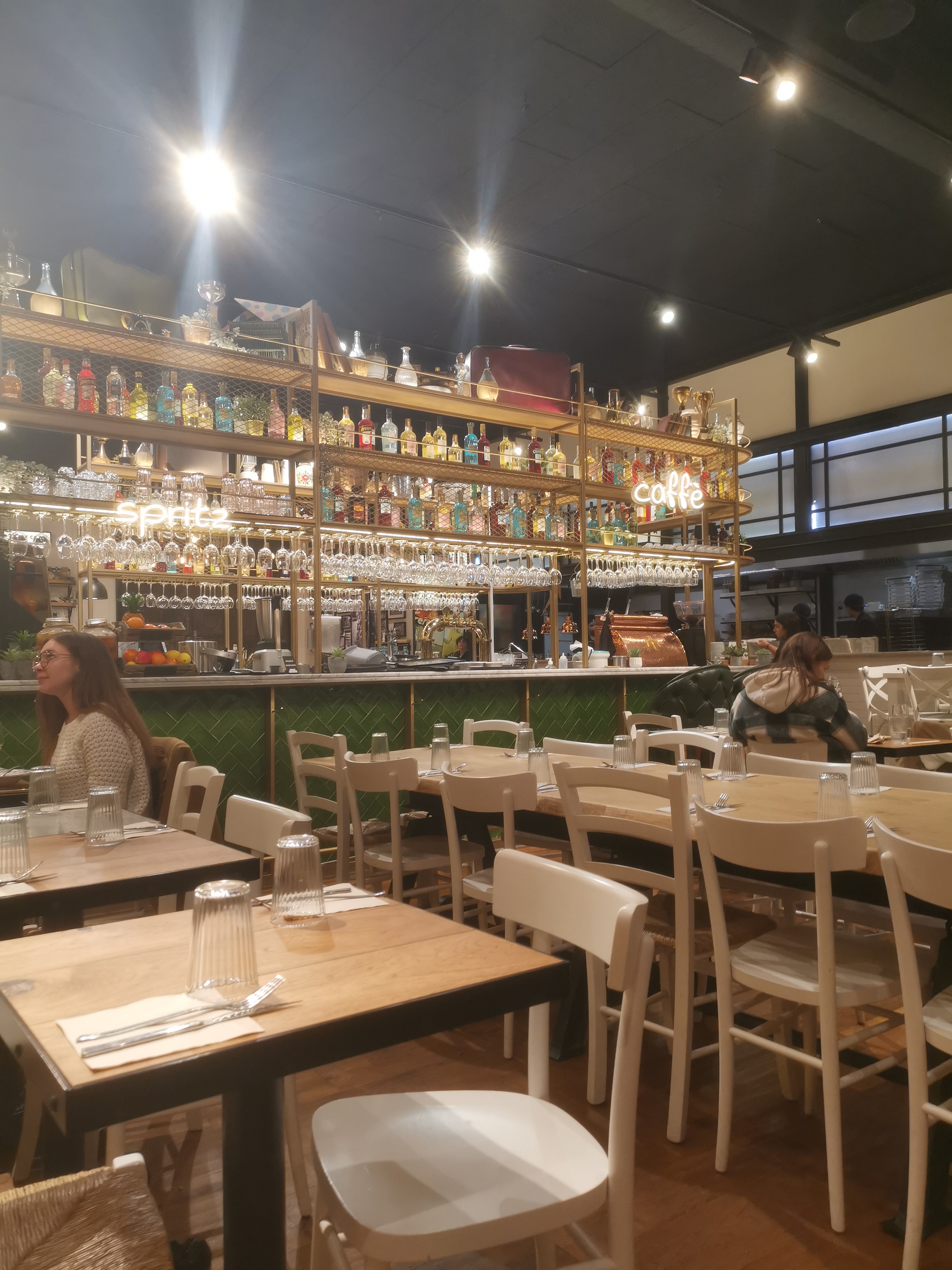 Tout d'abord, le lieu est agréable, jolie déco et beau bar central. On s'y sent bien et on est bien accueillis. L'équipe est très sympa et le service agréable (même s'il faut aller passer commande au comptoir). La qualité de la nourriture est malheureusement inégale. Nous étions déjà venus une fois, les pizzas sont bonnes. Mais notre dernière expérience a été décevante, nos pâtes étaient beaucoup trop cuites, ce qui gâche le repas. Le spritz que j'ai pris n'était pas bon, très dilué. Les desserts étaient bons.