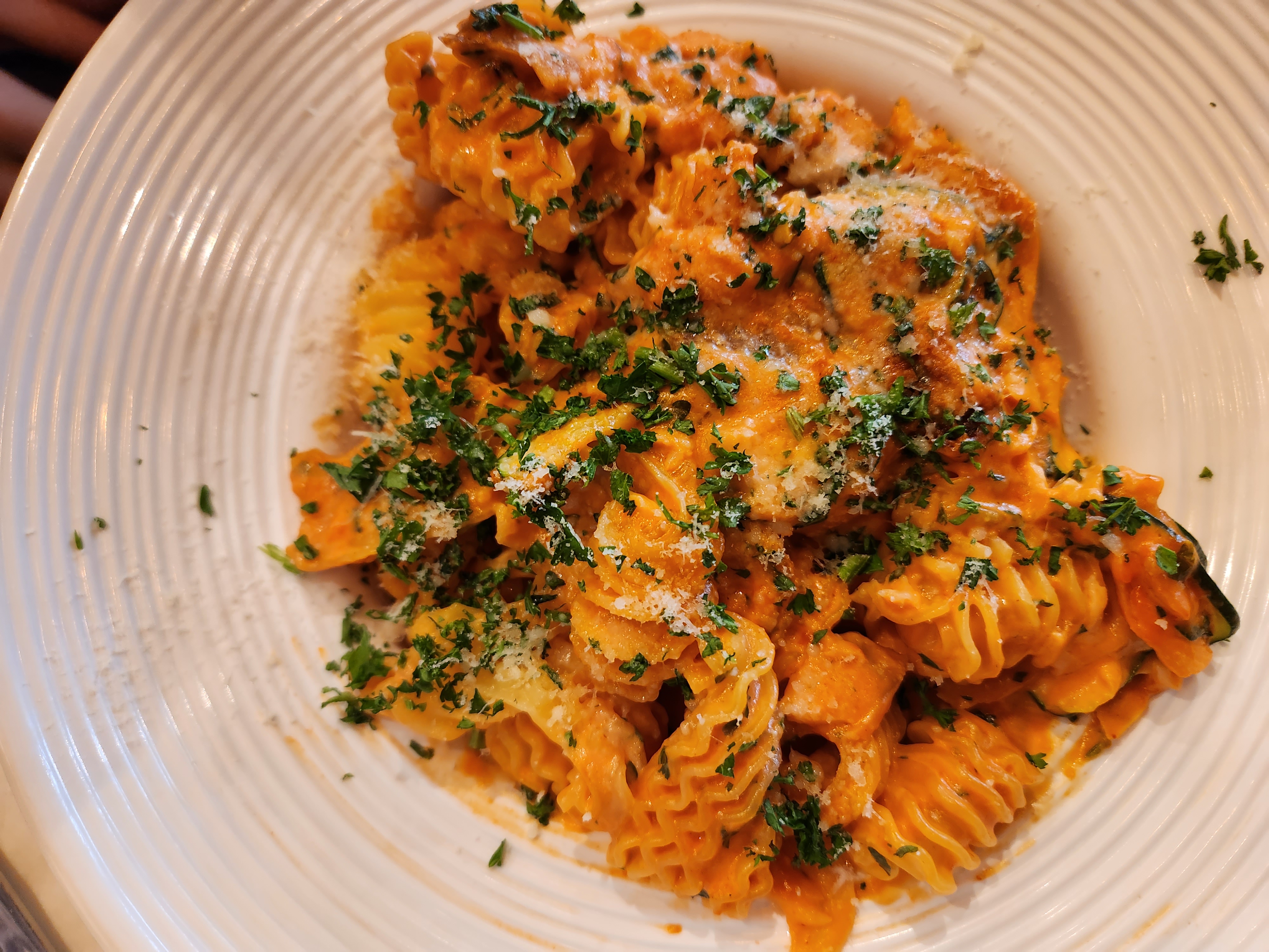 Pâtes trop grasses ( baignent dans l’huile) et pas du tout al dente !! Dommage Nos plats sont restés longtemps sous la lampe avant qu’on soit servi
