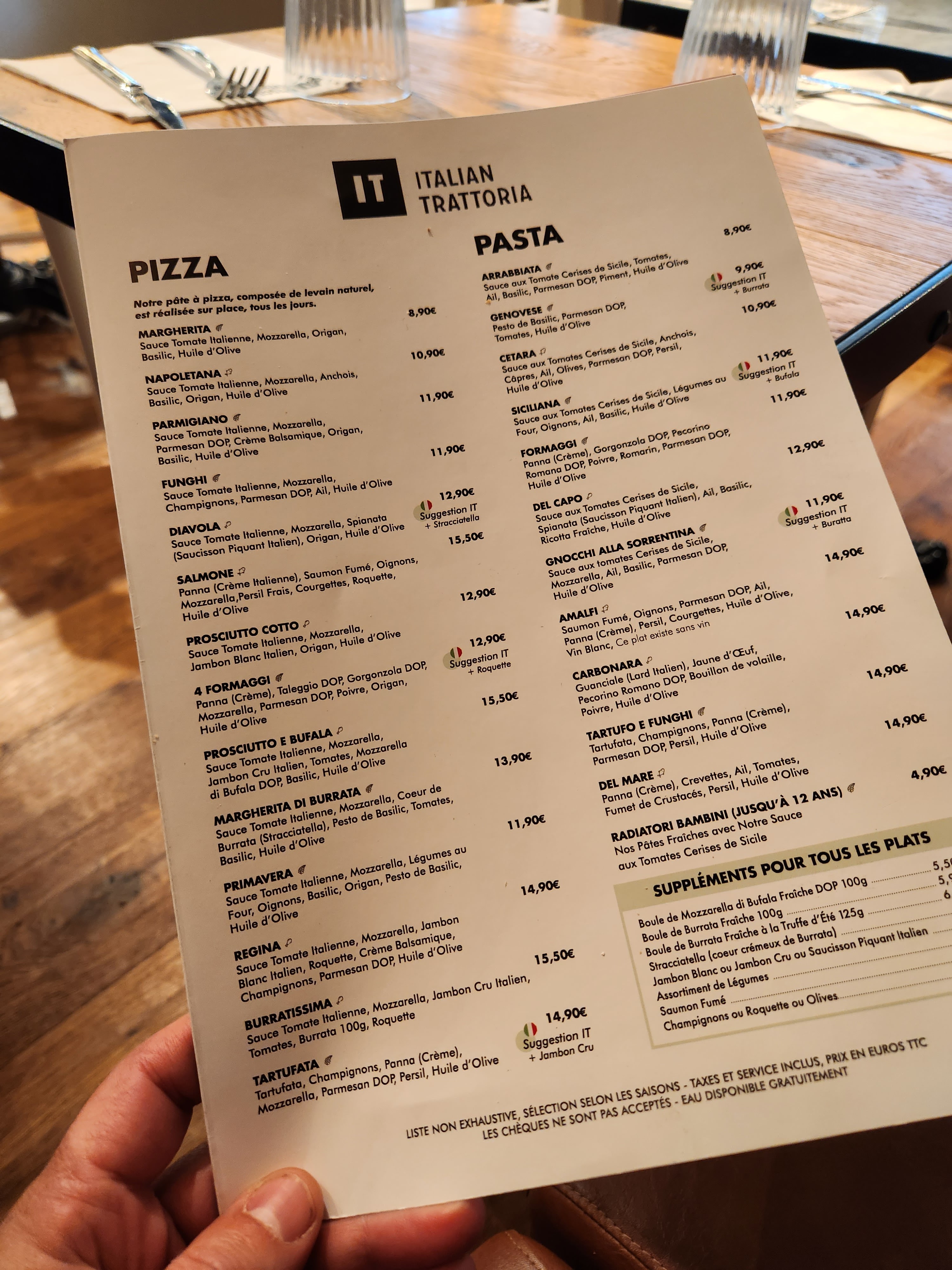 Pardon mais tout cela nous a fait 😅 Car ou vous vous trompez de restaurant ou vous êtes clairement intentionnellement malveillant. Une chose étrange déjà : chez nous il y a toujours beaucoup de monde, donc ce commentaire est totalement improbable😄 Ensuite il se trouve que nous servons vite, nous sommes organisés et rapides! Pour ce qui est de la pizza « crêpe »😆, des ingrédients etc…je laisse les éventuels lecteurs de nos échanges aller sur notre page Instagram @itbordeaux pour voir des photos et films pris en live et qui seront la simple démonstration du caractère purement médisant de votre message… Pour ce qui est des prix, même esprit: 70€ pour combien de personnes?😄 Notre 1er prix de pizza (et de pâtes fraîches aussi d’ailleurs) est inférieur à 10€ par exemple, je souhaite à tout un chacun des prix aussi justes que les nôtres pour des plats 100%maison et faits à partir de produits frais (pas de congélateur chez nous 💪🏼). Voilà, nous avons trop répondu à un message qui n’en valait tellement pas la peine, nous retournons à notre belle énergie et à l’accueil de nos si nombreux super clients 😋