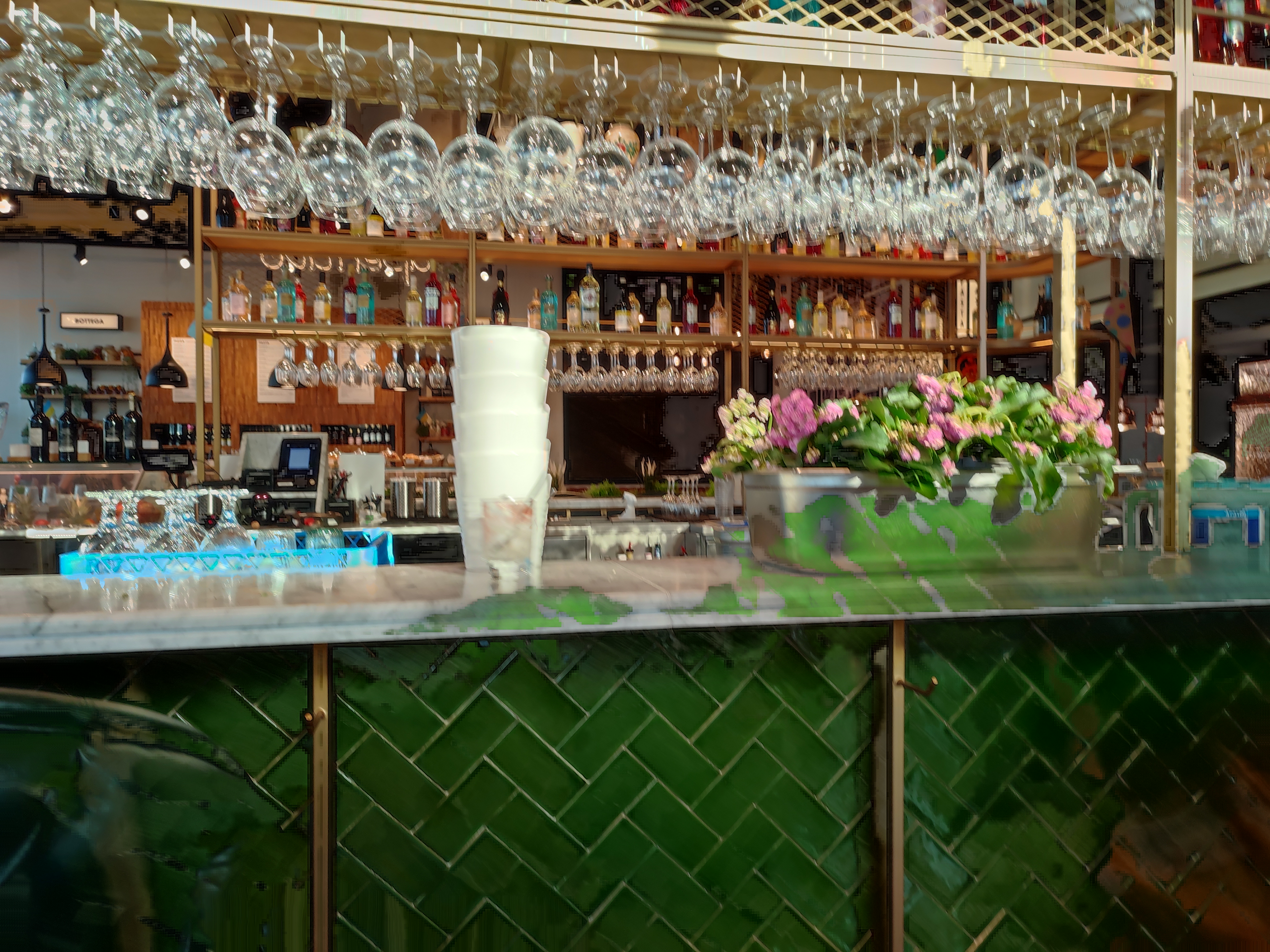 Cadre vraiment sympathique et coloré. En revanche, le service laisse à désirer. 😕 Commande d’une burrata à partager apportée en même temps que les plats. Plats ramenés en cuisine laissés sous lampe chauffante puis rapportés à la table après 5 minutes. Obligés d’aller au bar plusieurs fois pour demander du pain, du vin, sel et poivre. Verres débarrassés le temps d’aller choisir notre dessert mais pas les assiettes vides. Réservation faite un vendredi soir. Cela peut arriver mais là ça fait un bon cumul en une soirée 💁🏻♀️