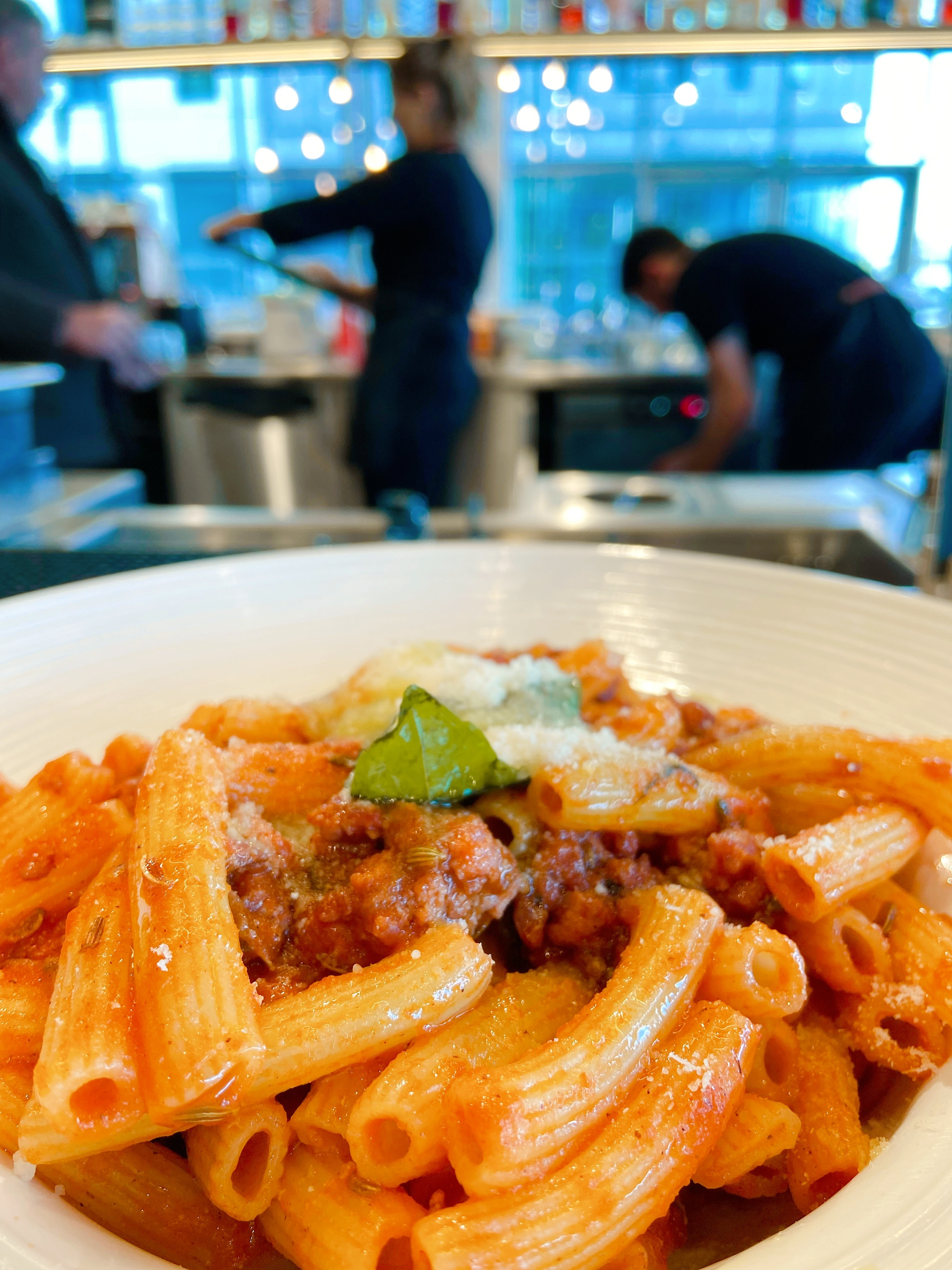 Merci pour vos compliments. Nous prenons les commandes des plats et les cafés et desserts sont eux commandés au comptoir. C’est simple 😊 Chez nous tout est fait maison au restaurant et nous sommes heureux que vous ayez apprécié. Nous mettons exactement 160g de pâtes fraîches (au lieu des 100/120g recommandés usuellement par personne). Vous avez sinon chez nous l’option XL pour quasi le double de pâtes 😜 À bientôt de vous accueillir à nouveau dans notre belle Italie à Bordeaux 😊🇮🇹