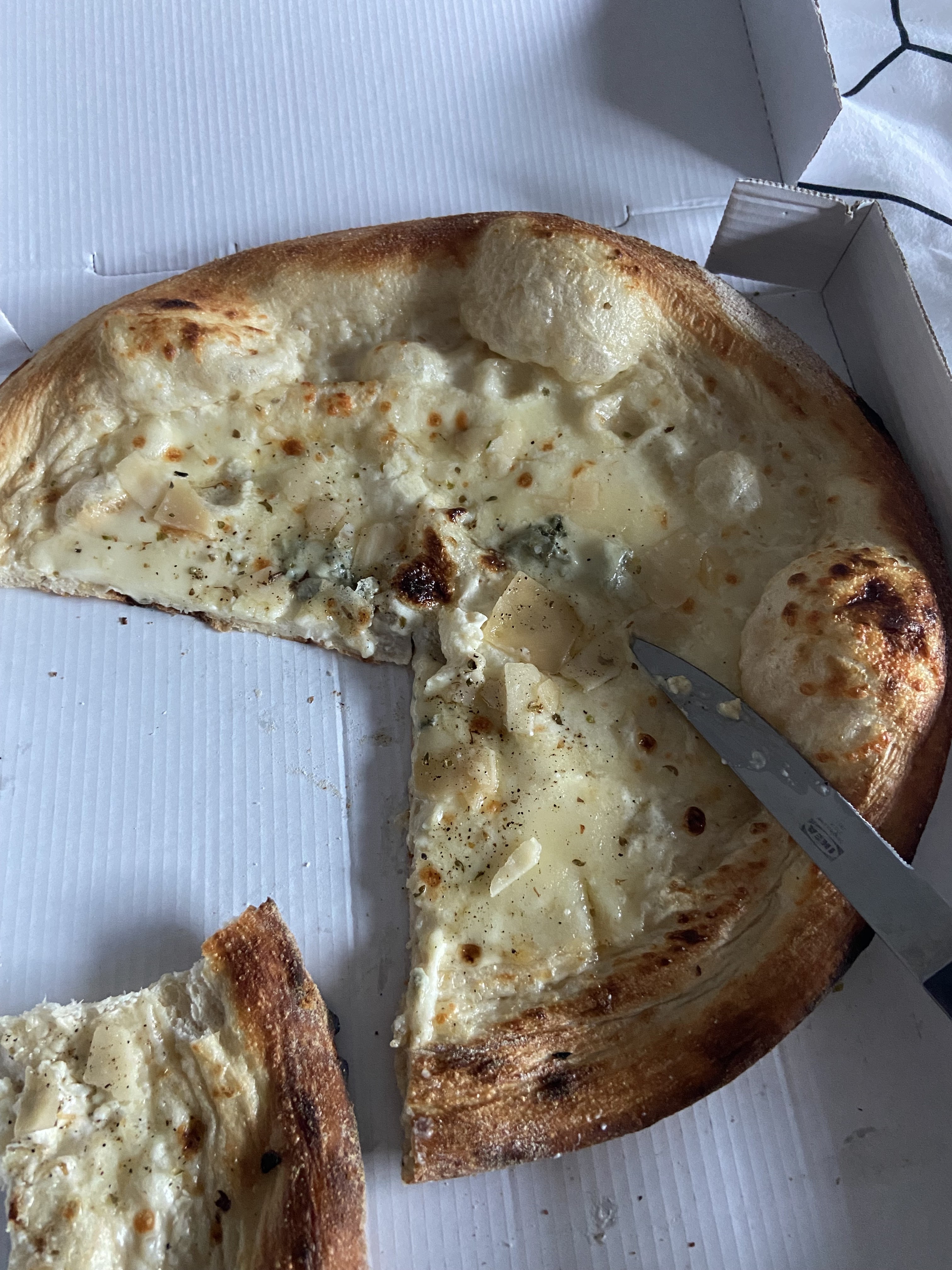 Bon, j’ai commandée à emporter ! J’ai pris une “4 Formaggi”, et honnêtement c’est bon mais sans plus :) Un peu déçue par la quantité, moi qui est gourmande j’ai encore faim …