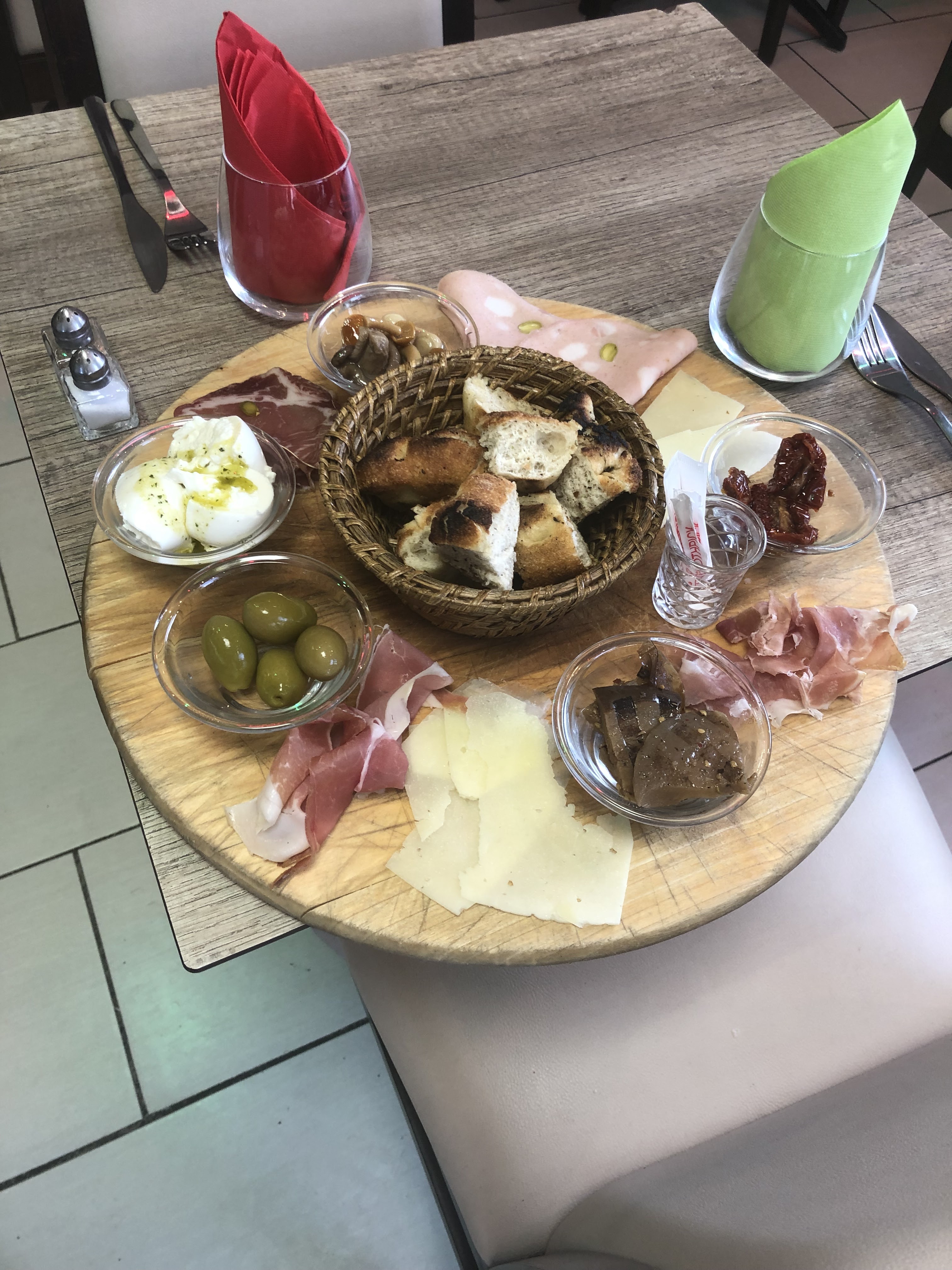 Première fois de passage J'ai pris une salade italienne Tout simplement un DELICE !! Le seul bémol est la terrasse côté rue infernal !