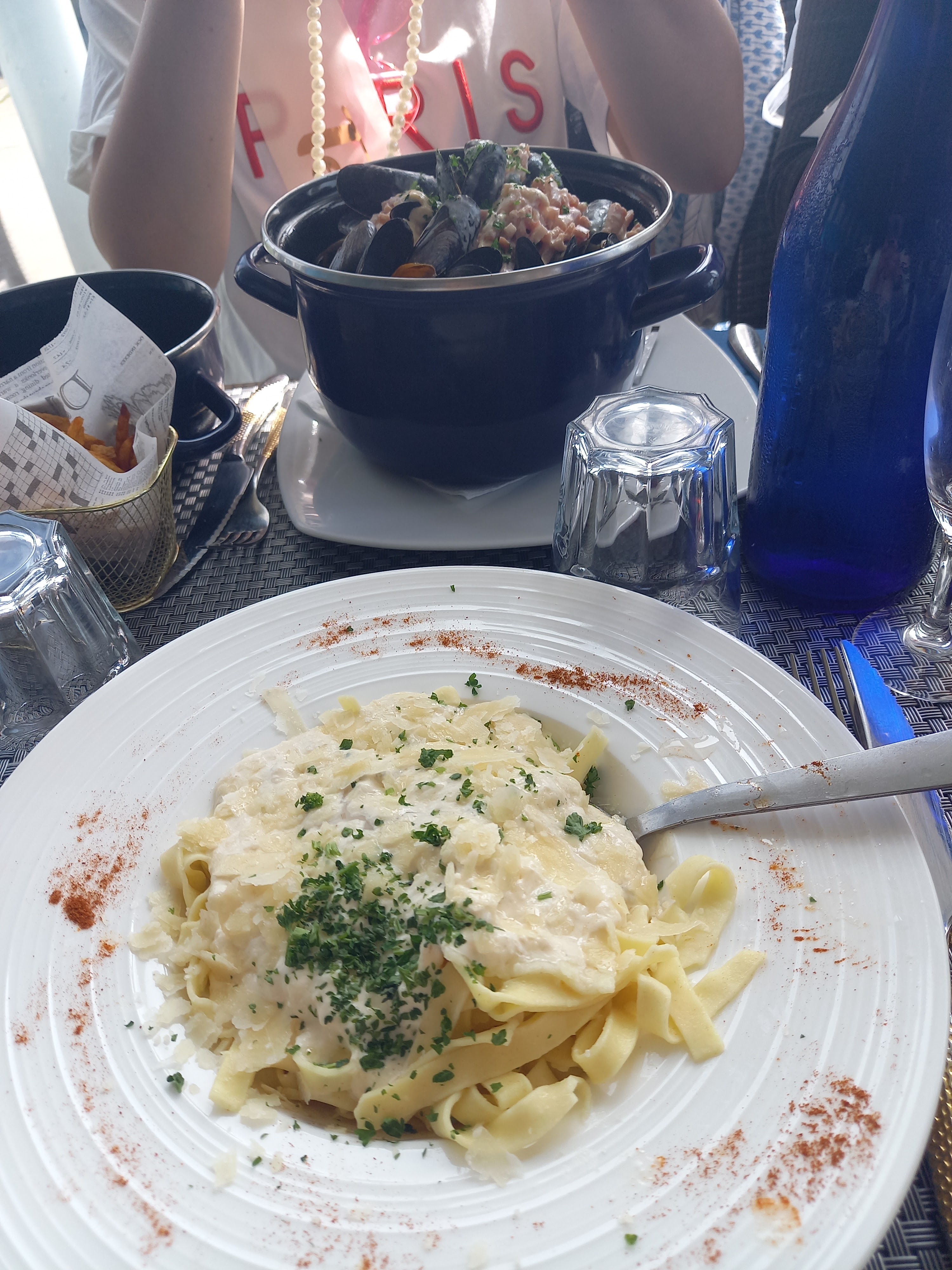 Pizza bonne Frite maison pas top Moule normande ça passe