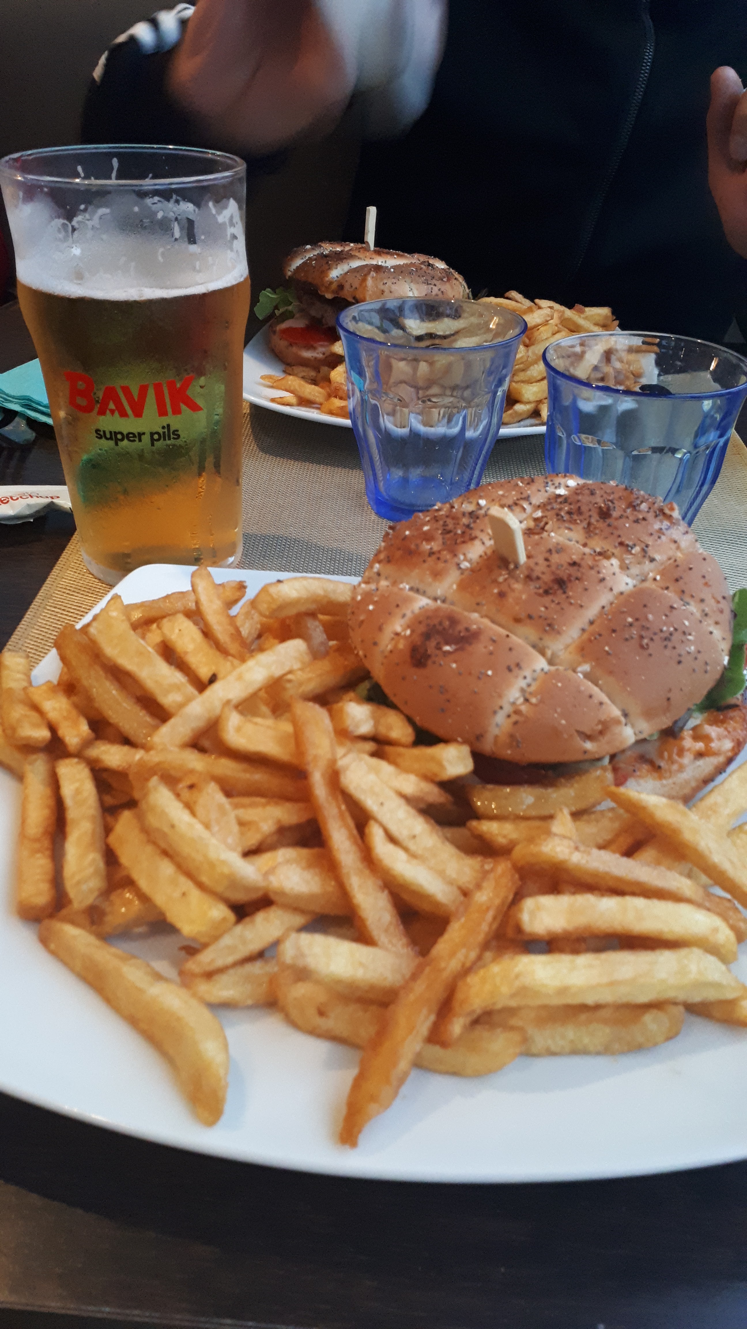 Terrasse et serveuses agréables (mis à part « l’oubli » de la carafe d’eau). Petit bémol : les frites sentaient le poisson, ce qui les rendaient limite immangeables. Burger et moules très bonnes, prix corrects. Nous reviendrons (ou pas).