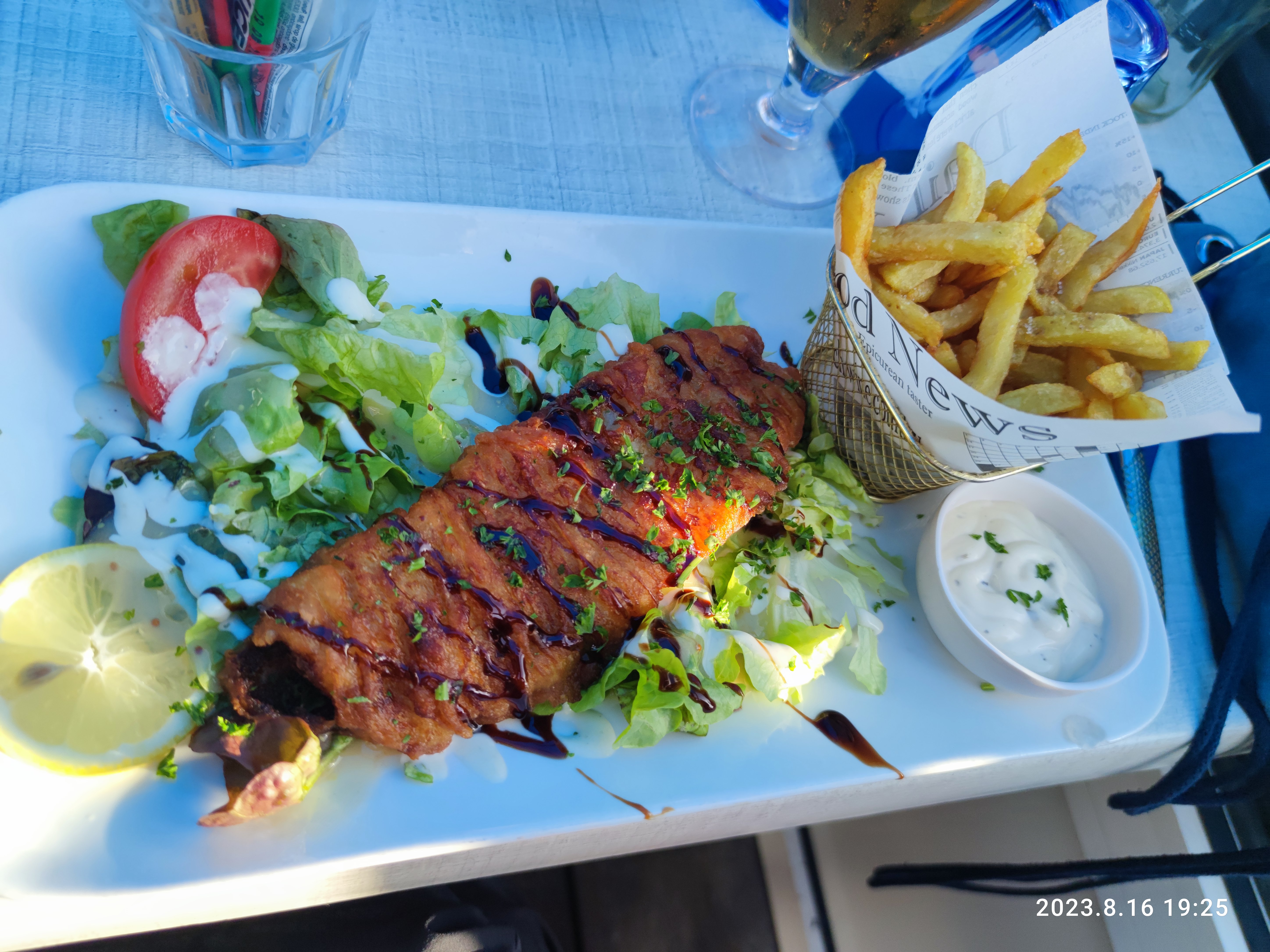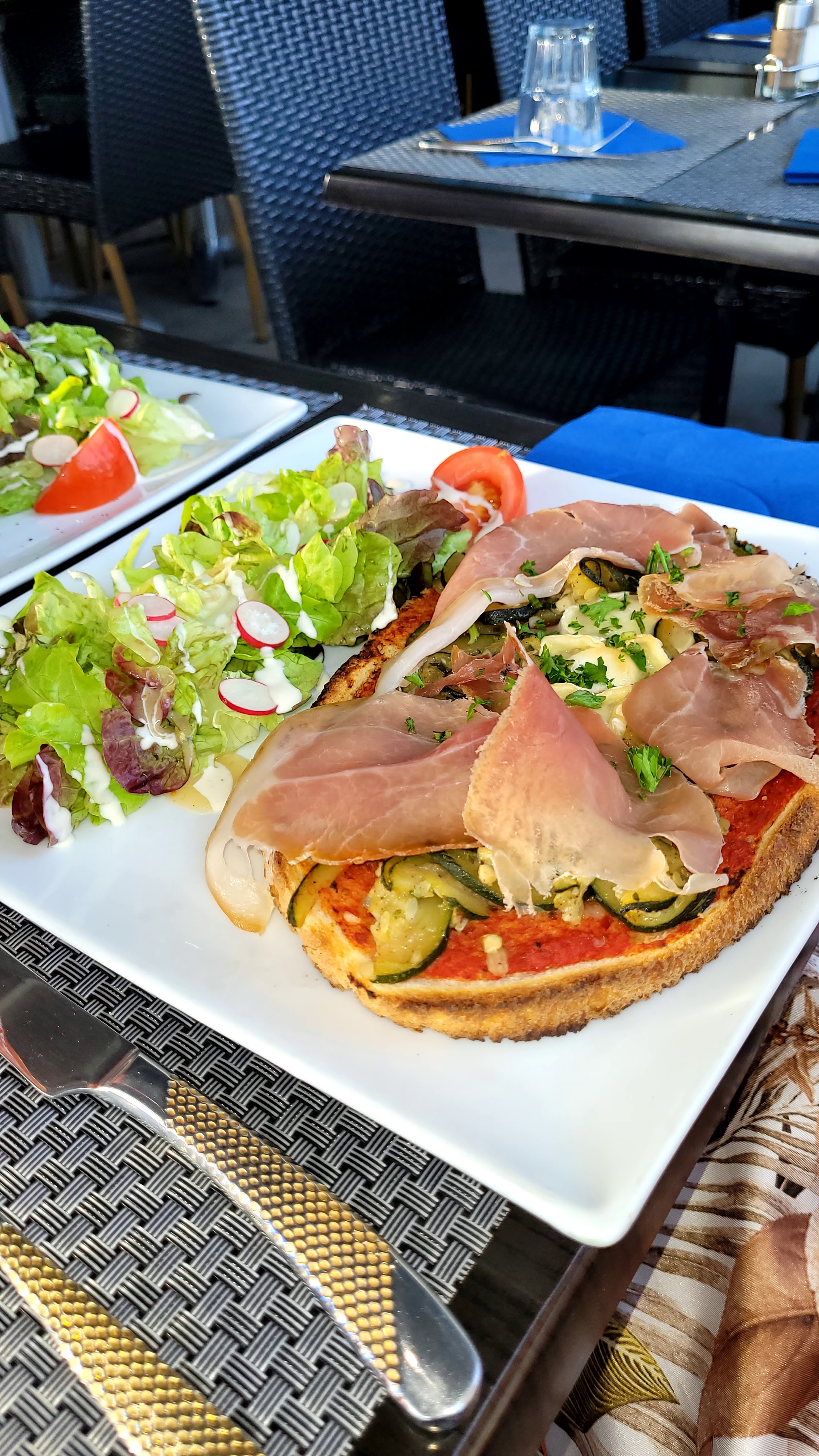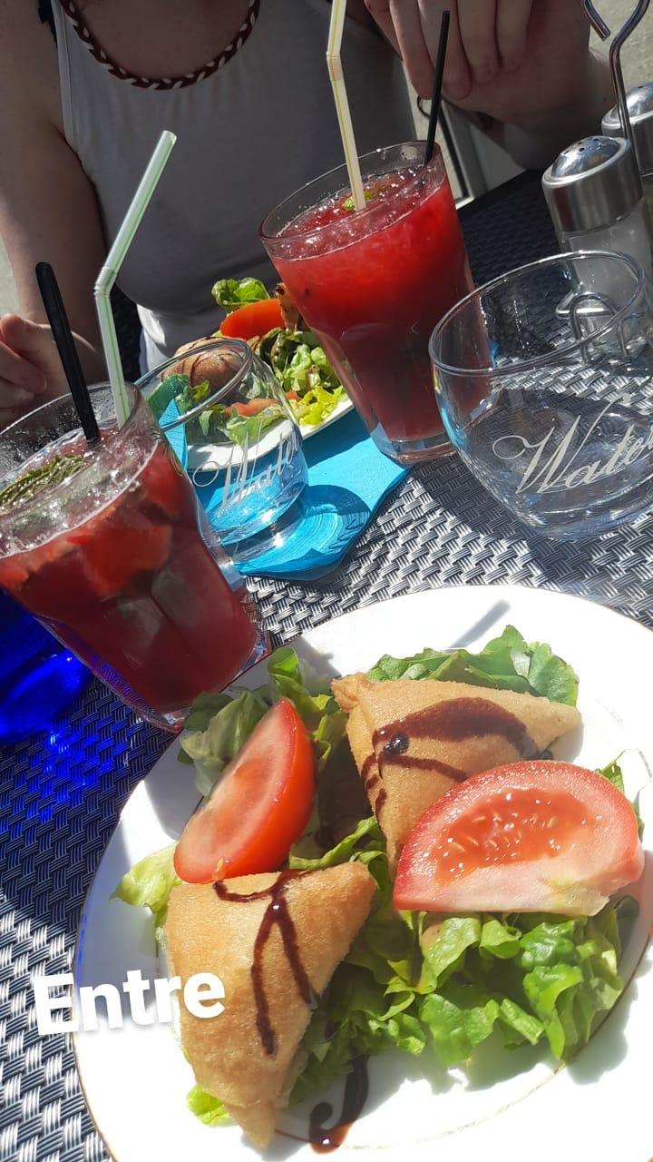 Service agréable situé sur le bord de mer. Belles assiettes salade, pâtes et cocktail ++ Petit bémol: moules qui ont rapidement refroidies alors que nous étions à 29 degrés dehors. Pas de dessert.