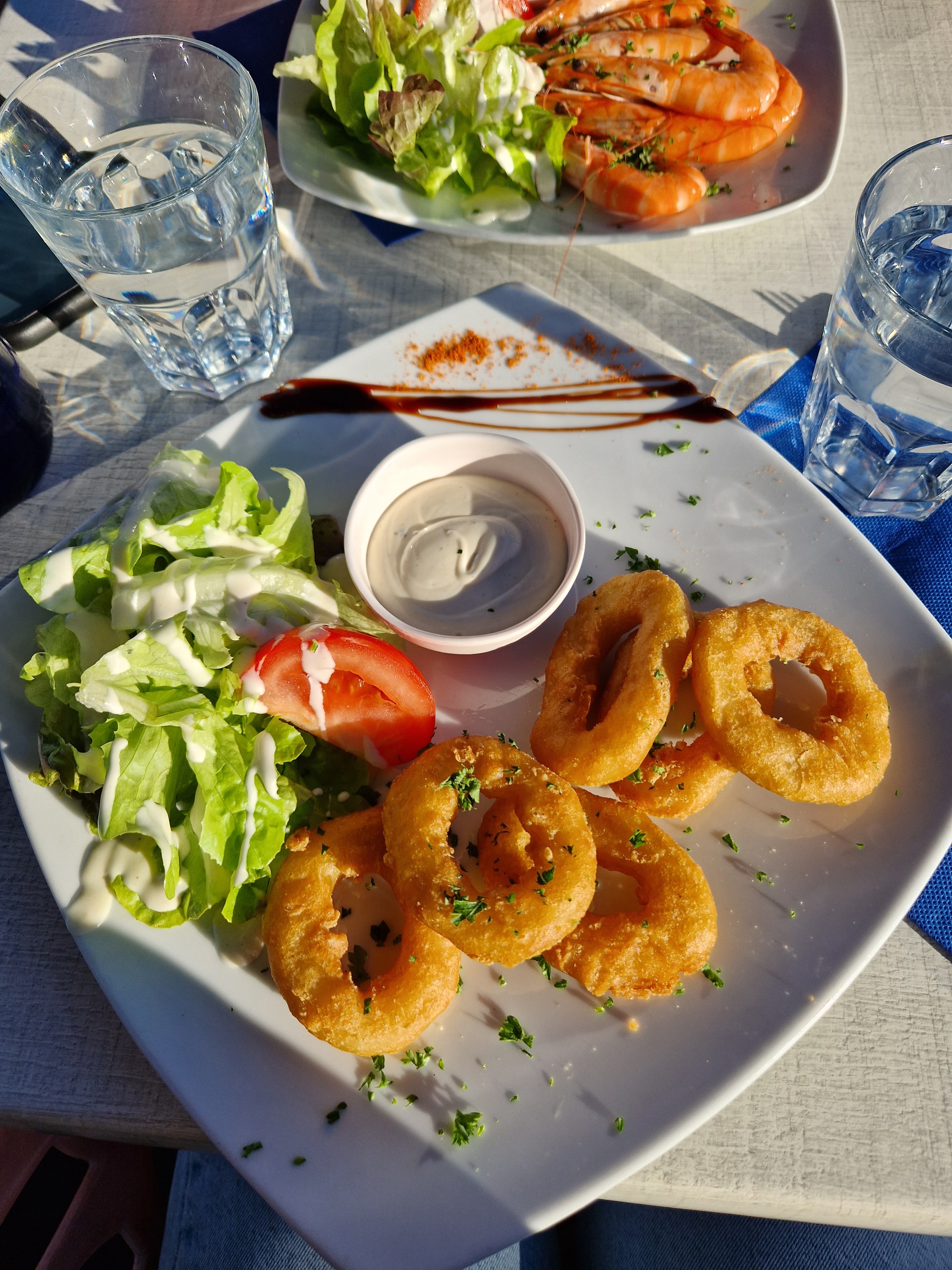 Nous avons eu du mal à choisir un restaurant au bord de la plage et c’est à l’Amarino que nous avons déjeuné. Installés sur la terrasse avec une belle vue sur la plage, les serveurs étaient très sympathiques. Bon rapport qualité prix !