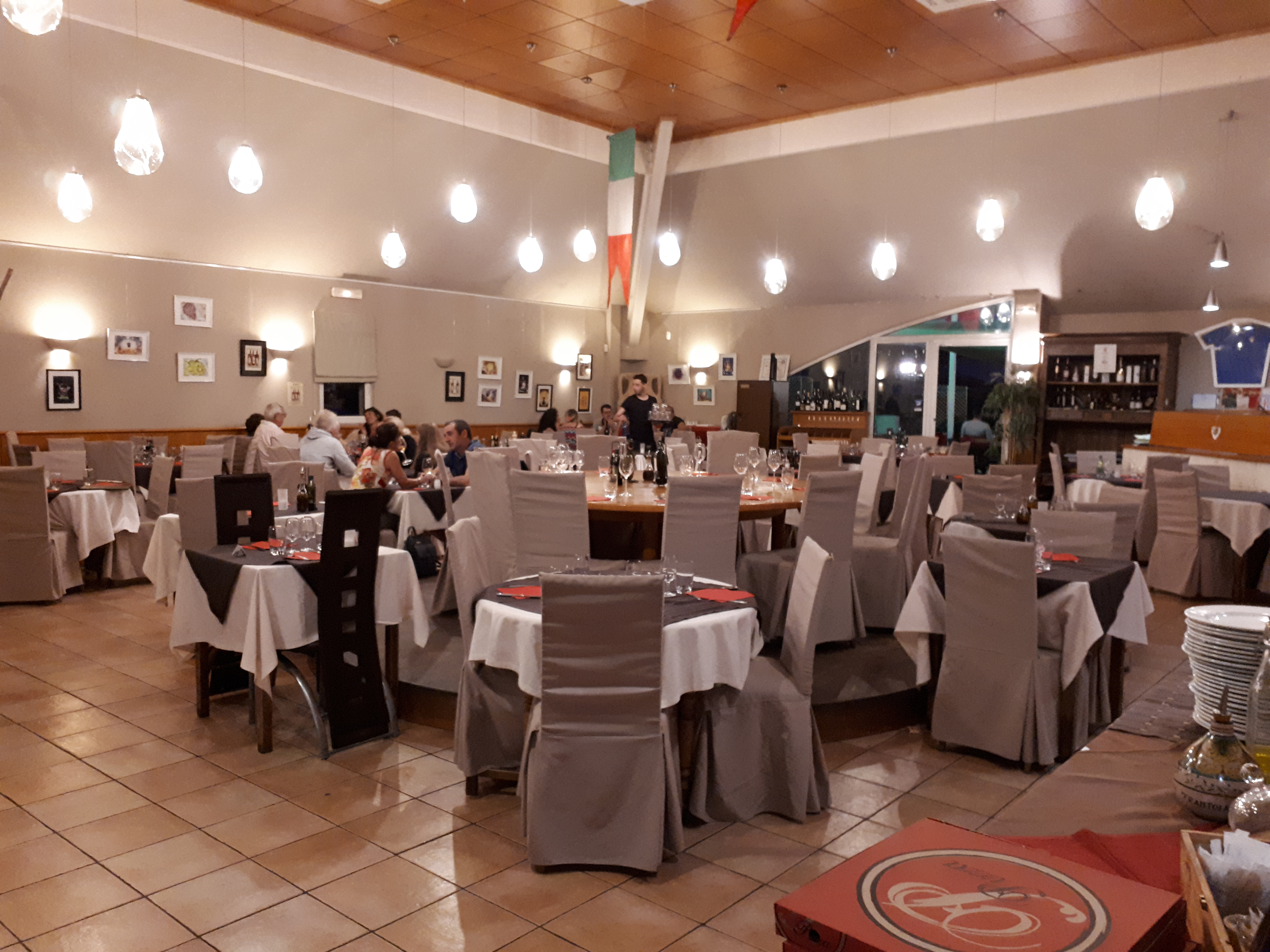 Je viens de passer une soirée en Italie !!! Tout y est, la cuisine, le patron qui « houspille » ses serveurs en italien, serveurs qui parlent en italien/français, l’ambiance avec des enfants qui jouent sur le côté du restaurant, les gens qui parlent ensembles … Alors oui, il faut prendre un petit peu le temps pour profiter de cette ambiance, encore que le service est assez rapide. Personnellement, j’ai adoré ce repas ce soir et c’est une jolie étape sur mon retour de vacances.