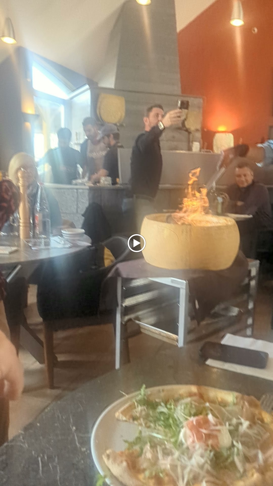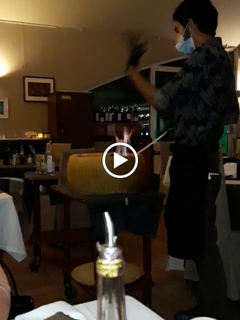 Nous avons mangé les pâtes cuites dans la meule de parmesan : un véritable délice accompagné d’un spectacle et d’une mise en scène digne de la comédie d’El Arte. Accueil chaleureux, belle terrasse. Merci pour tout. A refaire si nous n’habitons pas si loin.