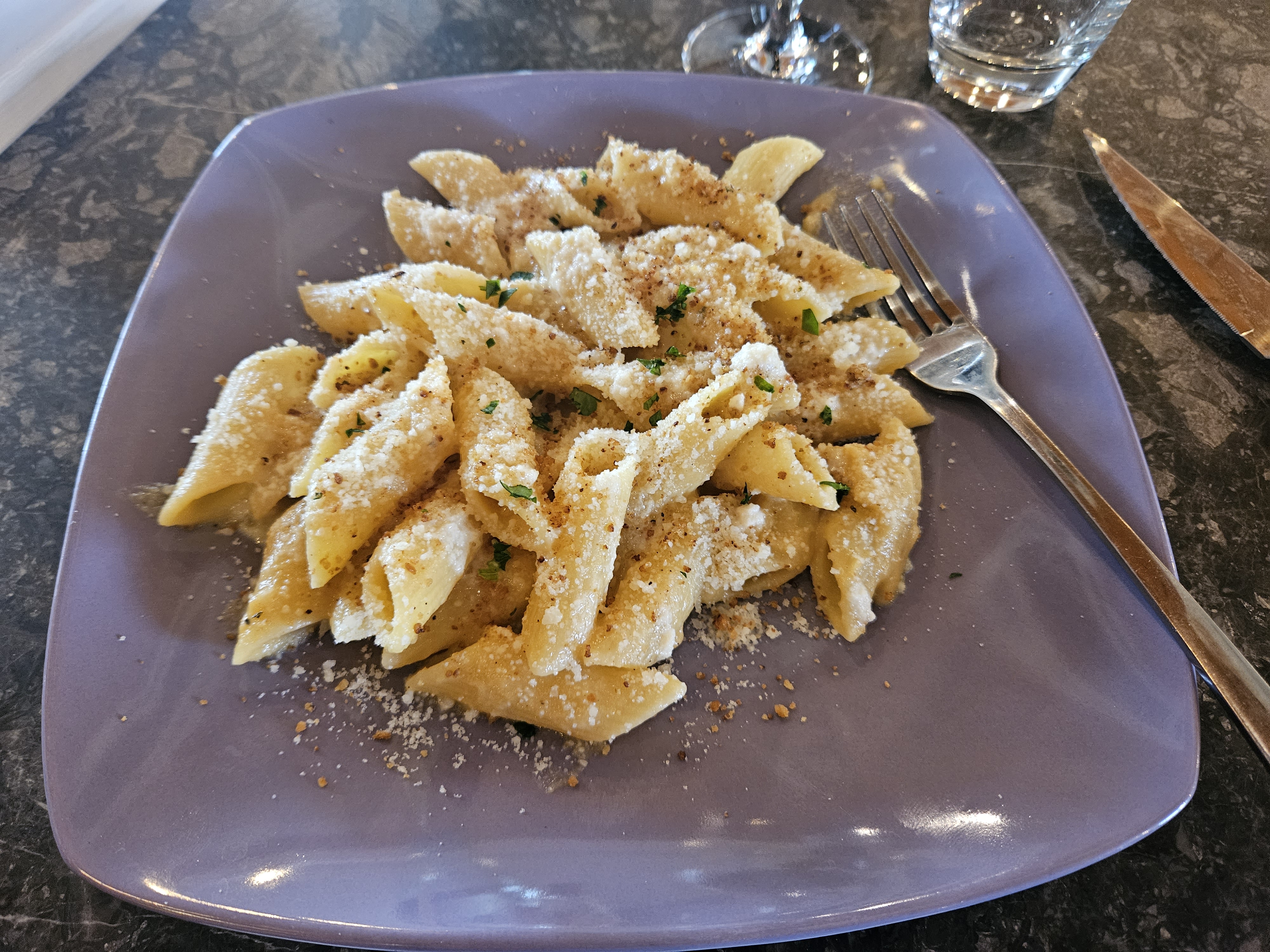 Buongiorno merci pour le compliment sauf la pasta qui est al dente comme nous les mangeons en Italie et non pas cuites . De plus nous n avons pas de micro onde . Notre cuisine est ouverte et accessible à tout le monde pour le constater