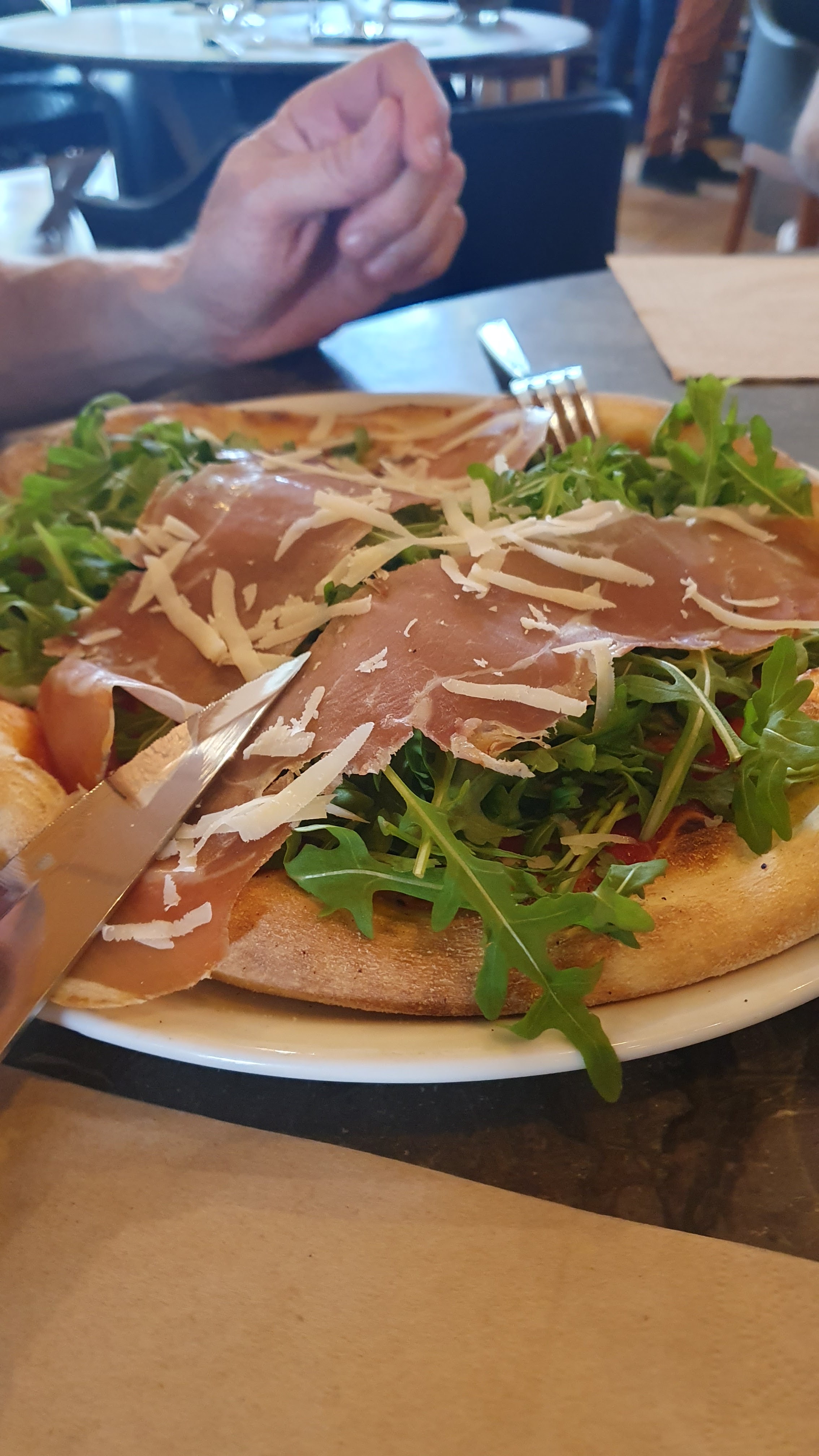 Restaurant italien proposant majoritairement pizza et pates (malheureusement sans trop d'antipasti). La pizza etait trés bonne. Beaucoup de monde le soir ou j'y suis allé. Grande salle un peu bruyante, pas mal de bazar, cartons et machines à découpe entreposées. On retrouve même la grande ardoise du menu de la St Valentin (on est en août). Service assez surprenant, ça parle fort, en italien, sans trop comprendre à qui on s'adresse. Les serveurs m'ont mis mal à l'aise après avoir insisté lourdement sur la prise de boissons. Non je ne souhaite pas de boissons!