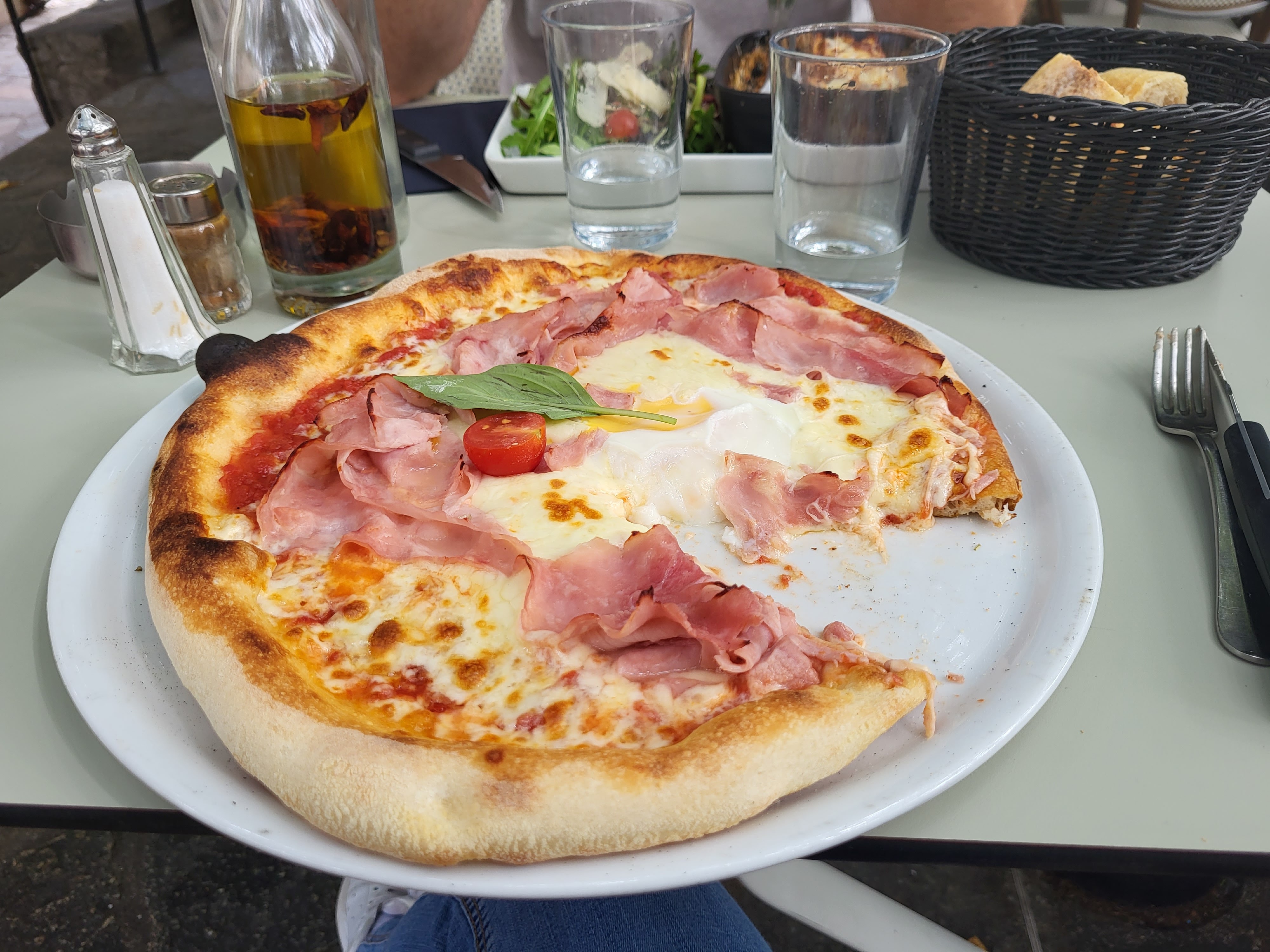 ne vous laissez pas attirer par la très belle terrasse (oui elle est très belle dans une ville extrêmement charmante et ça doit être encore plus belle pour diner). Nous avons attendu 1 heure et 20 minutes avec un enfant de 2 ans pour nos pizzas et on a fini par quitter le lieu car au bout d’une heure et 20 minutes nos pizzas ne sont pas encore arrivés. serveuses pas du tout souriantes, presque désagréable quand vous demandez elle est ou votre assiette au bout de 45 minutes....