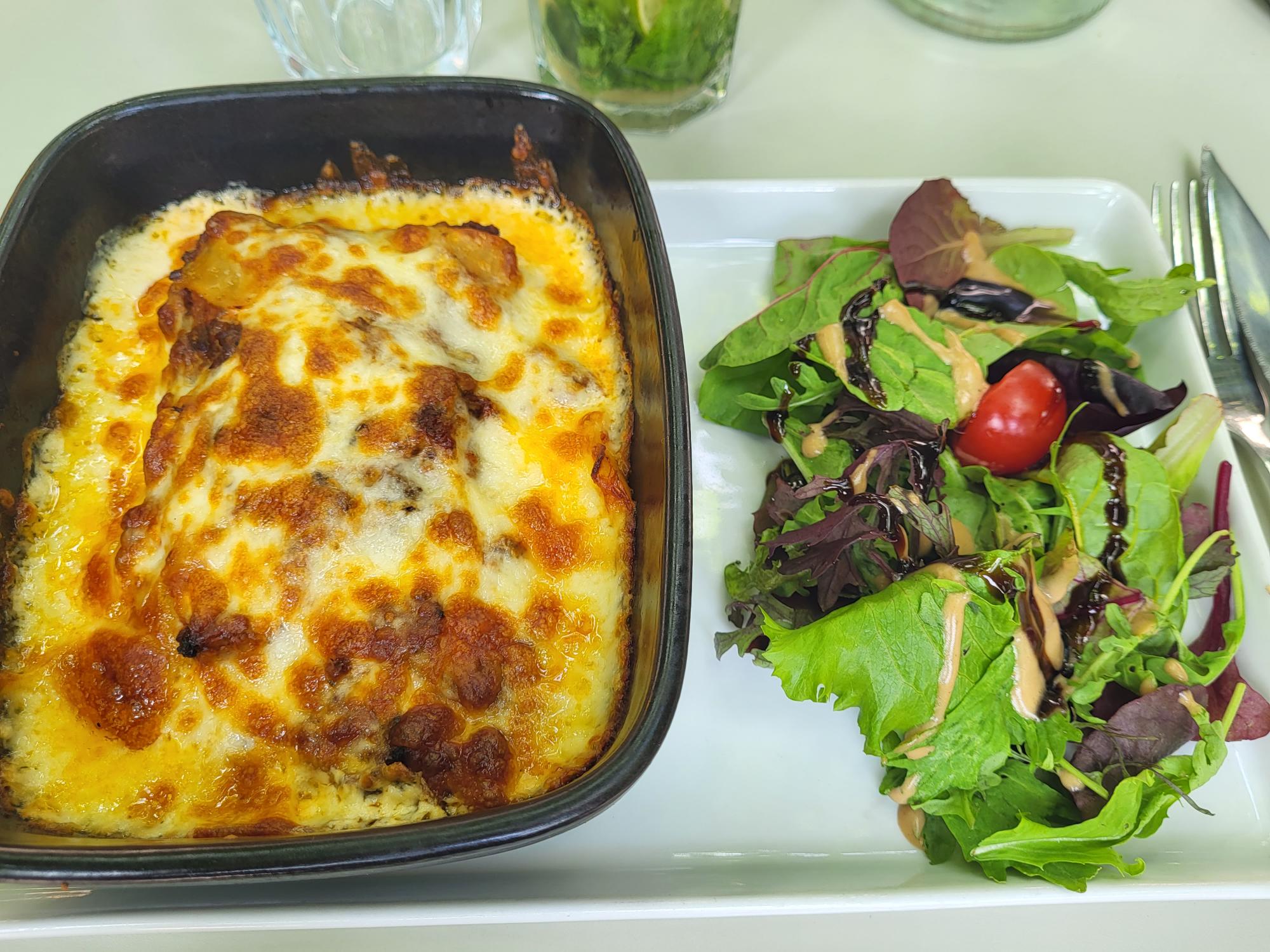 Un déjeuner en Italie ou presque...il me manquait juste le marsala. Des aubergines parmigiana, un plat copieux et délicieux. Jolie décoration. Par contre le niveau sonore dans la salle est élevé limité gênant.