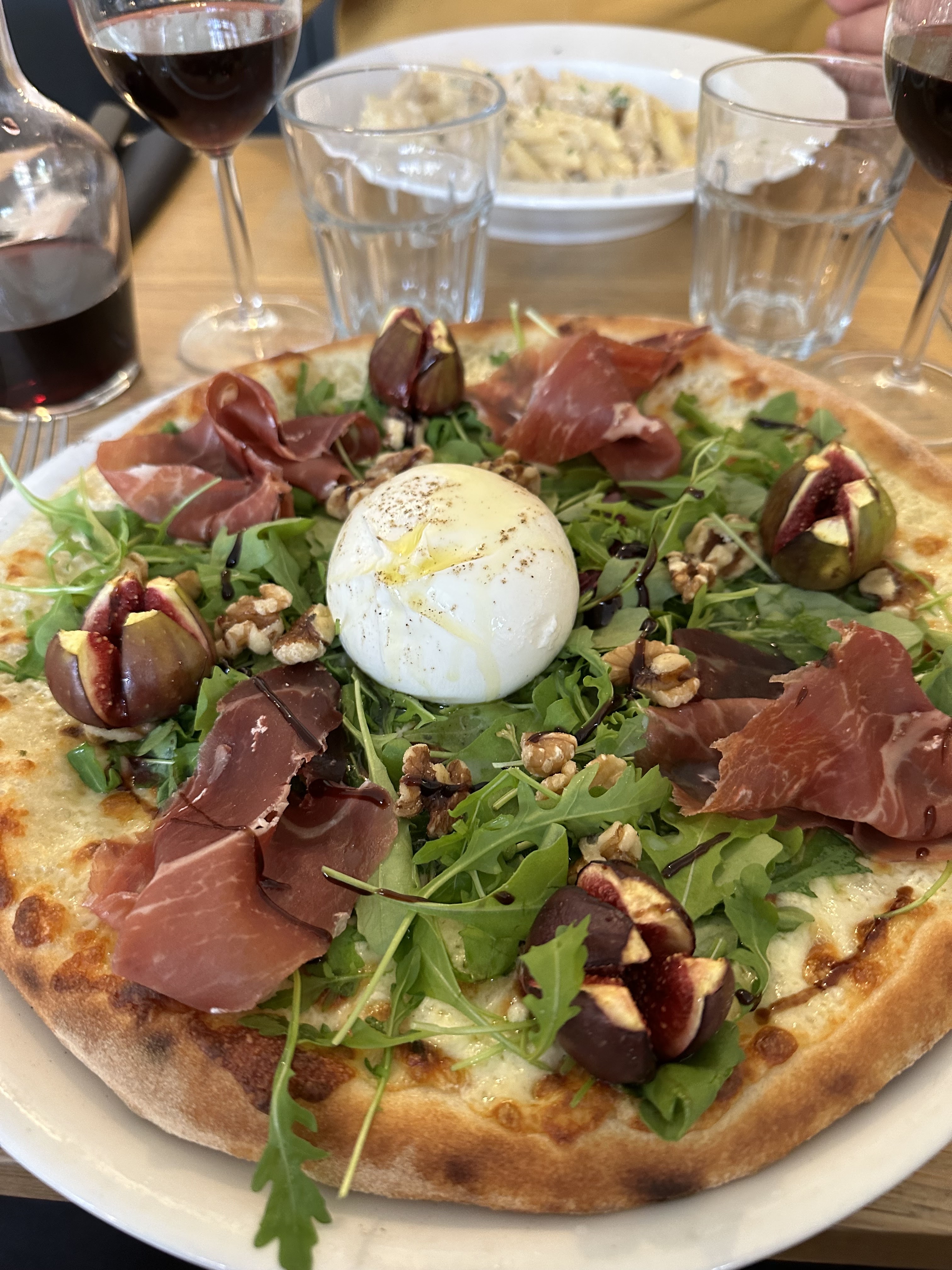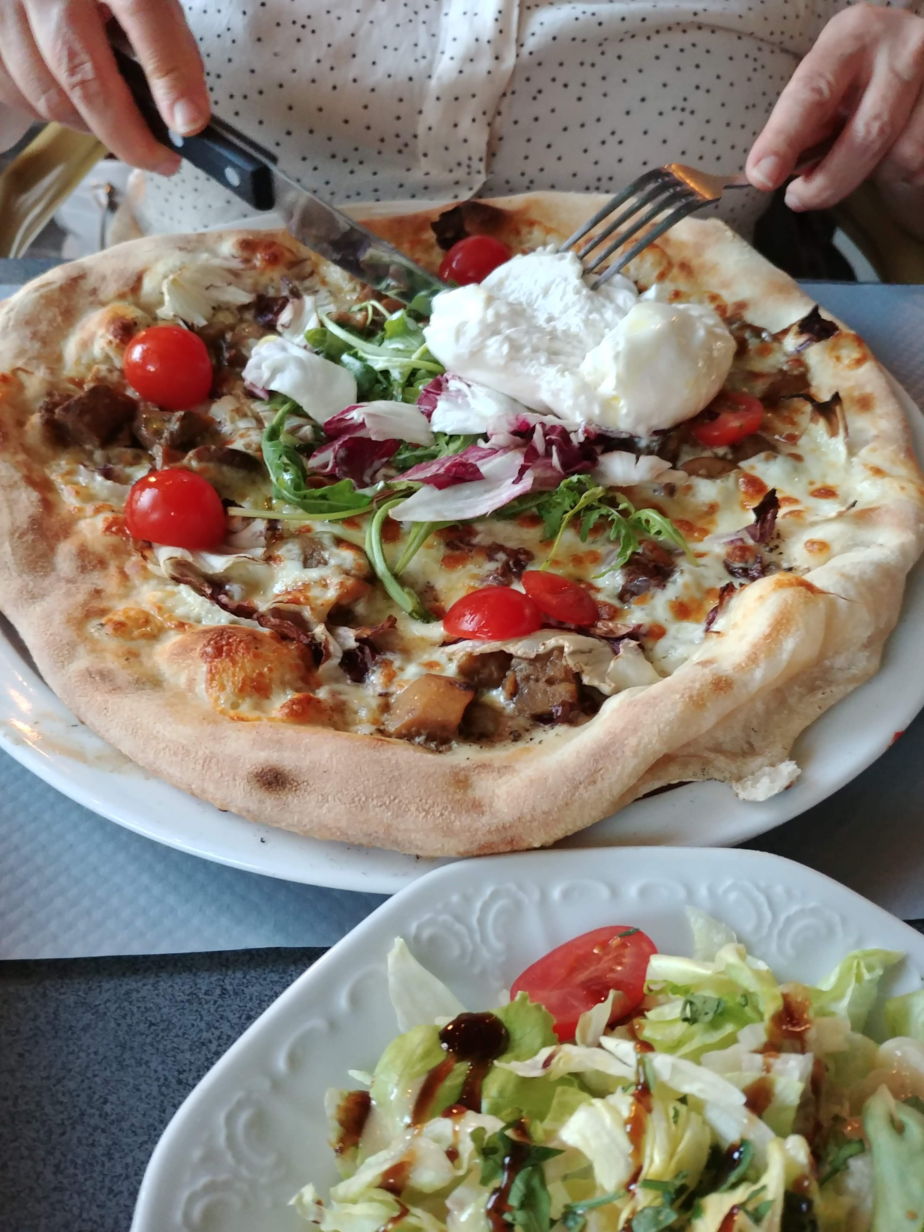 Lieu très agréable, personnel vraiment très sympathique. L’entrée de légume grillée et burrata était très bonne. La pizza était bonne mais malheureusement bien trop cuite et donc la pâte était cramé. Les pâtes au Saumon étaient moyen et trop de crème à mon goût. Mais dans l’ensemble ça été.