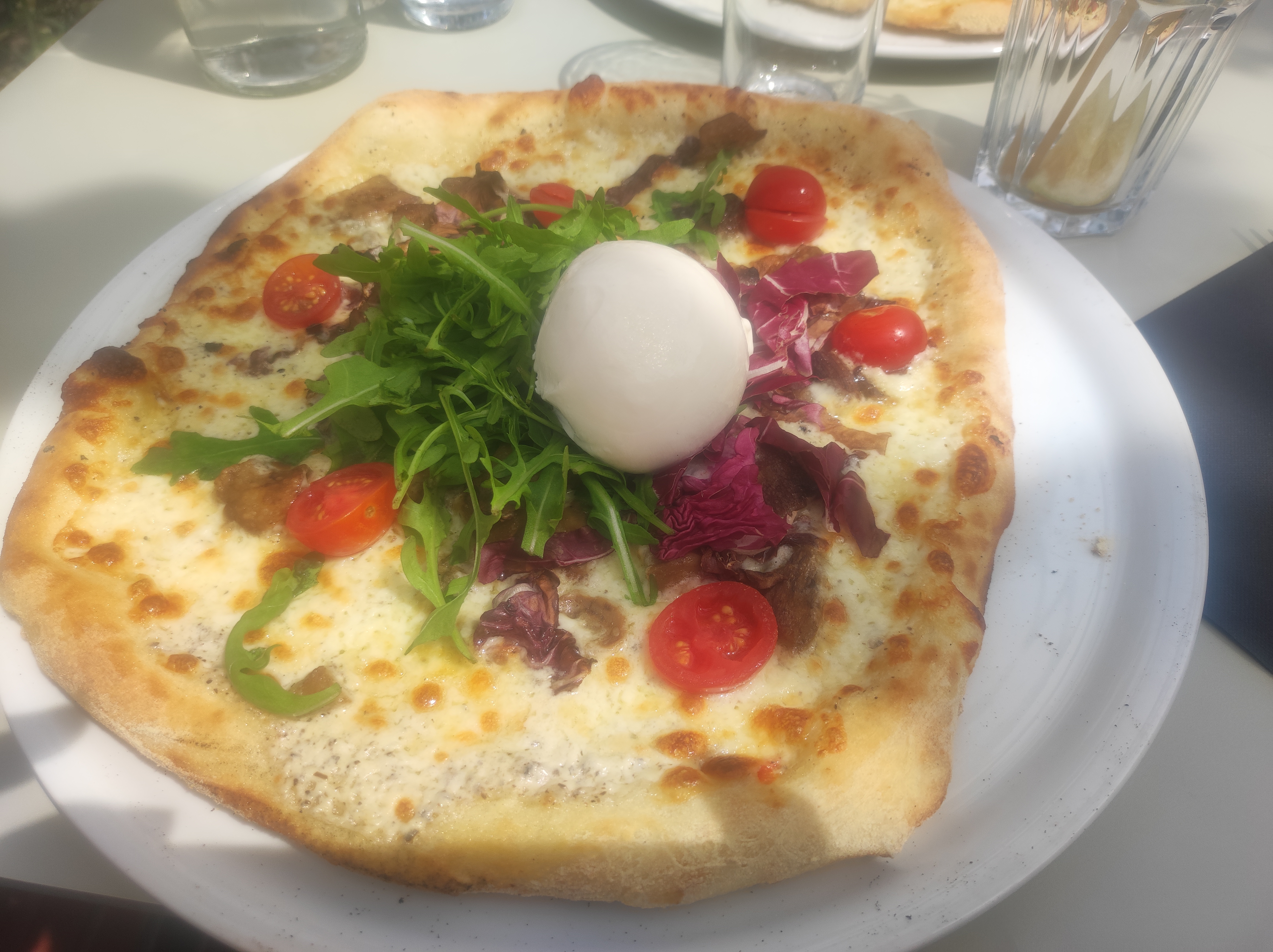 Une pizza regina, recouverte de coulis de tomate industriel non assaisonné. Une barrata heureusement relevant un peu le manque cruel de saveur. Un service sans sourire.