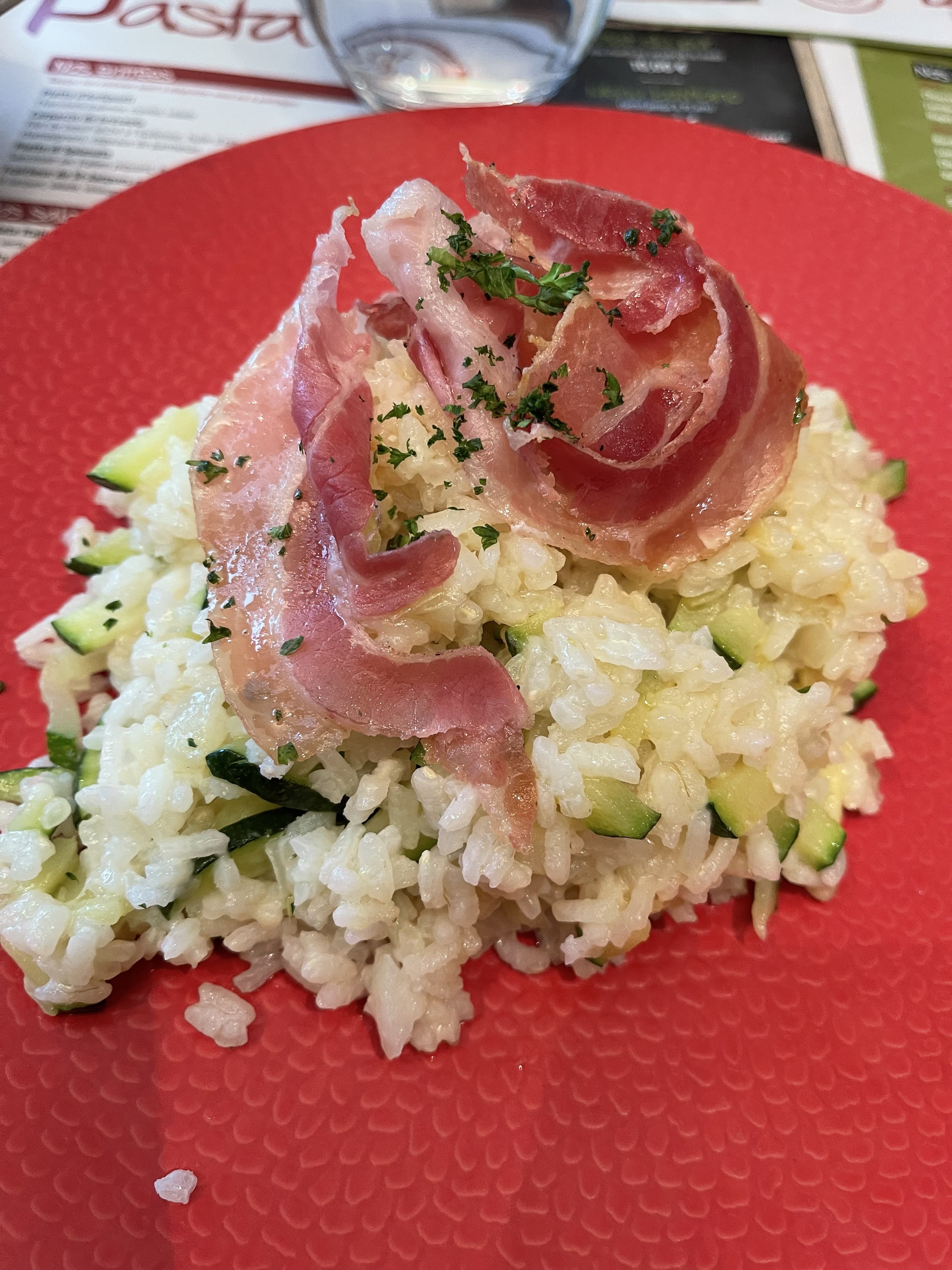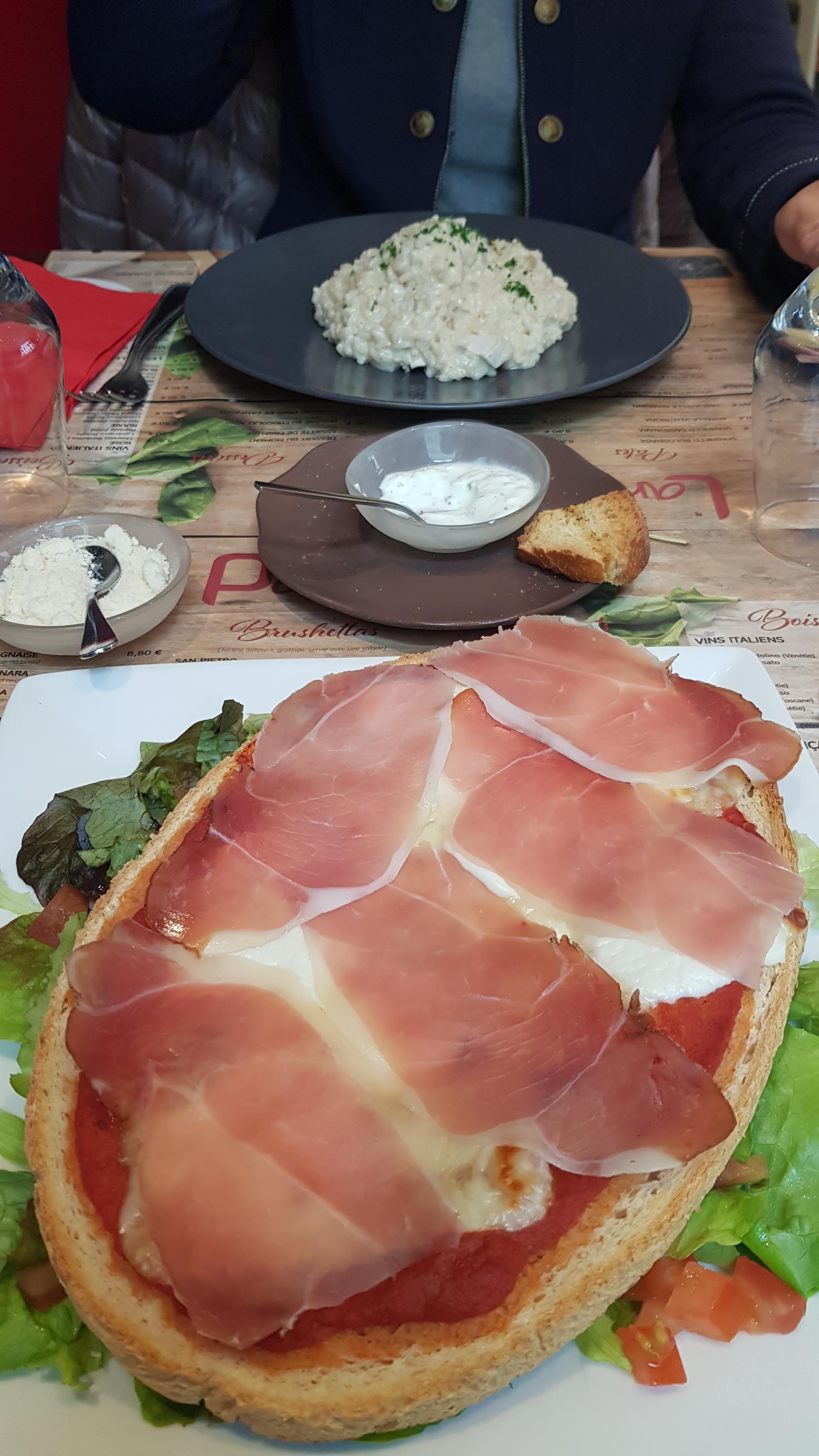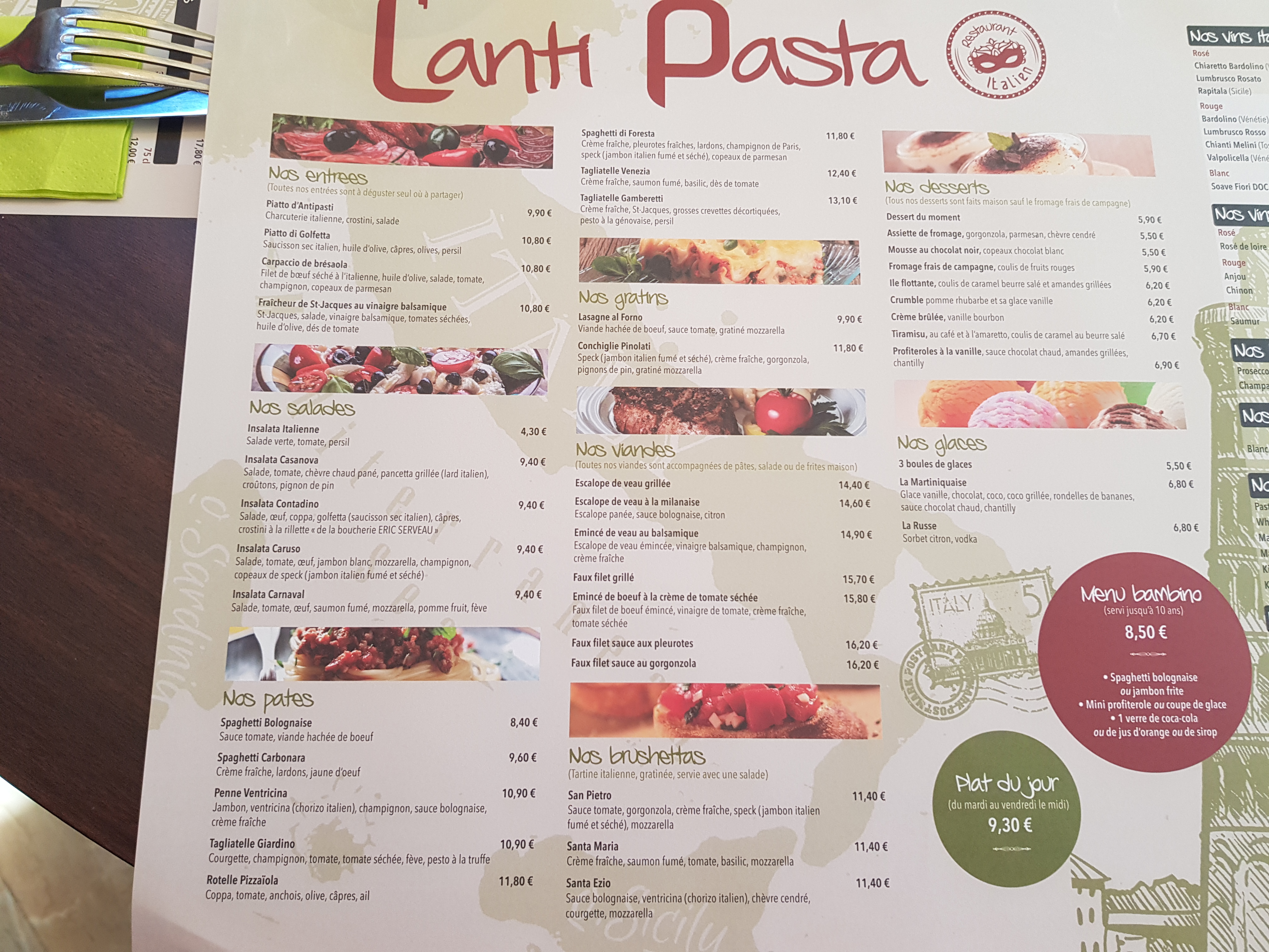 Serveuse très bien gentille bienveillante investie ! Les plats des enfants (spaghettis bolo et tagliatelles à la carbo) très bonnes ! Je déplore pour ma part un risotto sec et sans grande saveur… Les prix sont raisonnables
