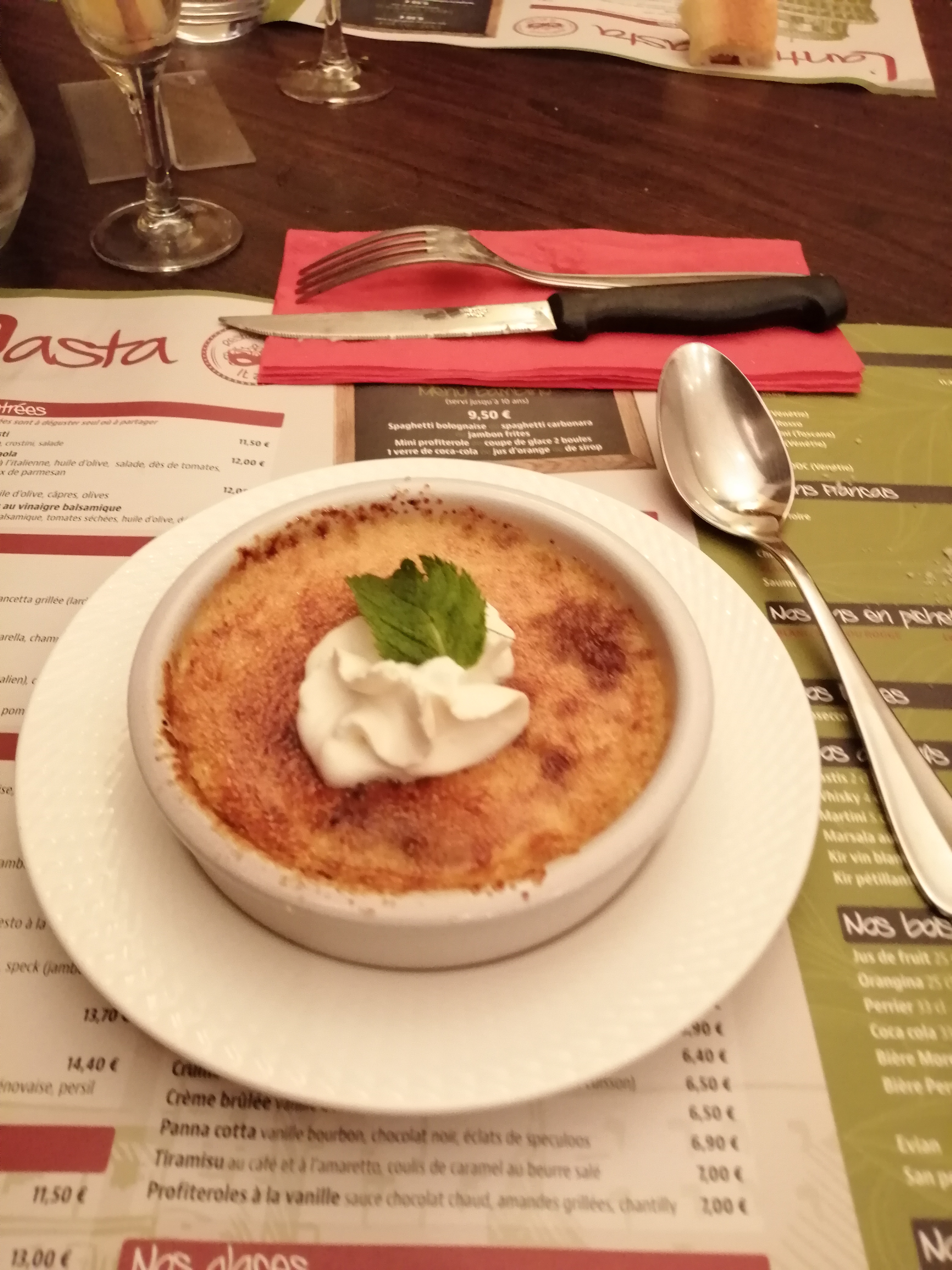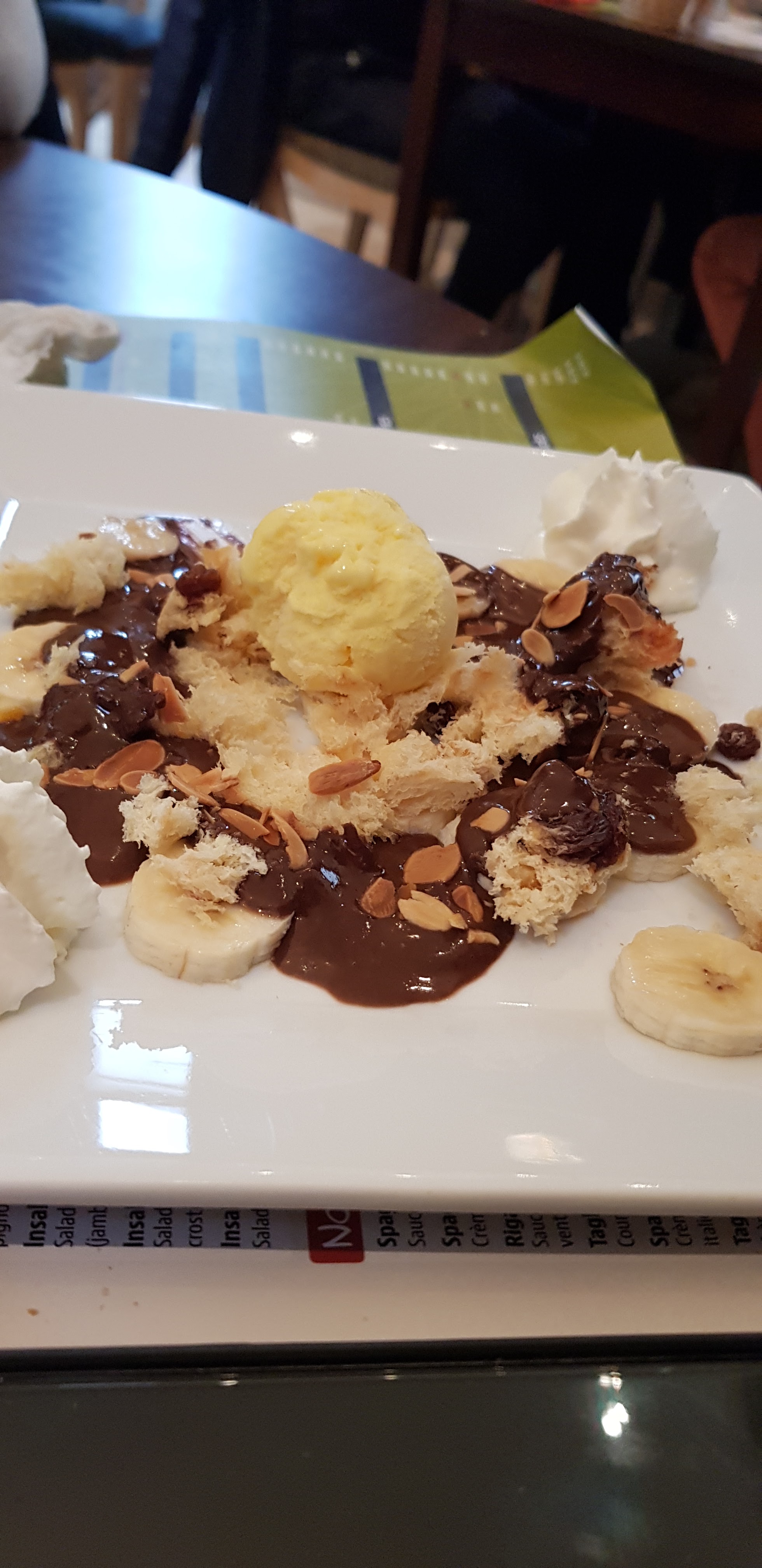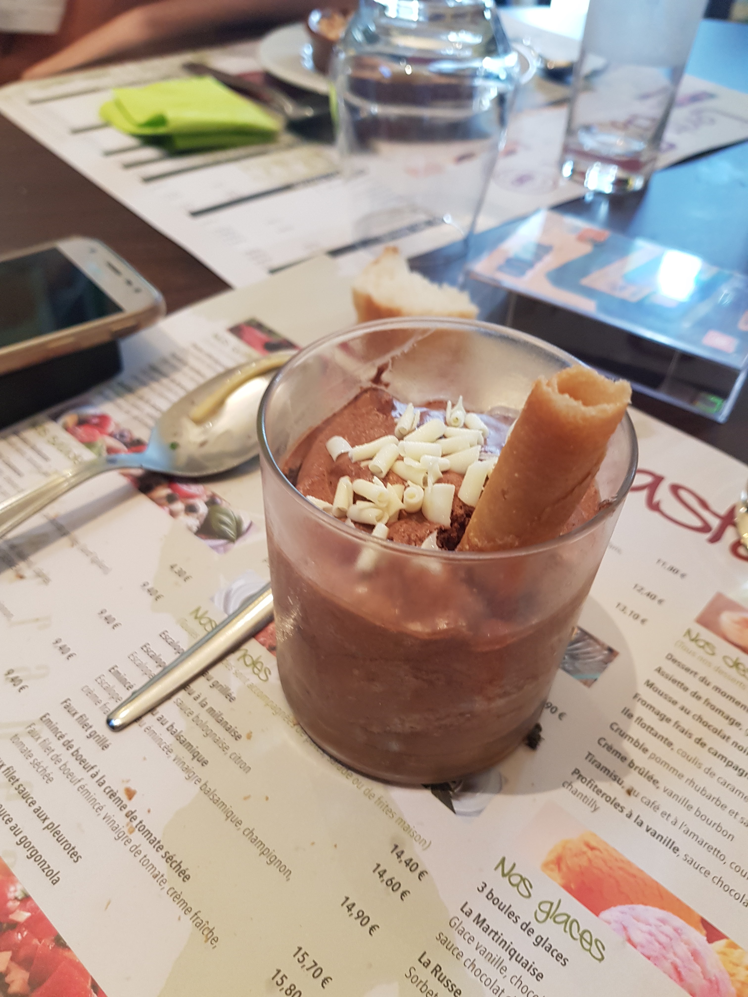 Cadre sympa, gérante agréable, amuses- bouches servis avec l'apéritif originaux (ça change des cacahuètes !) La pana cotta vanille chocolat et brisures de spéculos est excellente !