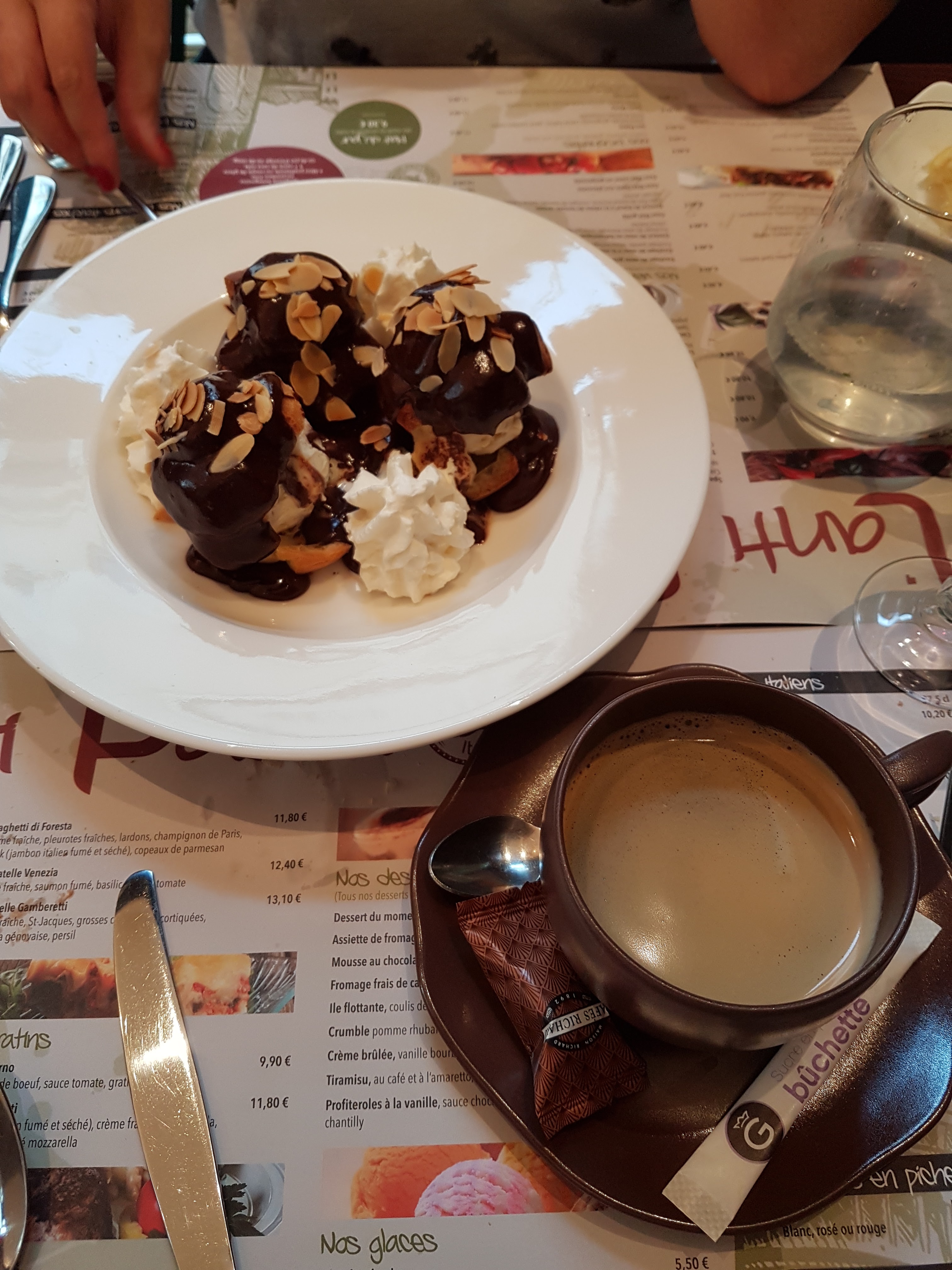 Pas spécialement pris un grand plaisir a savouré mon plat, il était bien réalisé, un peu juste niveau quantité, manque de saveur a mon goût, peut être que d'autres trouveront ça délicieux. Les profiteroles bonnes mais trop petites à mon goût. Personnels souriant et accueillant en tout cas. Ce n'est que mon avis