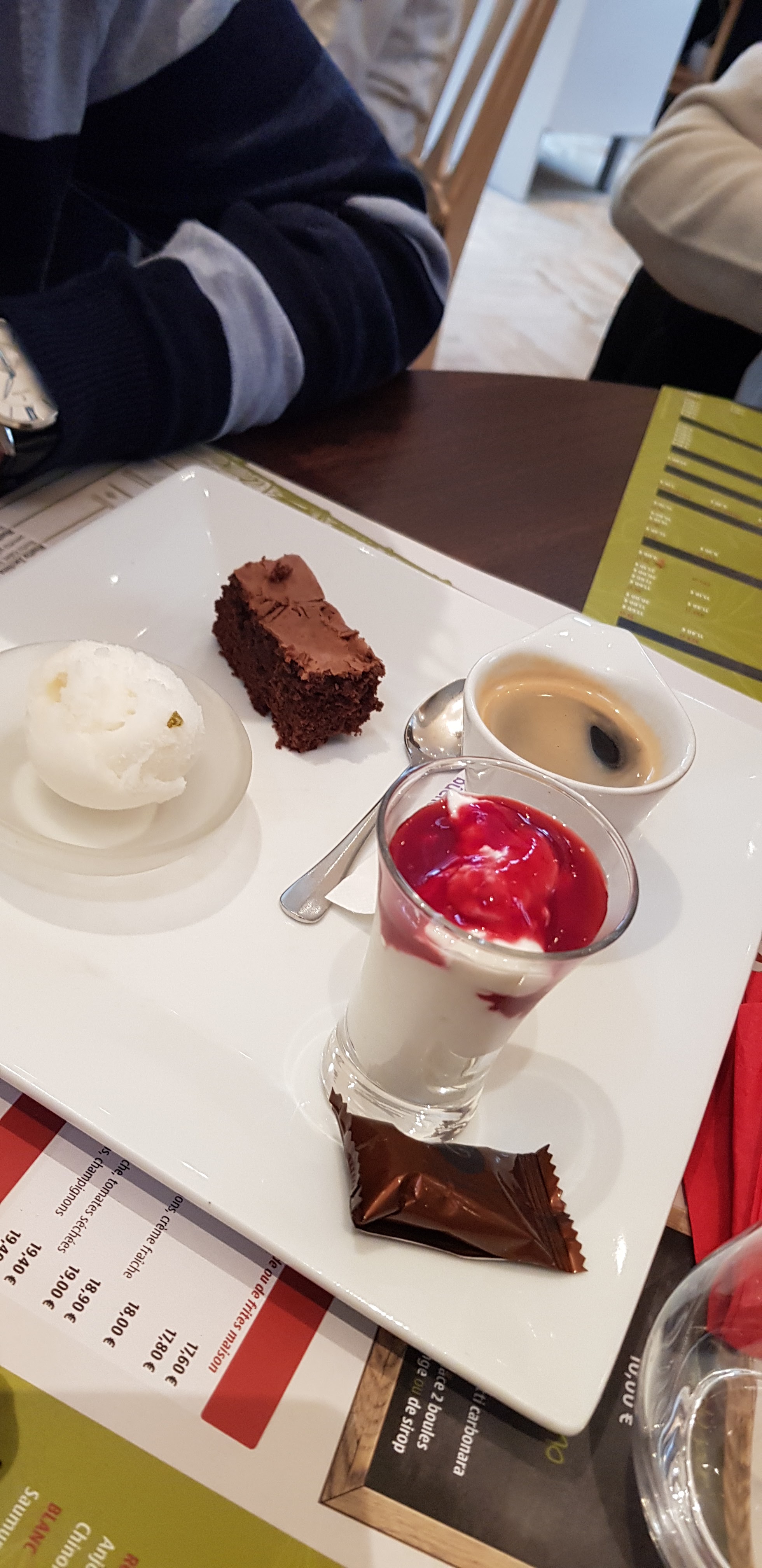 Accueil et service au top, cuisine excellente. Desserts au top, notre seul regret est de ne pas avoir pu goûter au Crumble pomme framboise.