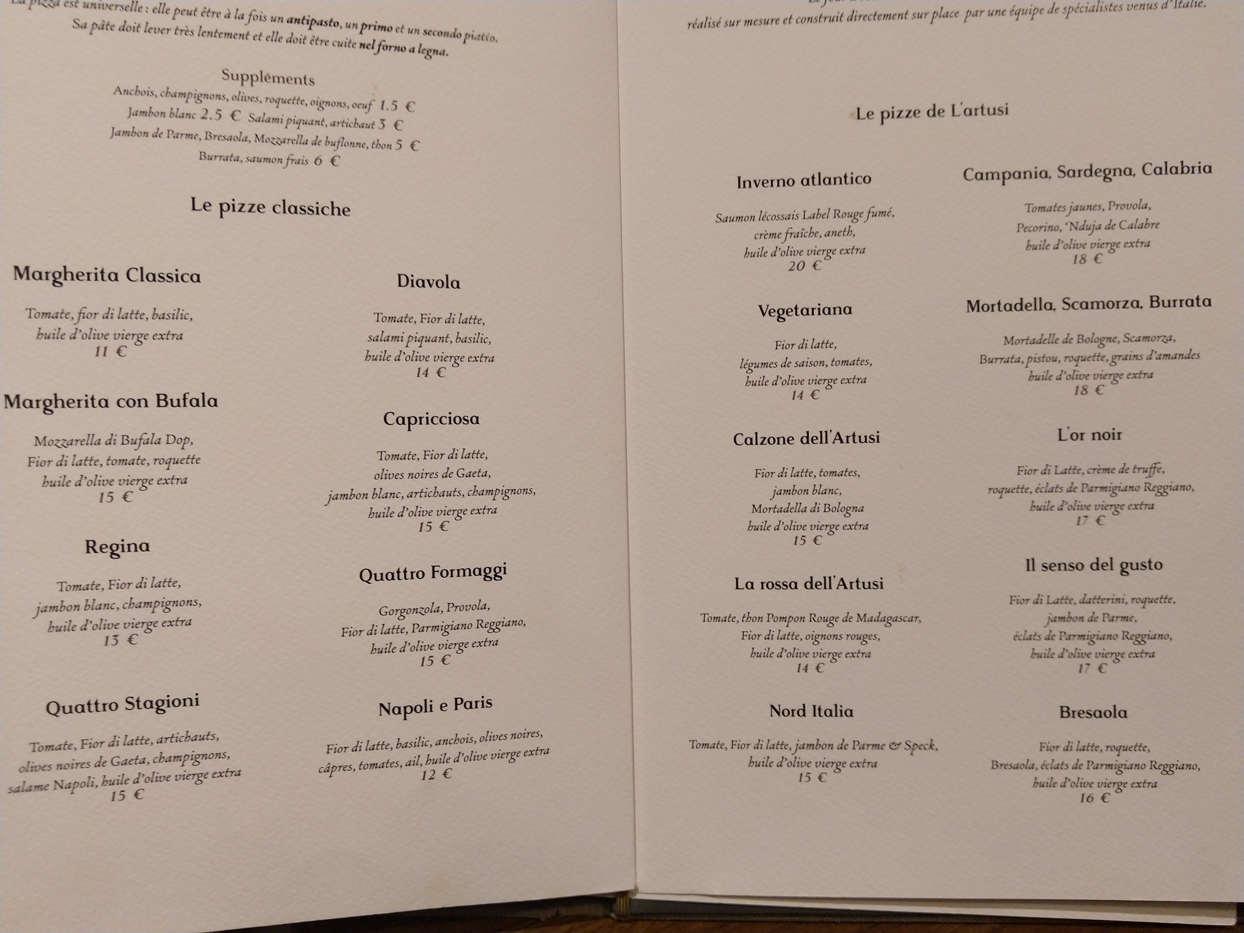 Merci! Mais les prix des pizzerias ordinaires en vérité ne sont pas plus bas que les nôtres... et puis L'artusi n'est pas non plus une pizzeria banale...