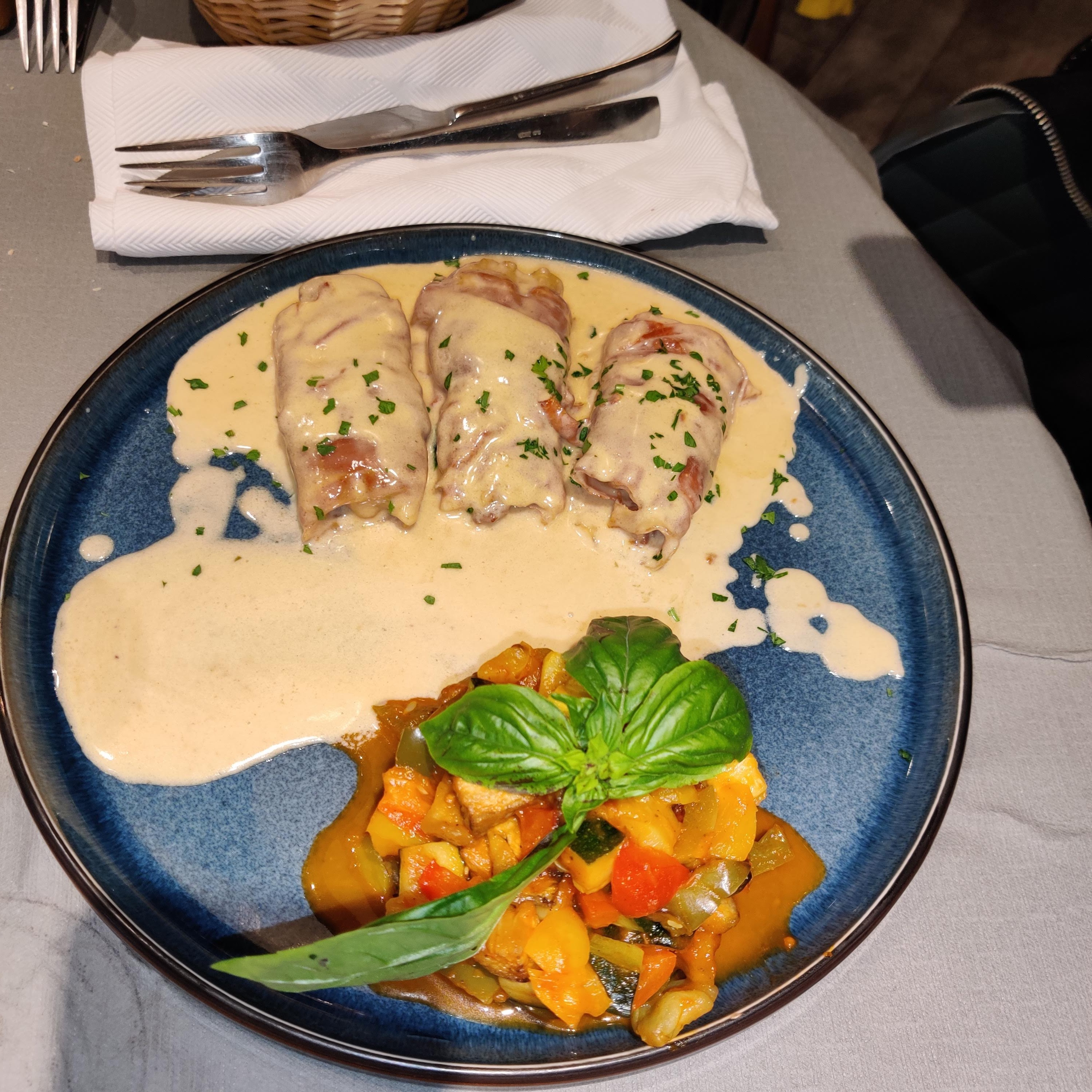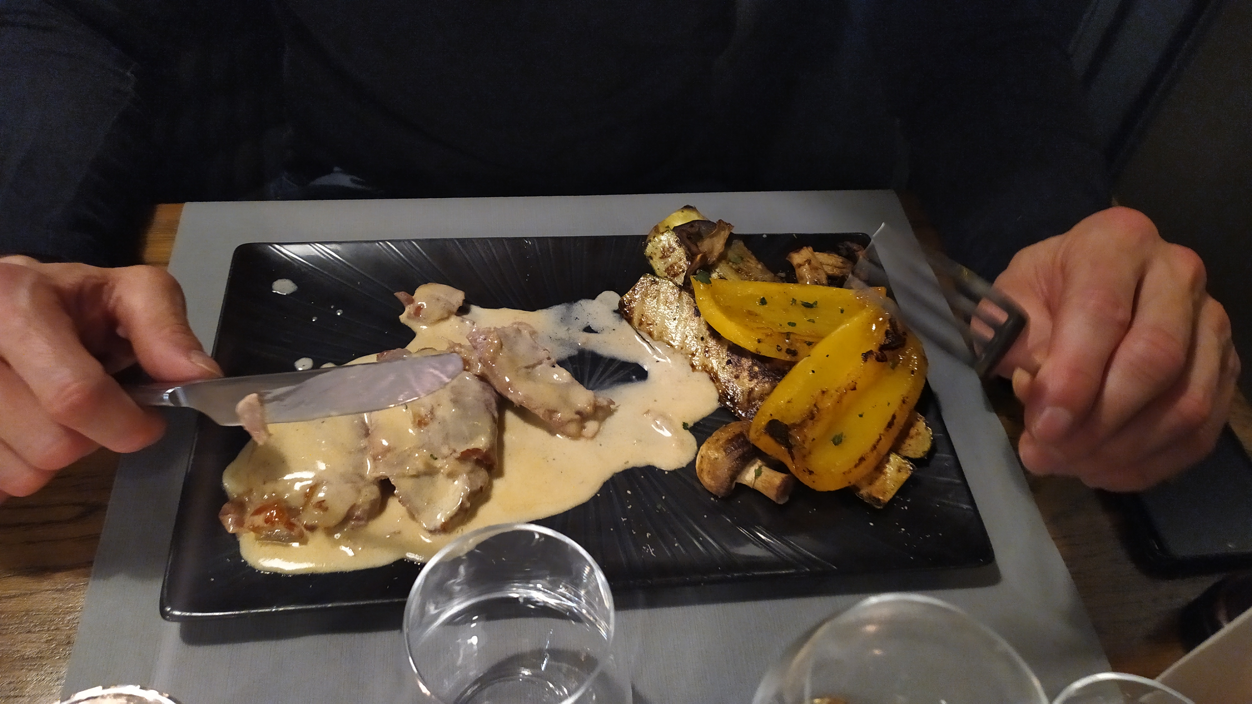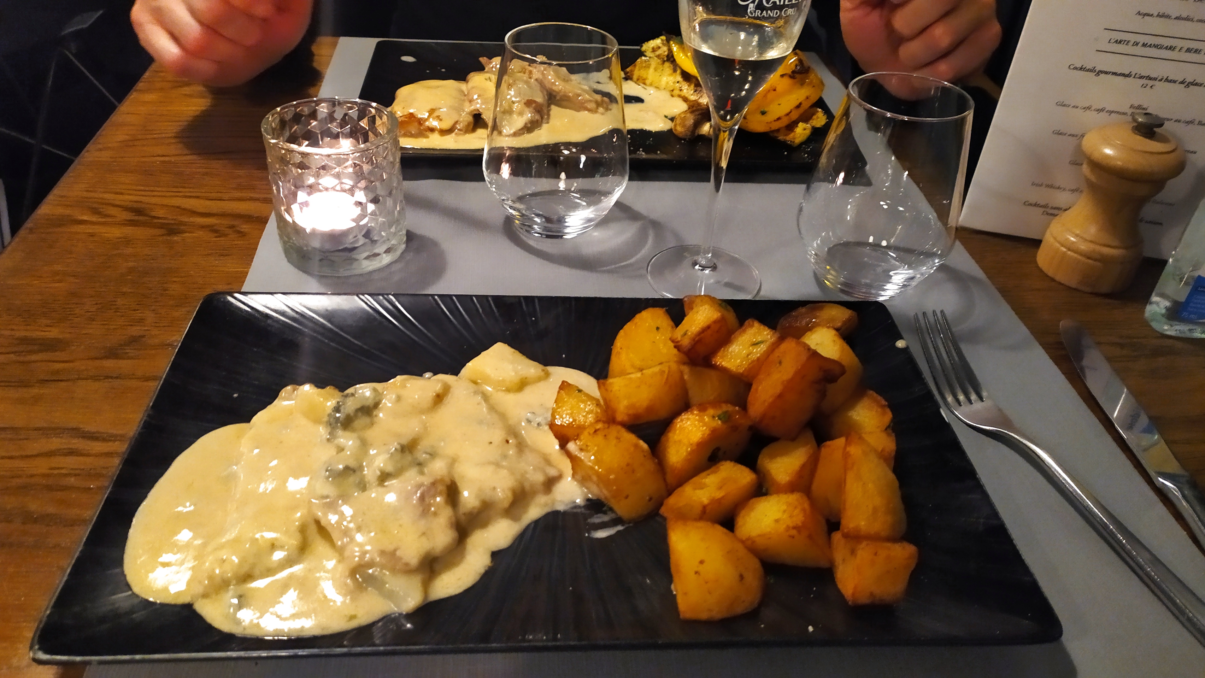 Une adresse convenable, mais assez onéreuse pour la qualité des plats. Les plats & desserts que nous avons pris sont plutôt bons mais sans plus. Toutefois, les portions sont assez généreuses ! Nous avons relevé quelques bémols concernant l’escalope qui était trop sèche ainsi que la texture de la panacotta qui se doit d’être tremblotante (j’ai oublié de la prendre en photo oupsi). Quant au service, il a été rapide et efficace. Le cadre est plutôt sympa et c’est une très bonne chose de mettre en valeur le gros four à bois.