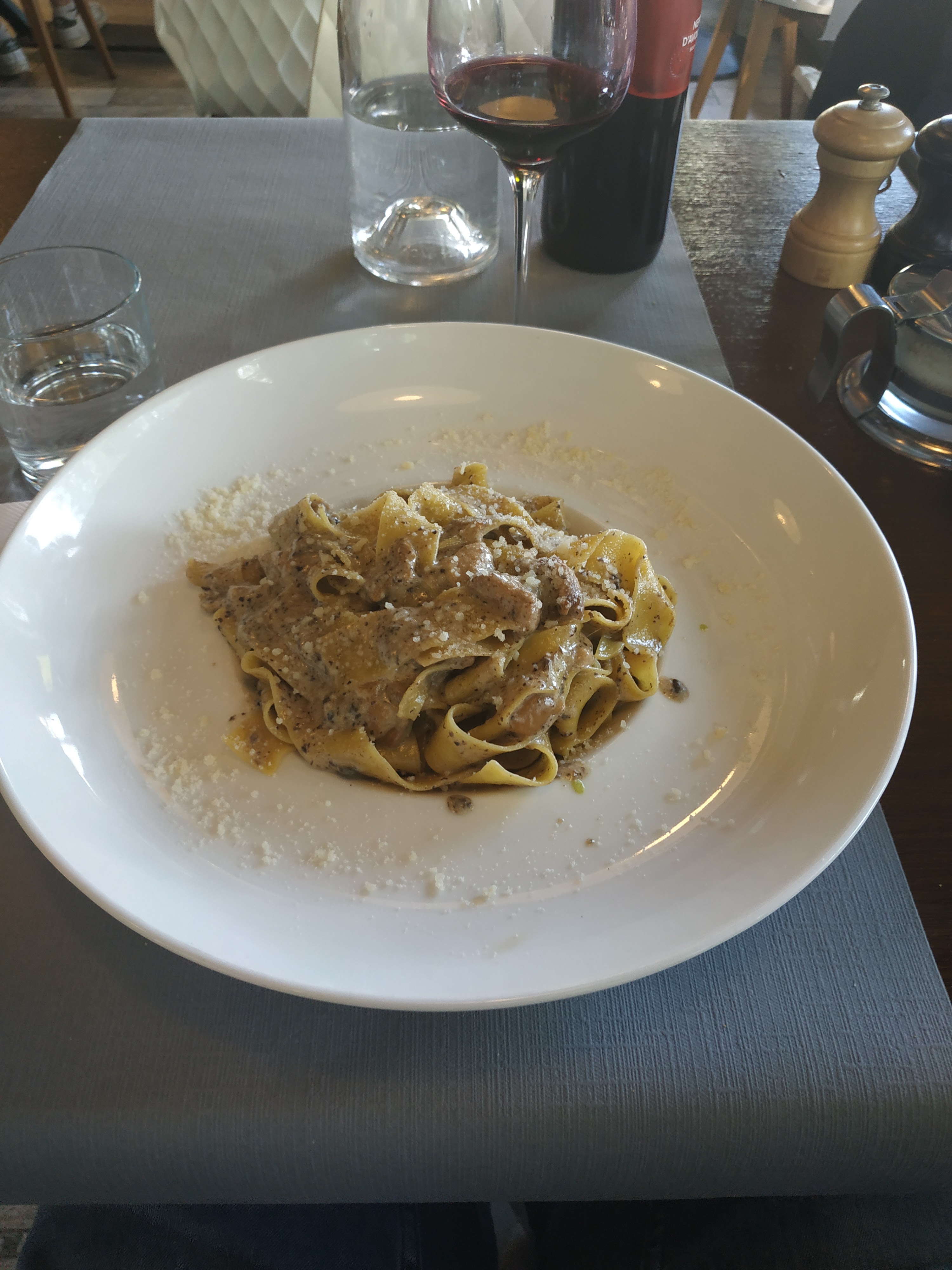 Très belle petite adresse à Saint-Maur. Des vins excellents et de bons petits plats italiens. Ici en photo les parppadelles crème à la truffe et cèpes. Le tiramisu est délicieux. Je recommande