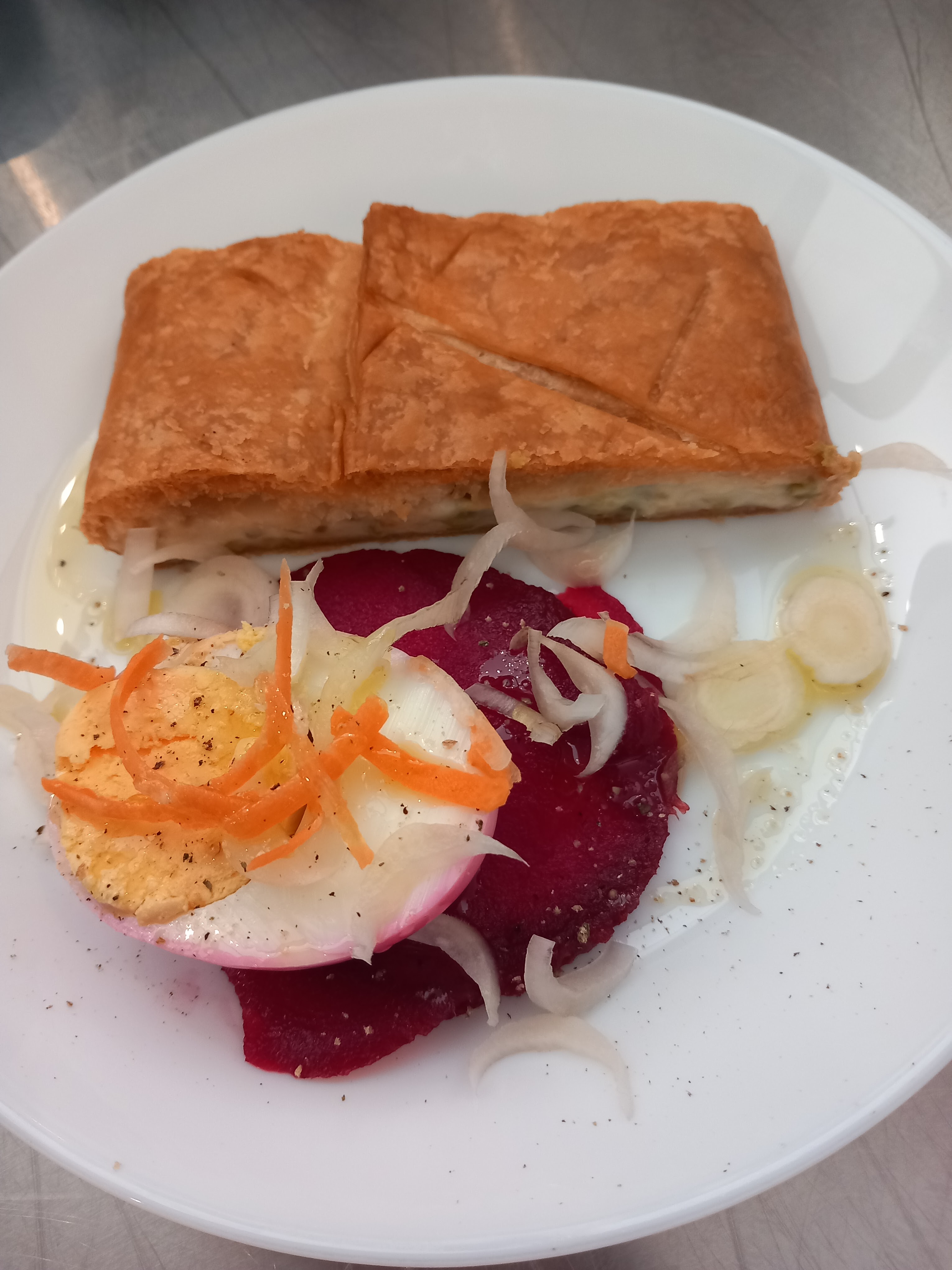 Nous avions eu cette adresse par une connaissance, et une excellente découverte : des lasagnes aux légumes croquants + des boulettes de bœufs à la sauce aux épinards. Un vrai délice. On nous avait prévenu : c'est la gastronomie italienne. Joli restaurant et un accueil par ce couple joyeux et convivial. Belle découverte et merci à vous. À bientôt