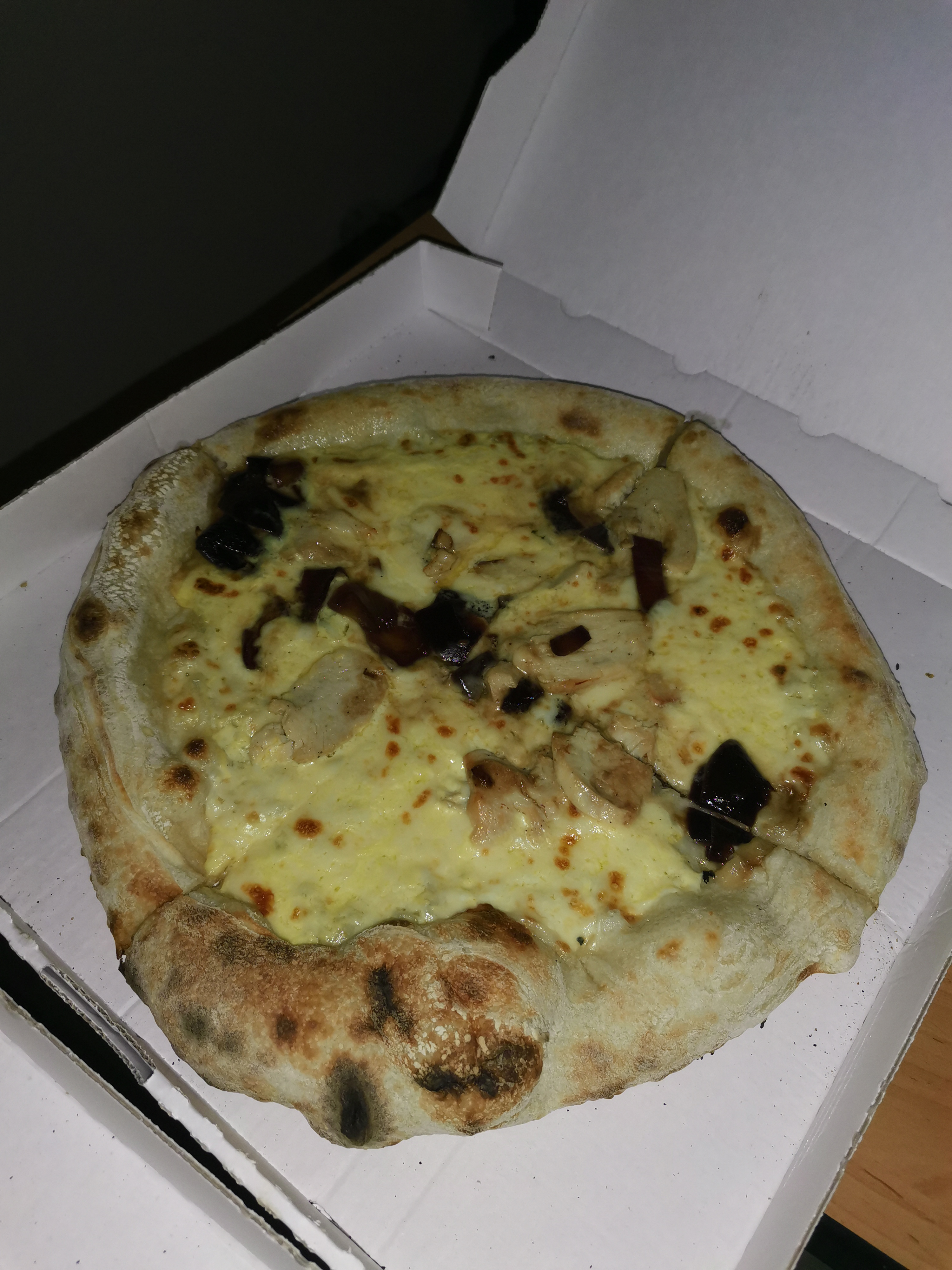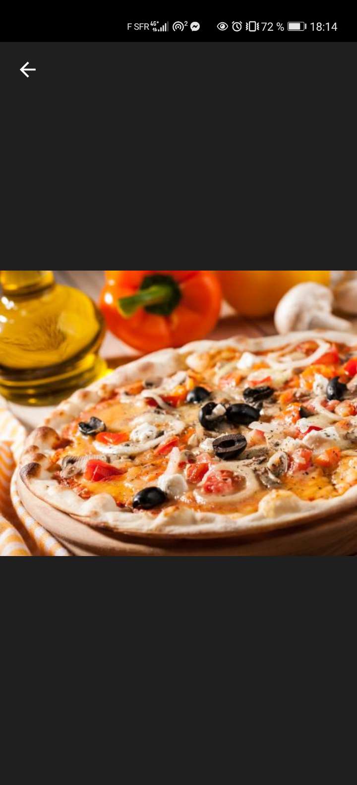 Pizza commande, reçu FROIDE ( j'avais planifié la livraison sauf qu'apparemment ils ont préparés la pizza une heure avant ) , les bords de la pizza carbonisée, noir ! La pizza n'était pas croustillante, la pâte toute molle, on aurait dit qu'elle était imbibé. Je n'ai vraiment pas apprécié la pizza, je déconseille.