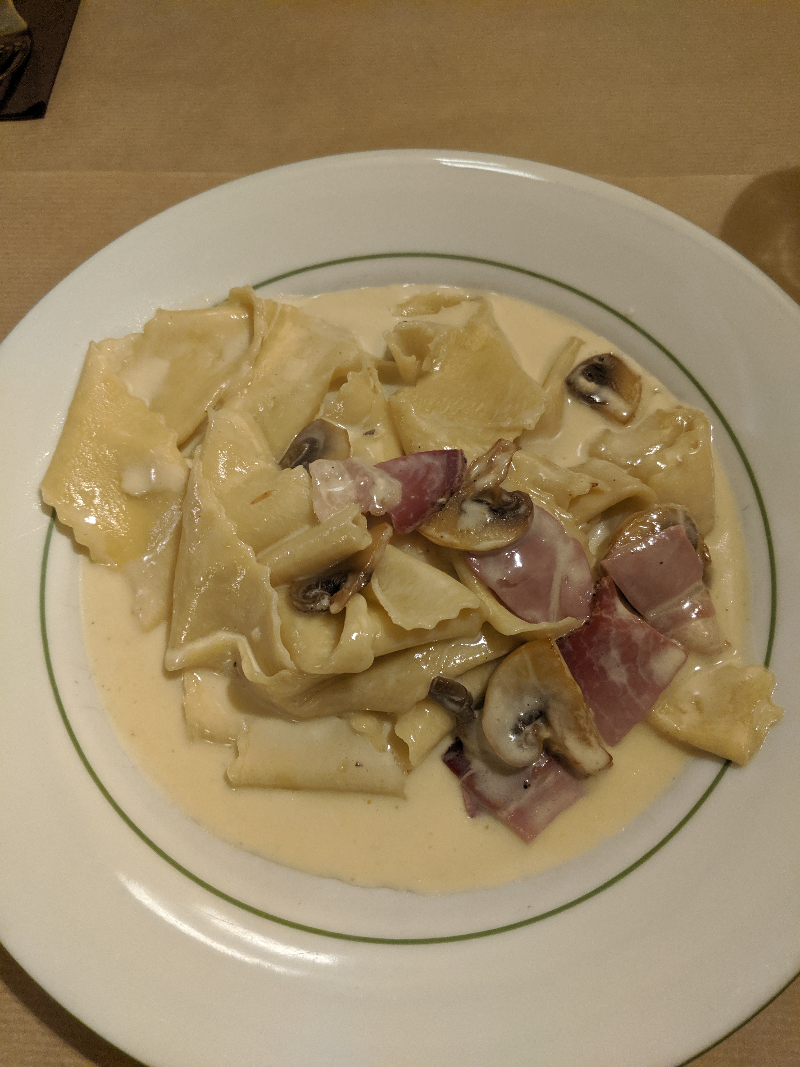 Excellent. C’est petit, mais c’est délicieux. Les pattes sont faites maisons et cela sent si bon l’Italie. Retour en octobre : toujours aussi bon