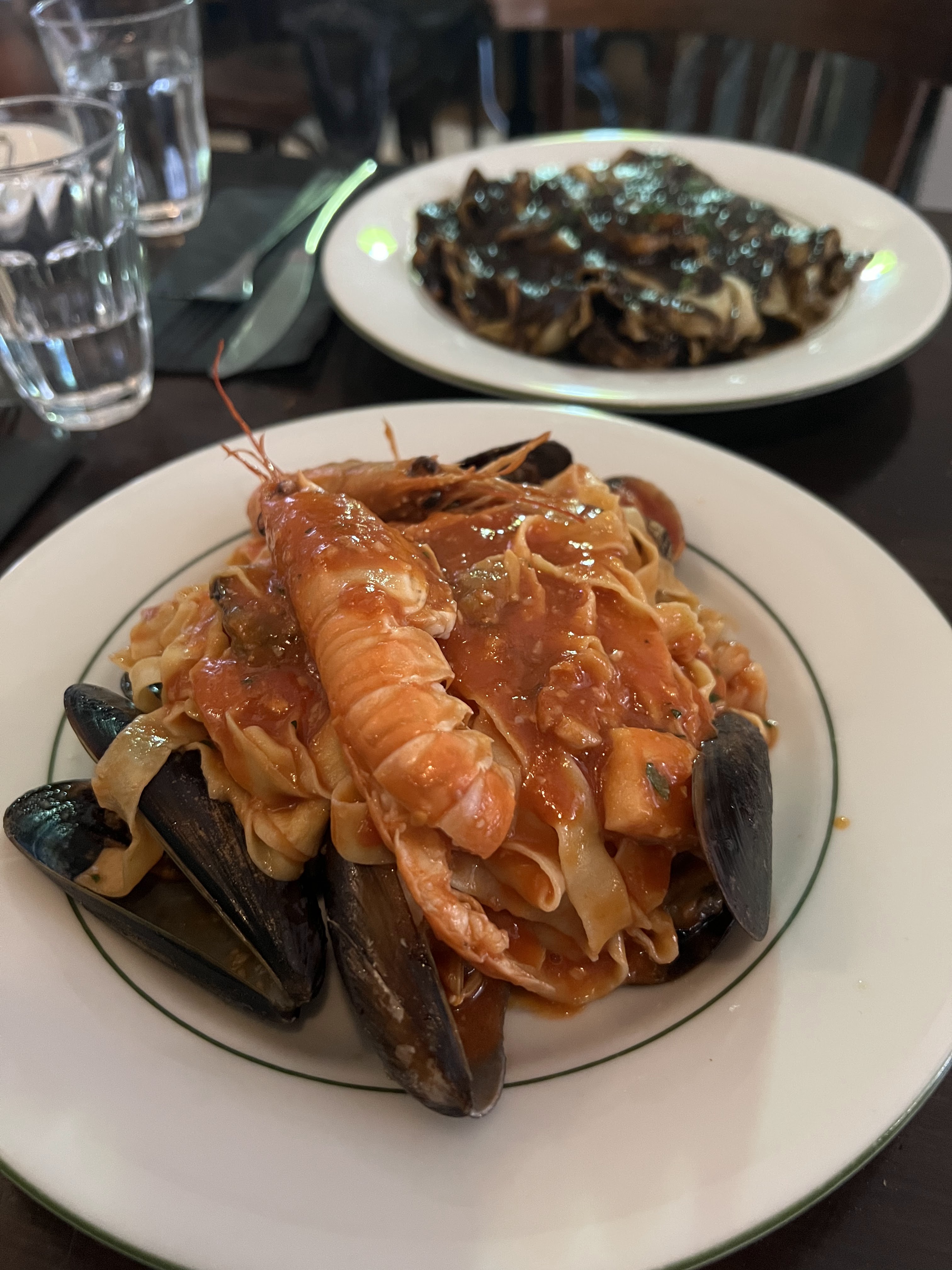 Oh la la ! Ça y est, ne cherchez plus, le meilleur italien de Paris est à Oberkampf. On s’est régalés 🤌🏻 Je veux revenir et essayer chaque ligne de leur carte, chaque variété de pâtes. J’ai pris des sortes de spaghetti en plus gros avec des palourdes et mon ami a pris les pâtes avec sauce tomate basilic ricotta. Comme l’impression d’avoir voyagé le temps d’un repas. Grazie mille