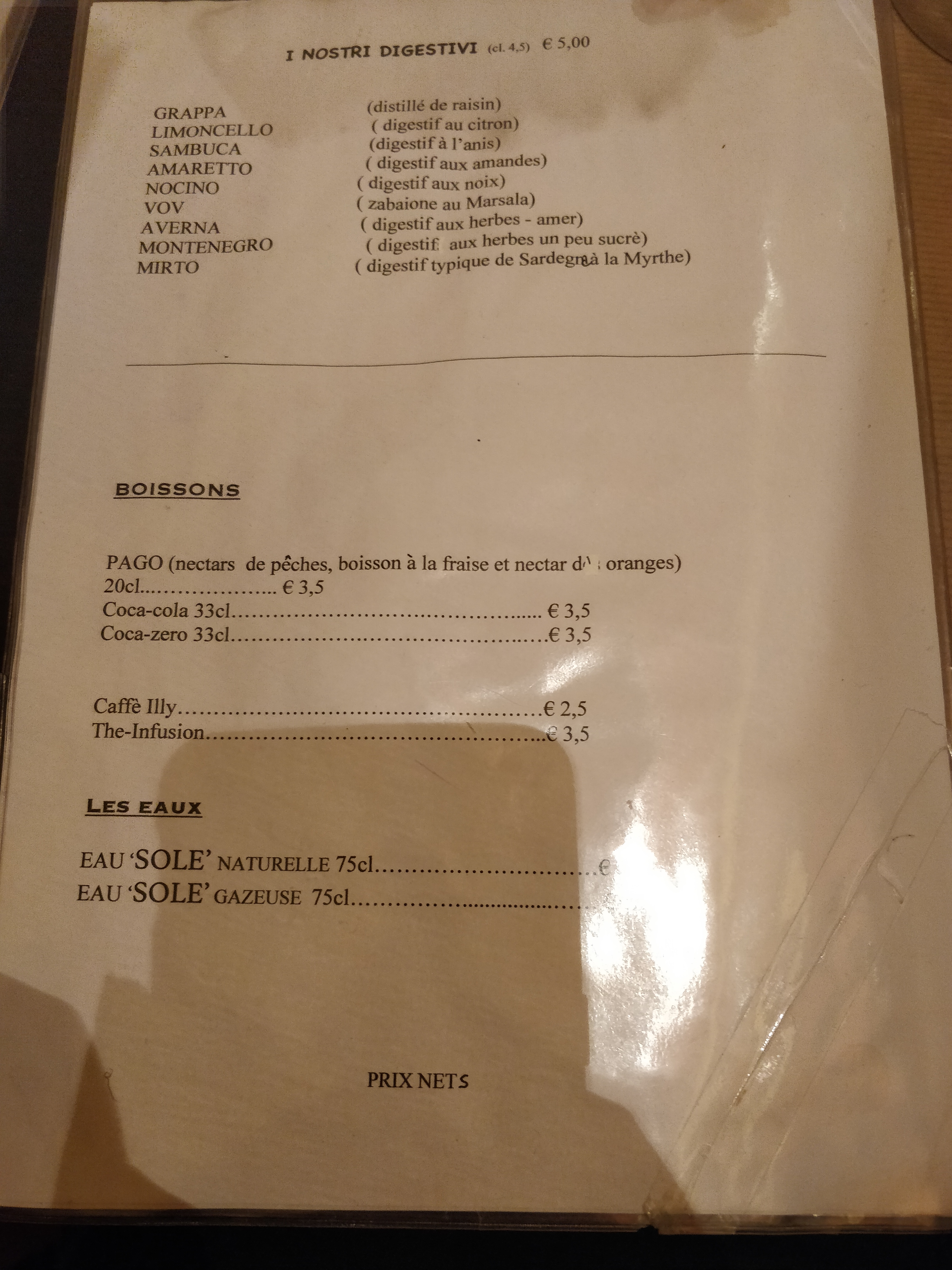 La carte est petite, mais c'est un gage de qualité. Les pâtes fraîches sont absolument divine, les serveuses sont sympathique et très professionnelle. Nous avons passé un très bon moment. Les digestifs sont à essayer 👍