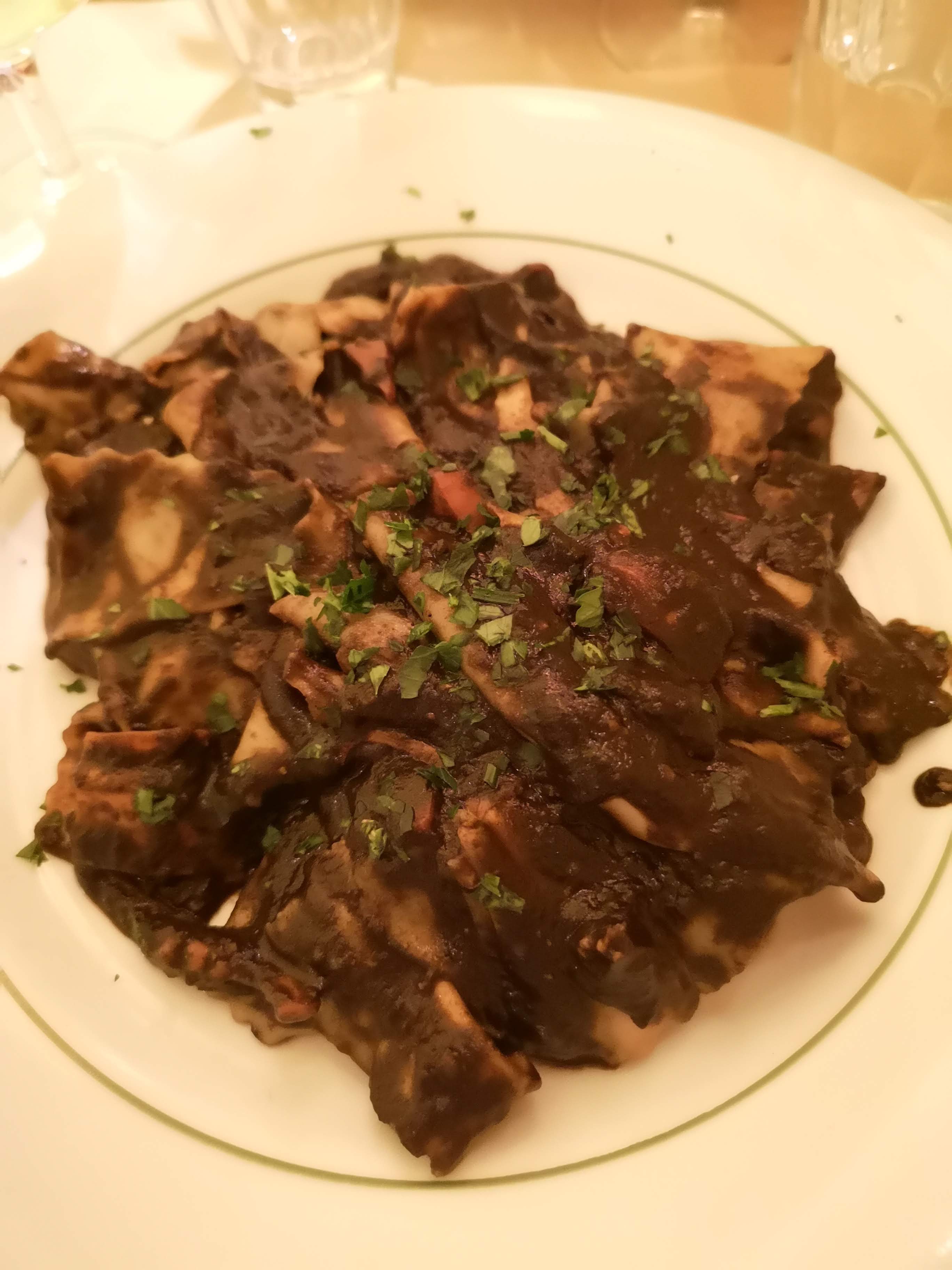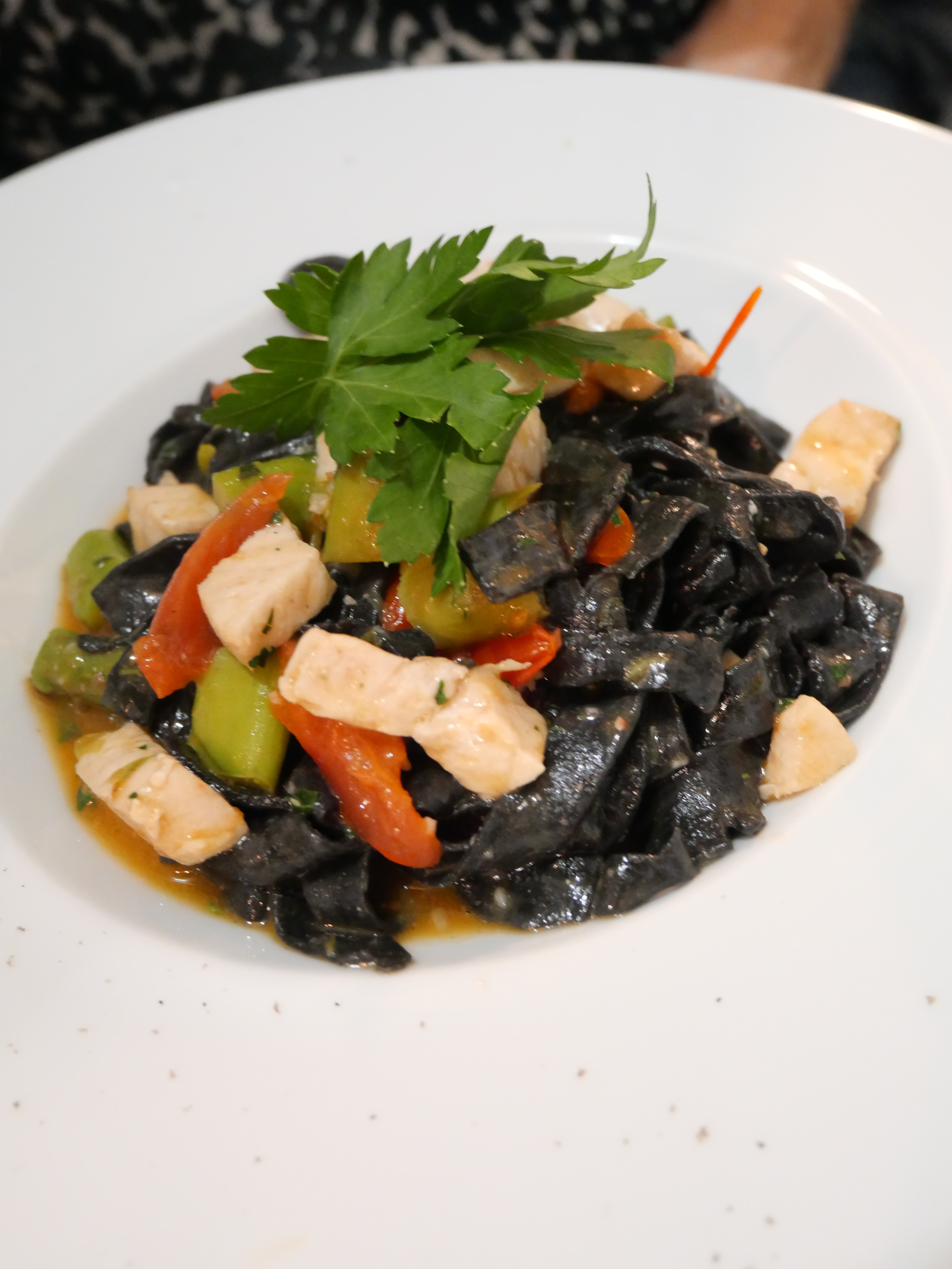 Aujourd'hui l'entrée du jour est délicieuse, et le plat de pâtes à l'encre de seiche est tout bonnement divin ! N'hésitez pas à vous lancer, ça vaut vraiment le détour