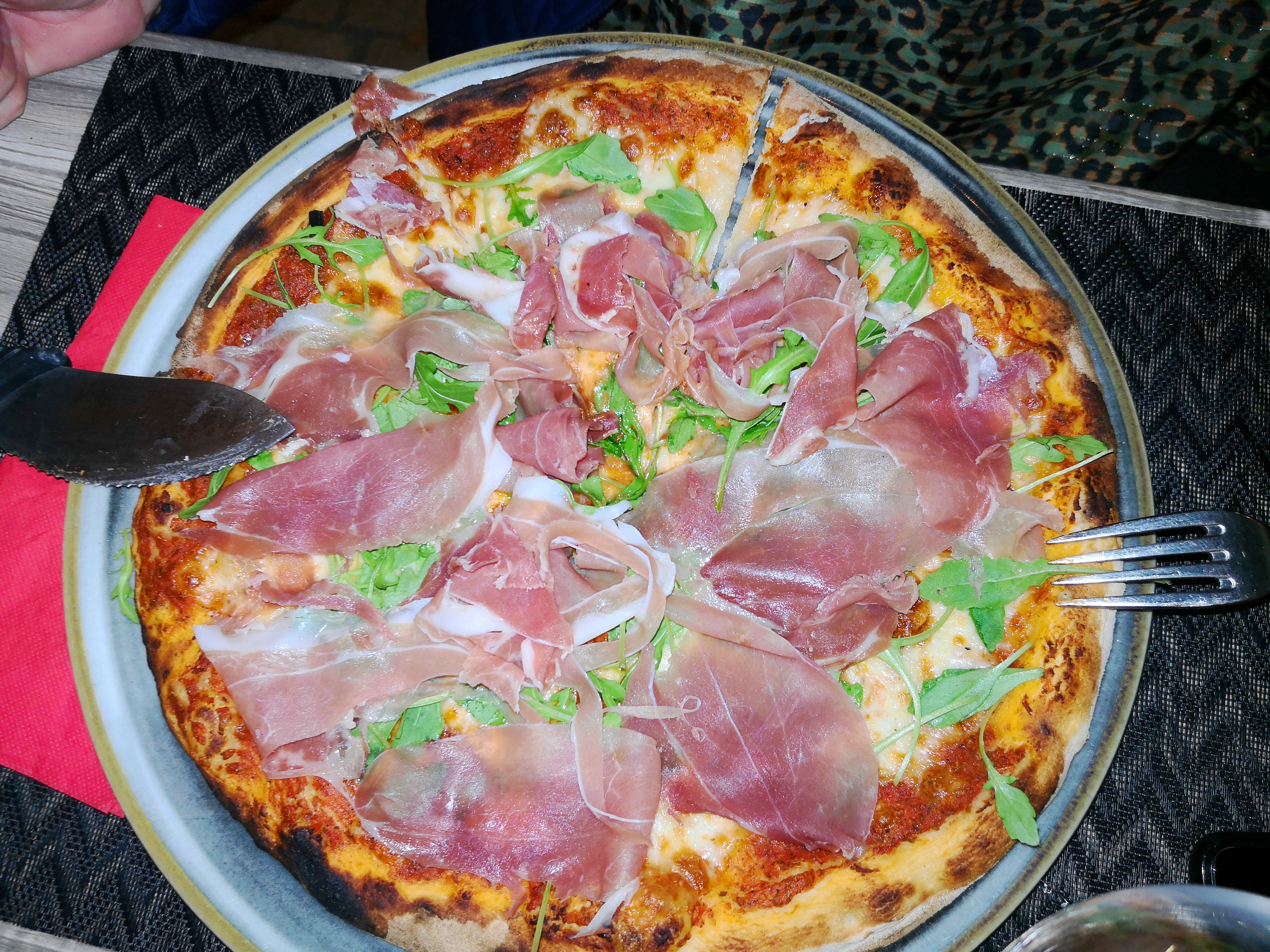 Très bonne adresse, nous avons mangé dehors, les pizzas sont copieuses et bien garnie. Je recommande