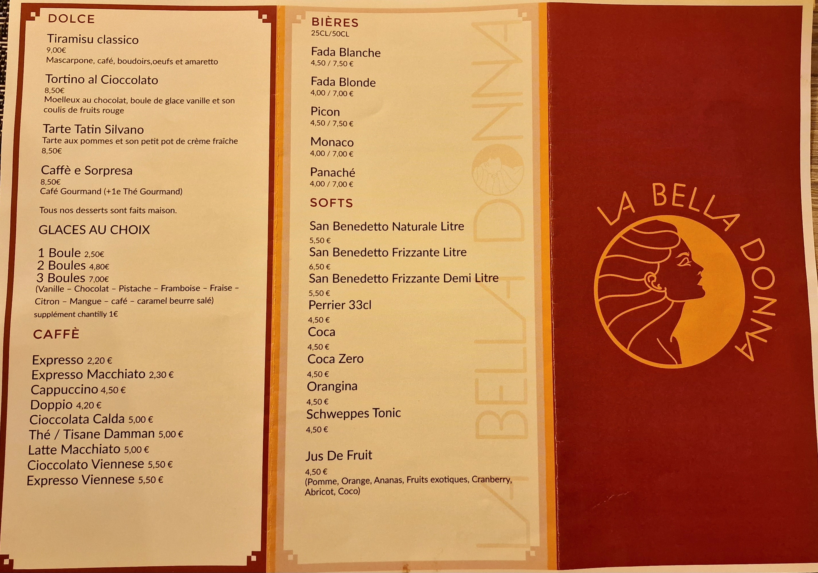 Je suis venue déjeuner avec mon petit ami ce samedi à la Bella Donna ,nous appréhendions la reprise du resto mais finalement ce fut une agréable surprise. Gérante adorable ! Aux petits soins et prévoyante . Nous reviendrons sans hésitation et vous conseillons d’y passer un de ces quatre .