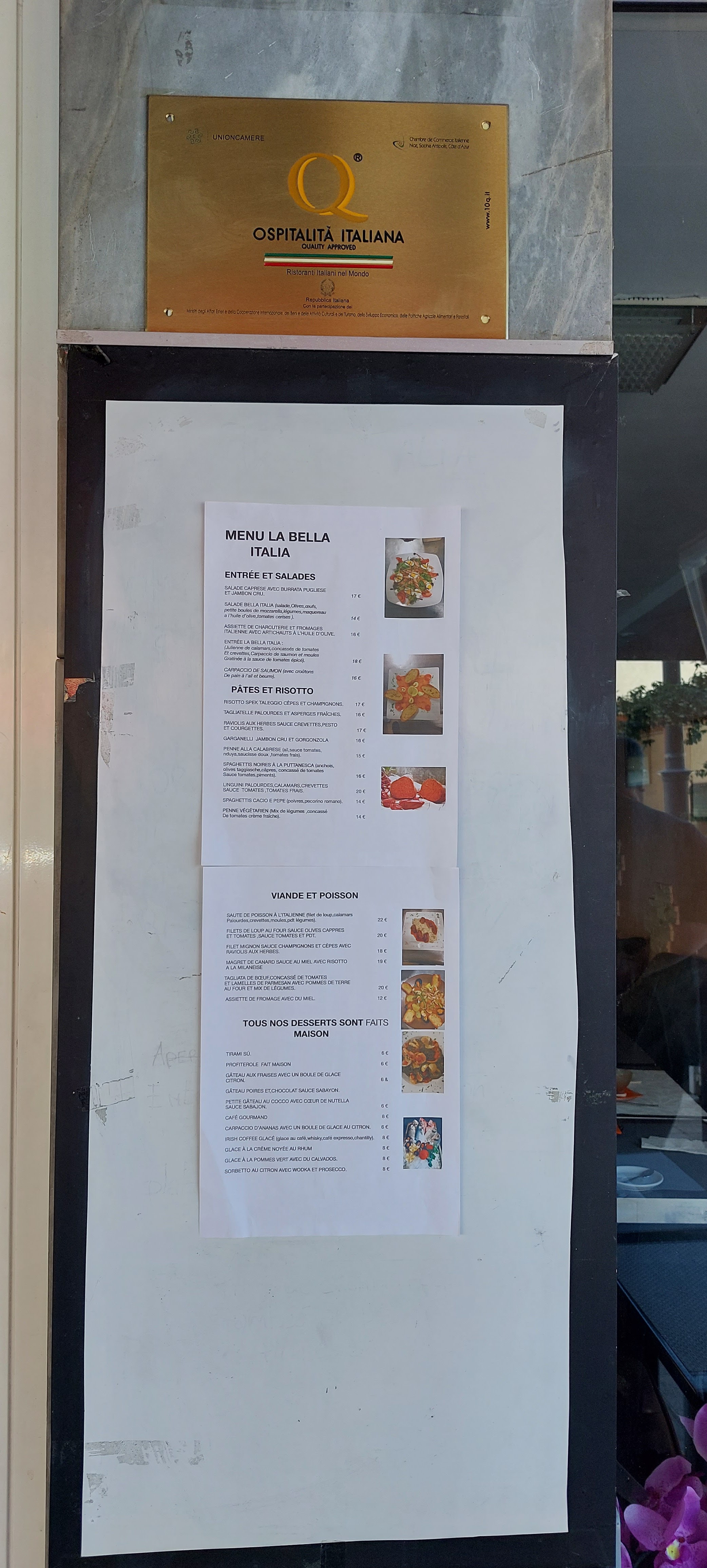 Une bonne adresse. Prix correct. Plat savoureux, typique italien. L assiette bella italia est une excellente decouverte. Les penne a la calabrese etaient divins et les raviolis aux herbes sauce crevettes parfaits! Pour faire passer le tout une bonne glace aux noisettes. A perfect stop for eating. Good price and very tasty. Highly recommanded.