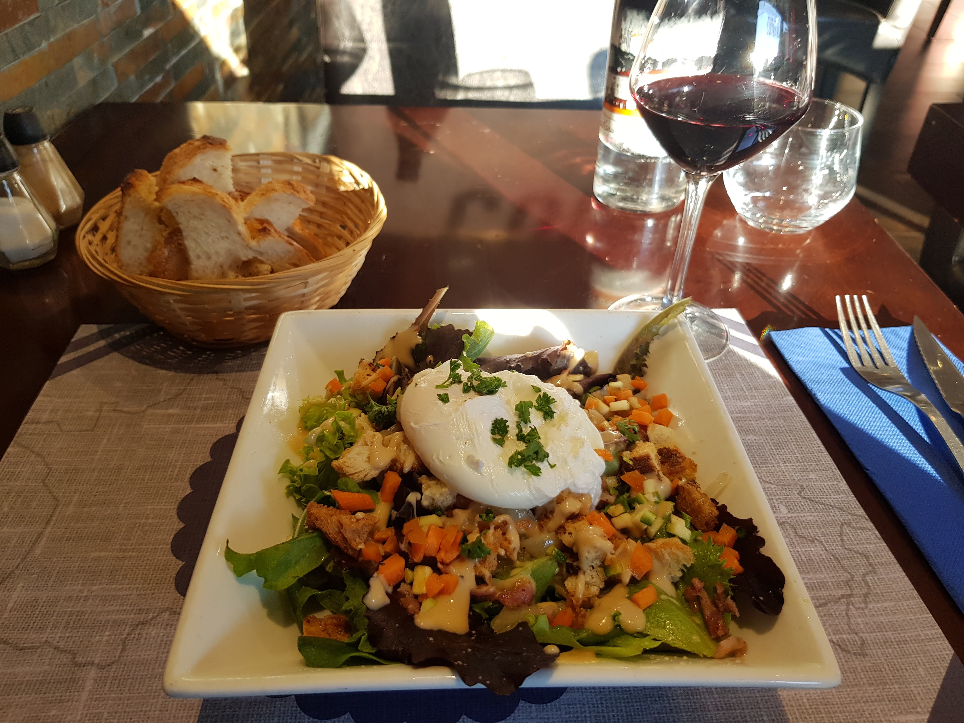 Déçu suite au manquement de plats de jour, pas de viande ni andouillette donc j’ai commandé une salade de chèvre chaud à 13€ et du coup je n’ai pas été averti de manquement de noix aussi, le patron m’a sûrement entendu discuter avec la serveuse (qui m’a gentiment proposée des frites et j’ai refusé car j’étais pressé) à la caisse hélas il n’est même pas intervenu pour s’excuser... du jamais vu et c’est dommage puisque les autres vrais patrons font tout pour rattraper.... j’y suis déjà venu au moins 4 fois désormais je n’ose plus revenir