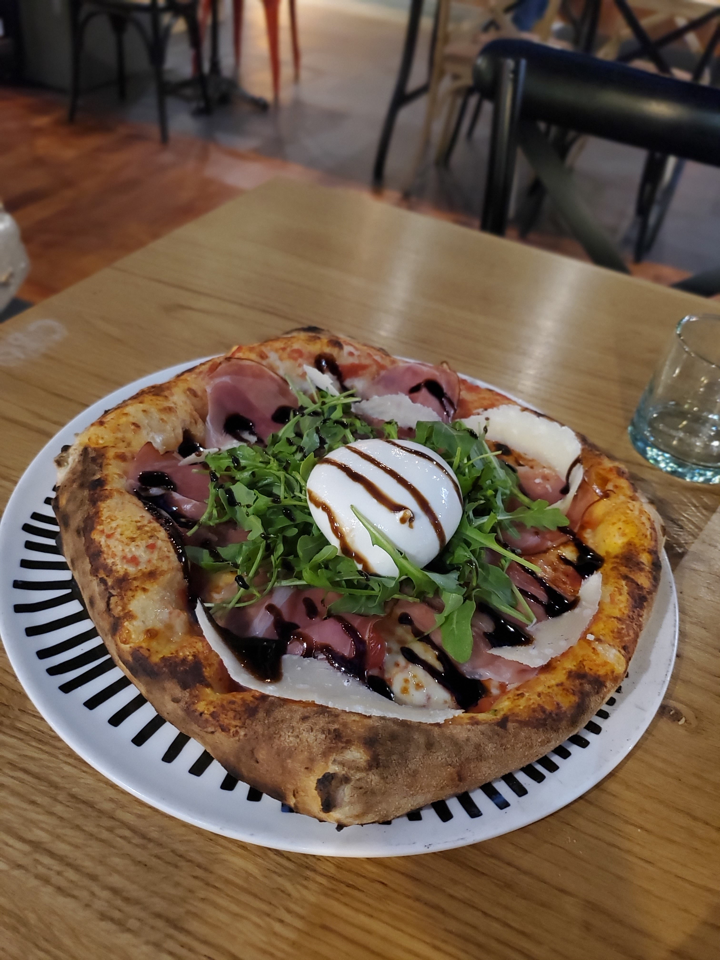 Très belle de découverte. Nous y sommes allés un mercredi soir et le restaurant était rempli : pensez bien à réserver (très facile sur internet) ! Le cadre est très joli et les serveurs agréables. Ma pizza Burrata était délicieuse !