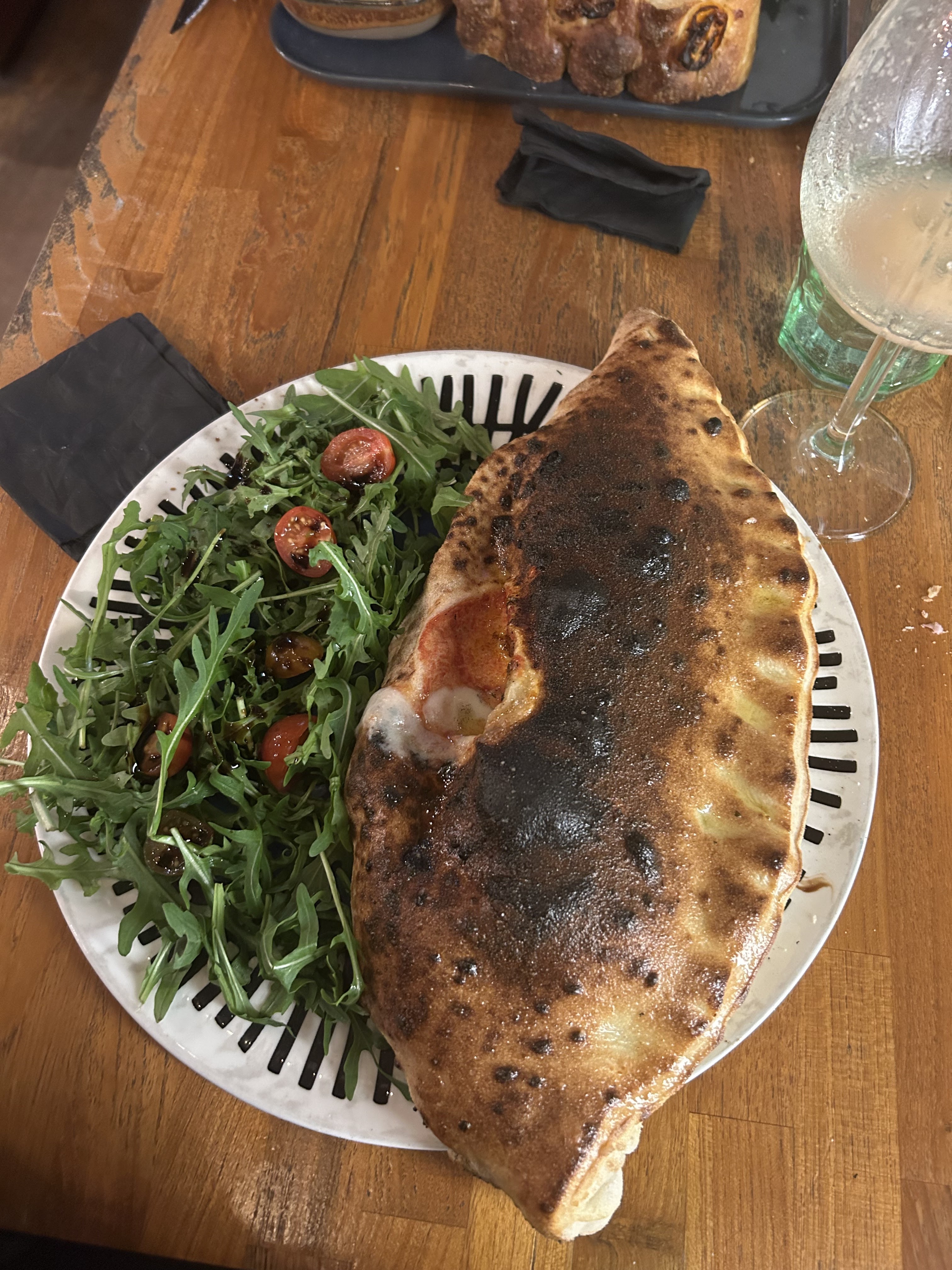 Pizzas (notamment burrata) et plats de pâtes (raviolis au citron) très bons mais nous avons été un peu pressés. Certes, nous avons été avertis qu'ayant réservé pour 19h15, il nous faudrait libérer la table pour le 2e service à 21h, mais ce n'est pas très agréable... De plus, il est compliqué d'avoir une discussion dans une salle bruyante. Enfin, mon mari a été malade après avoir mangé une Calzone (à cause de l'œuf ?)...