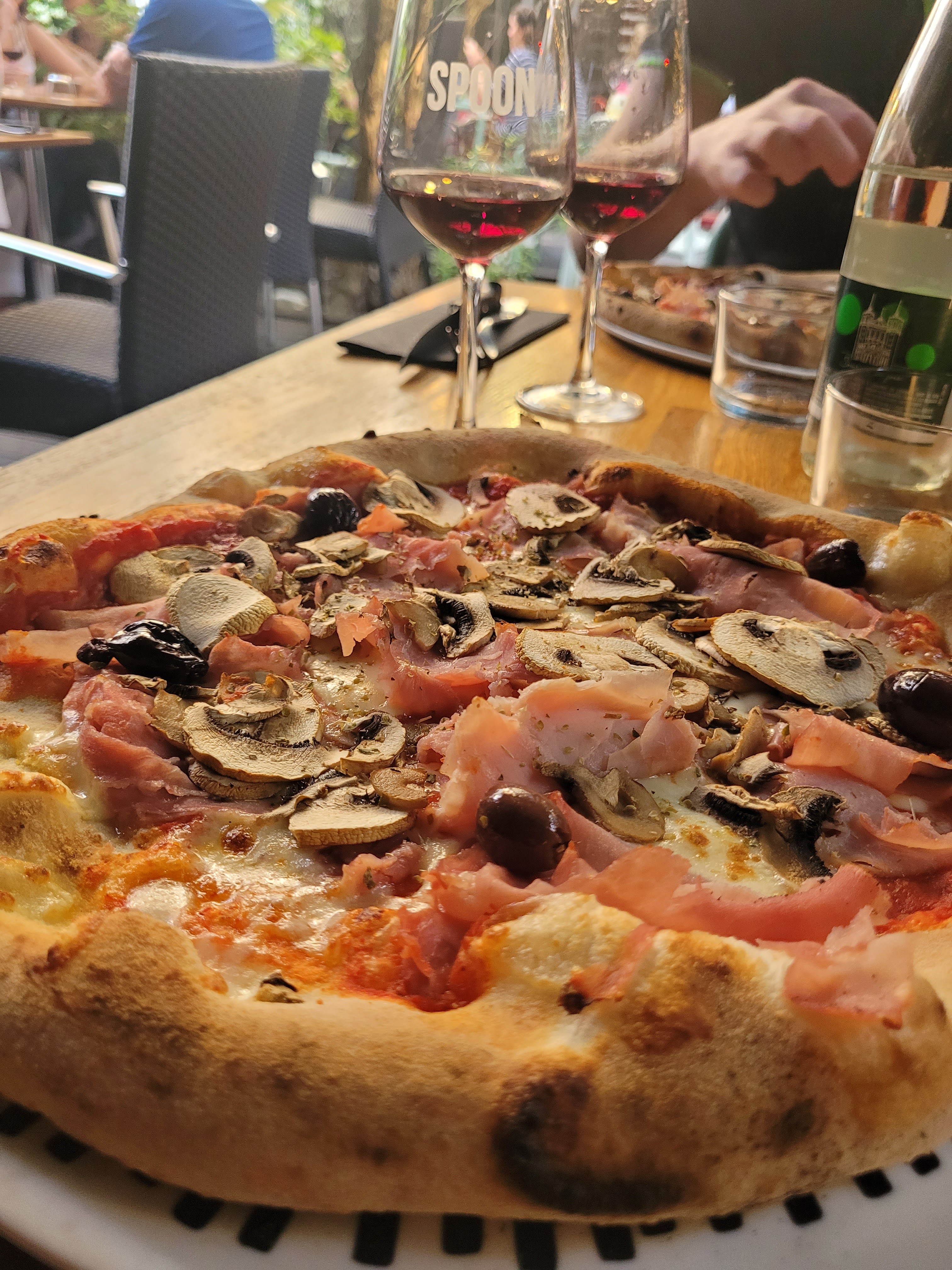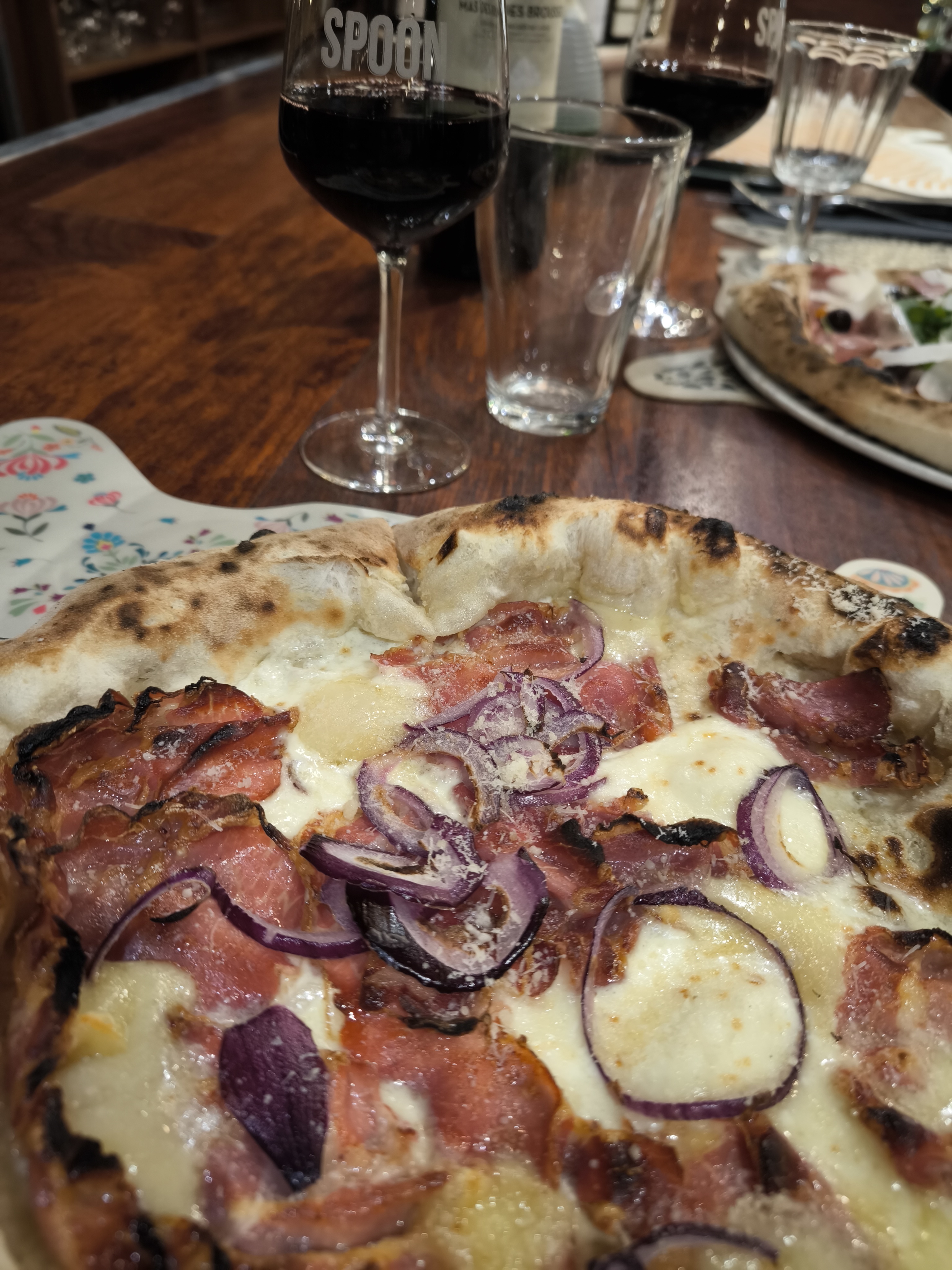 Joli cadre mais un peu bruyant, bonnes pizzas, choix varié, garniture riche et goûteuse, mais nos pizzas refroidissaient vite en raison d'un souffle frais sur nos assiettes. Service rapide, agréable. Attention, Cantinetta n'est pas clairement écrit dans la rue c'est Spoon Home and Food qui est très visible mais c'est le bon restaurant !